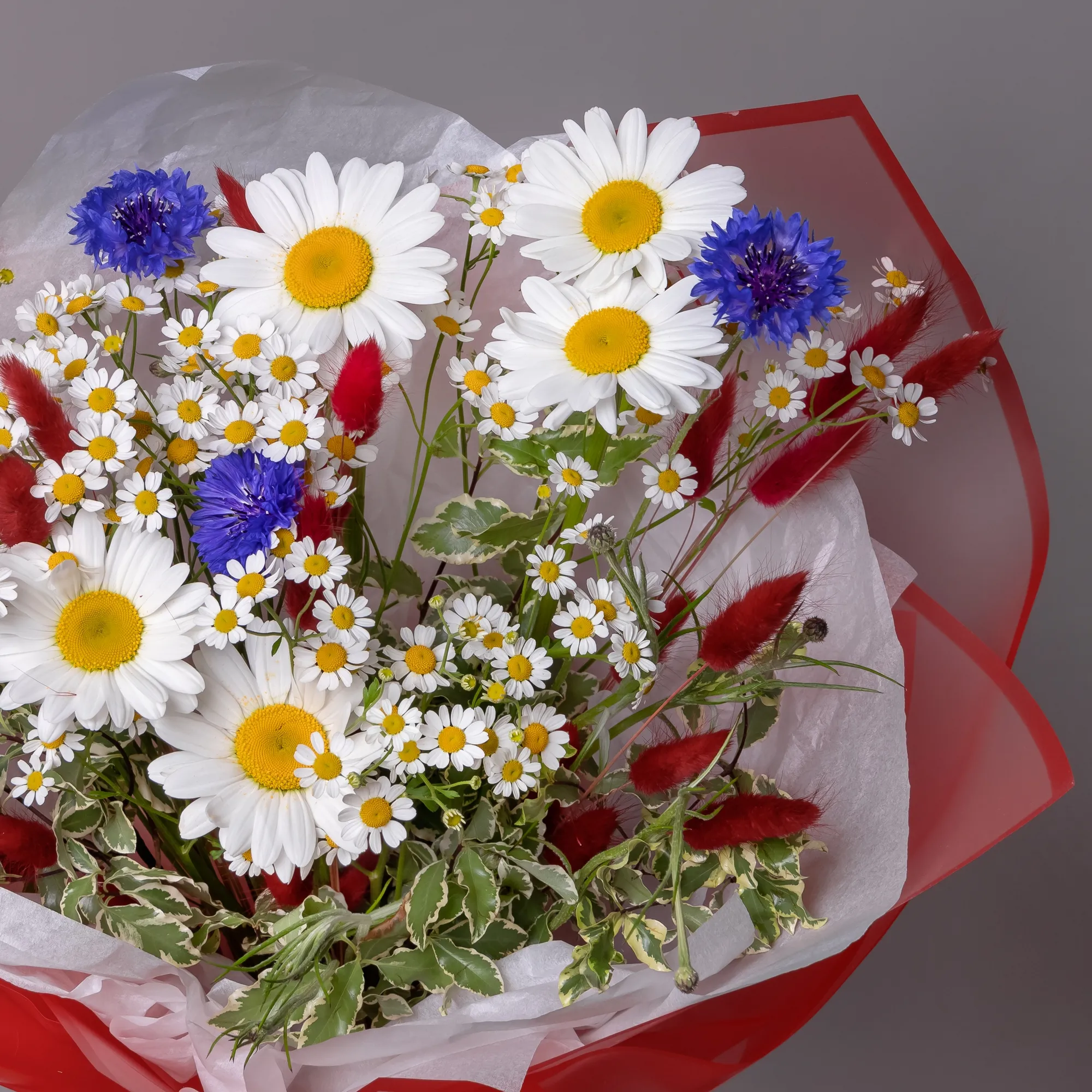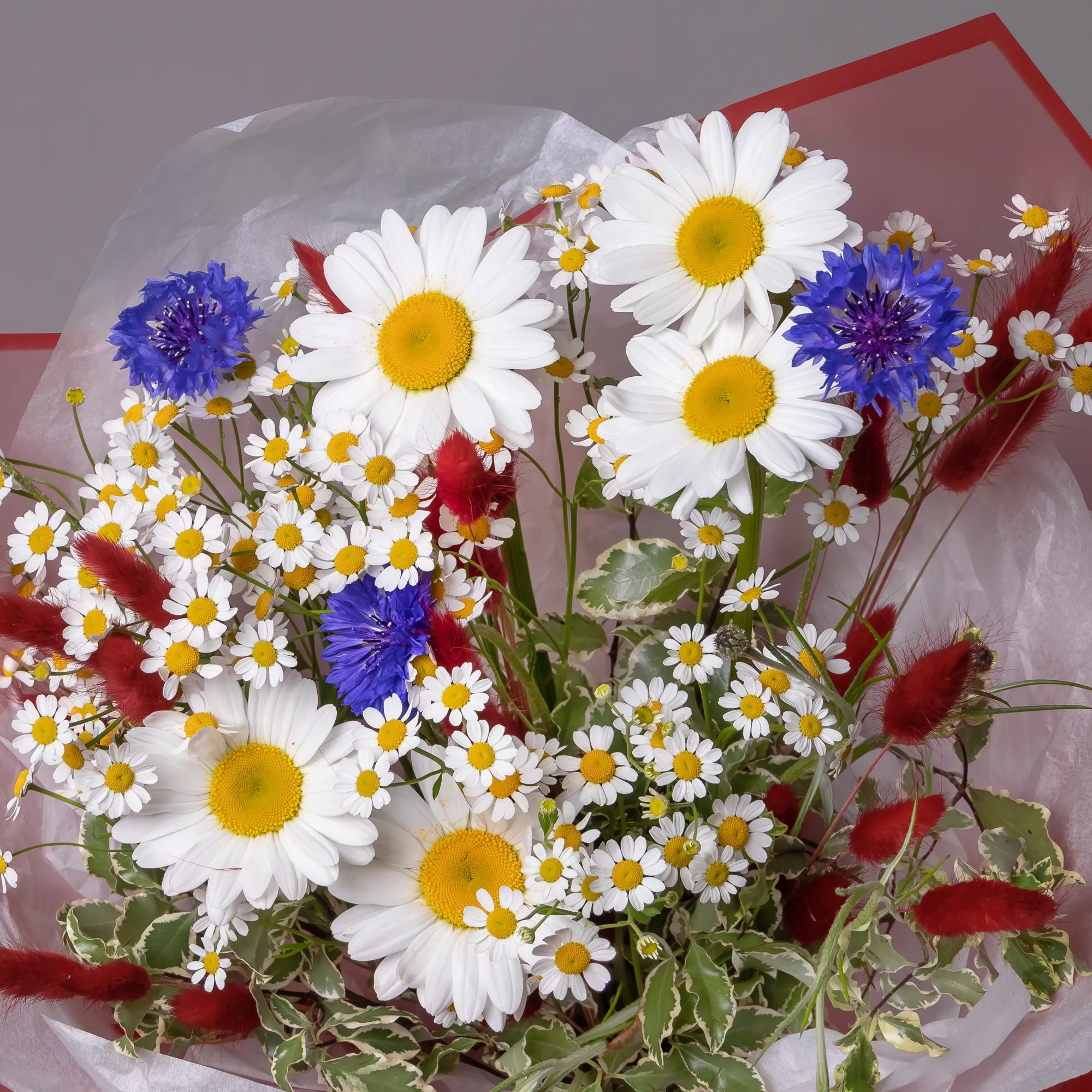 В составе букета "Летний Туман" синяя центаурия, белая матрекария, ромашка белая, дополнен листьями питтоспурума. Этот букет идеально подойдёт для следующих случаев: *Поздравление с рождением ребенка - нежная цветовая гамма букета, сочетающая в себе белый и голубой оттенки, идеально подходит для такого особенного события, белоснежные цветы символизируют чистоту и невинность, а голубые акценты создают спокойную, умиротворяющую атмосферу. *День рождения или юбилей близкого человека - свежий, природный состав букета в светлых тонах подойдет для поздравления любого возраста. Особенно уместно будет подарить такой букет человеку, ценящему естественность и простоту., питтоспорум в составе добавляет букету элегантности и завершенного вида. Закажите букет с доставкой или заберите самовывозом. И помните, что цветы - это просто.