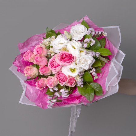 Роза-11, Альстромерия-3, Эустома-4, Листья салал-7, Листья эвкалипта-2
