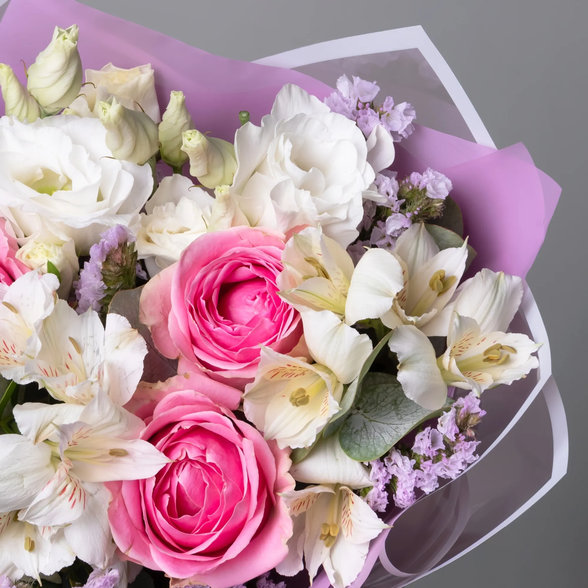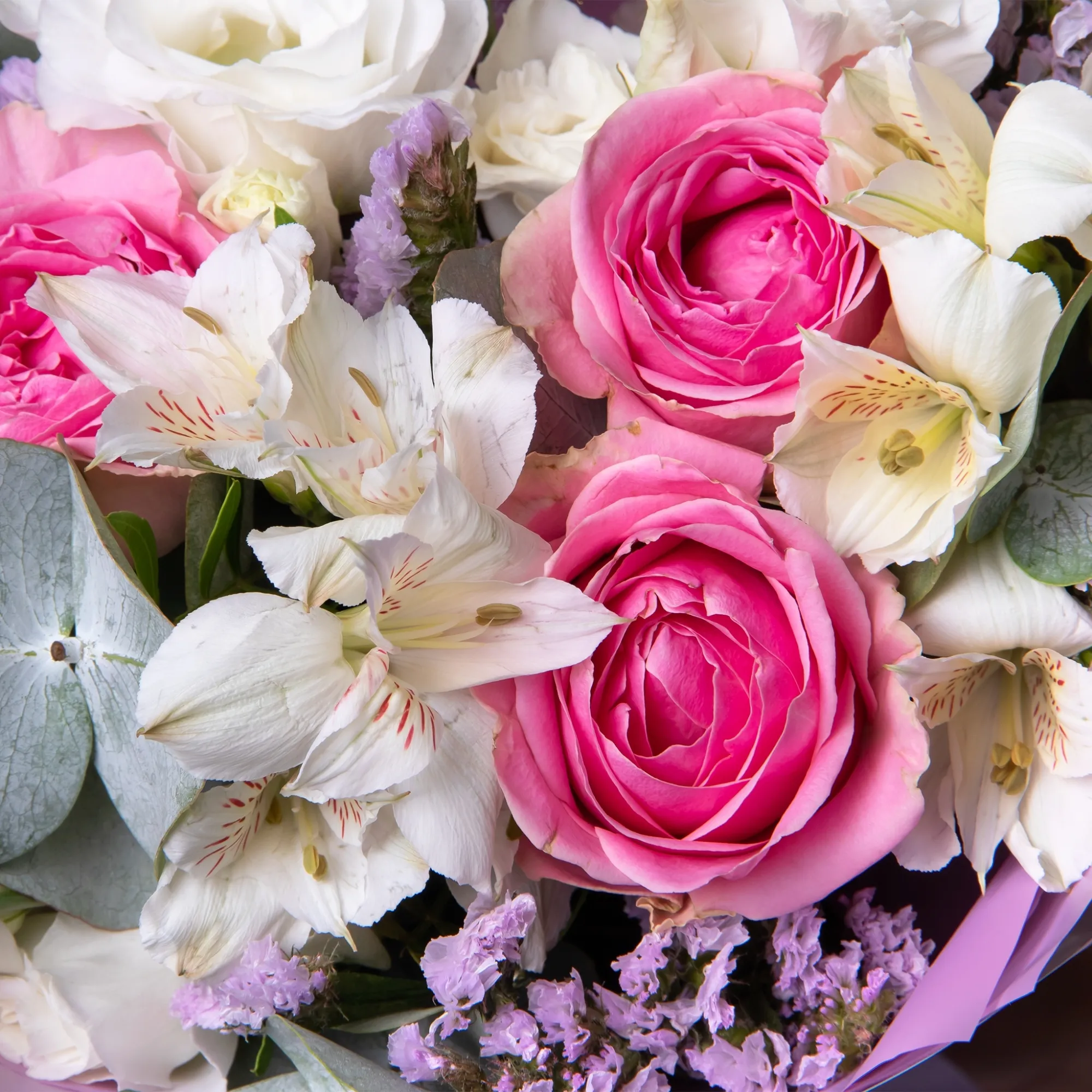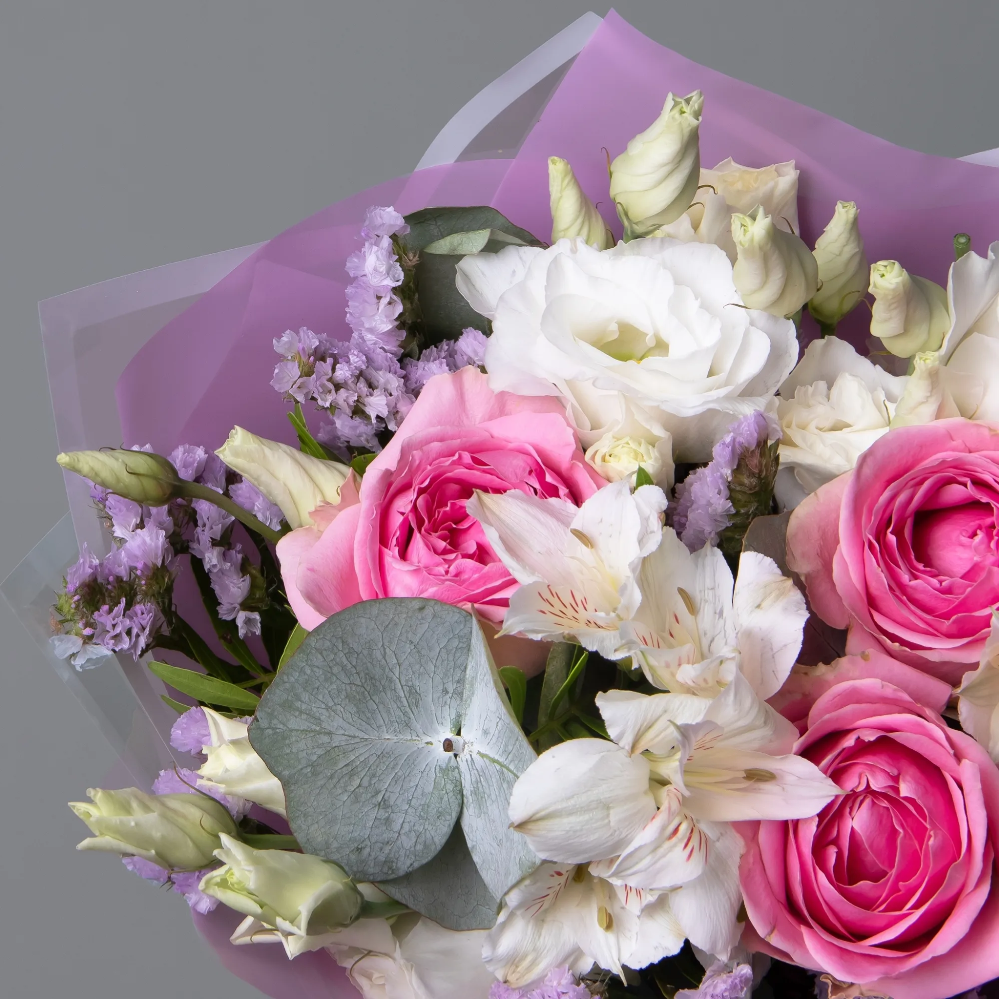 Роза, Альстромерия, Листья фисташки, Листья эвкалипта
