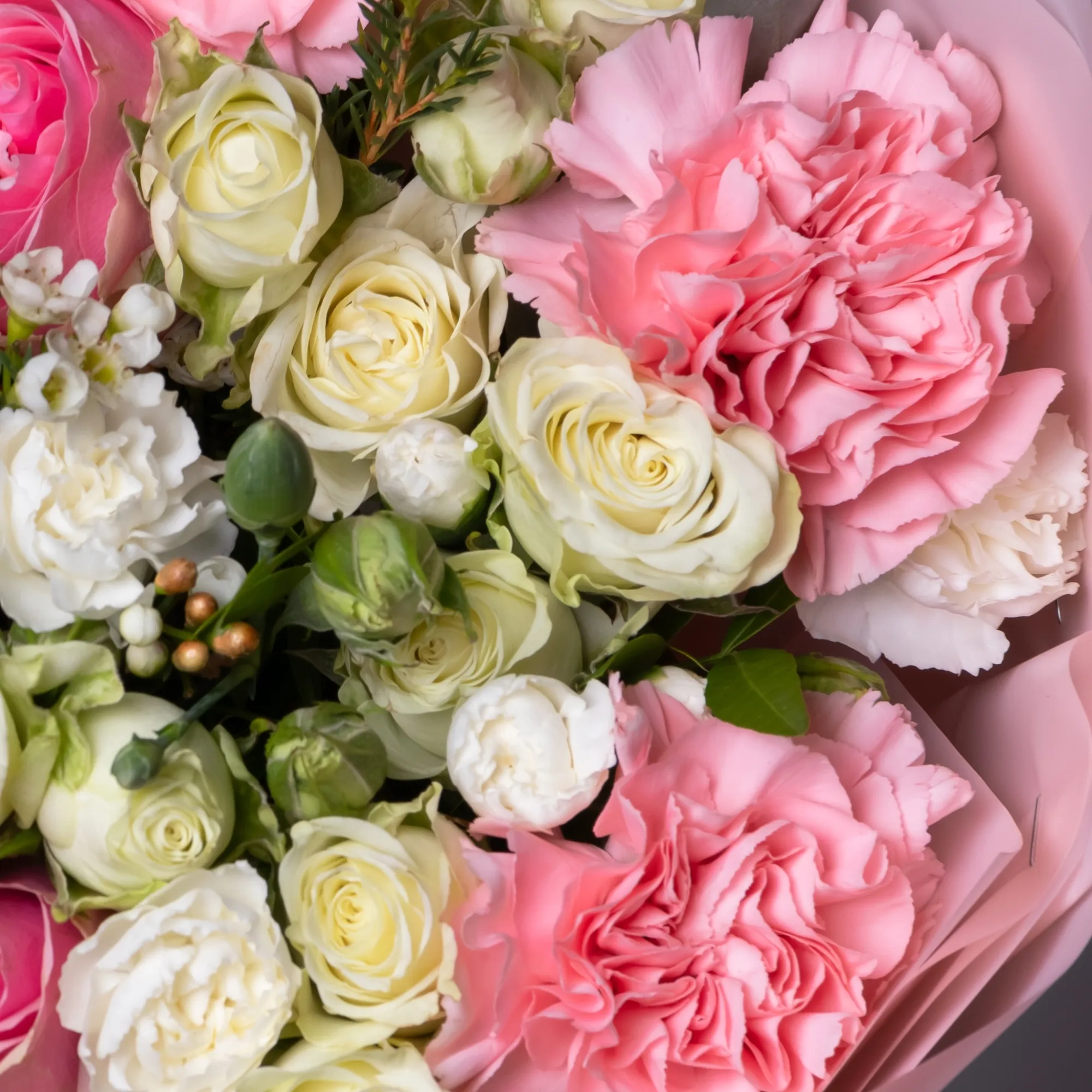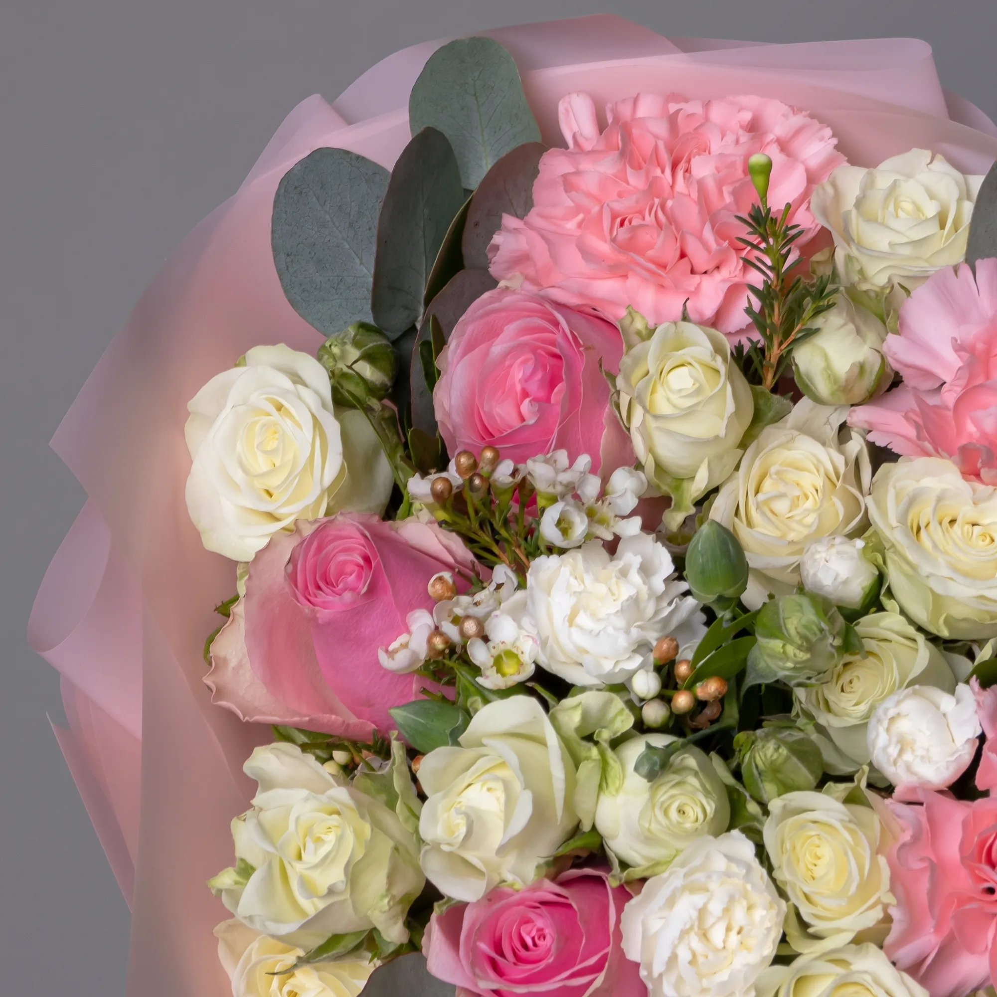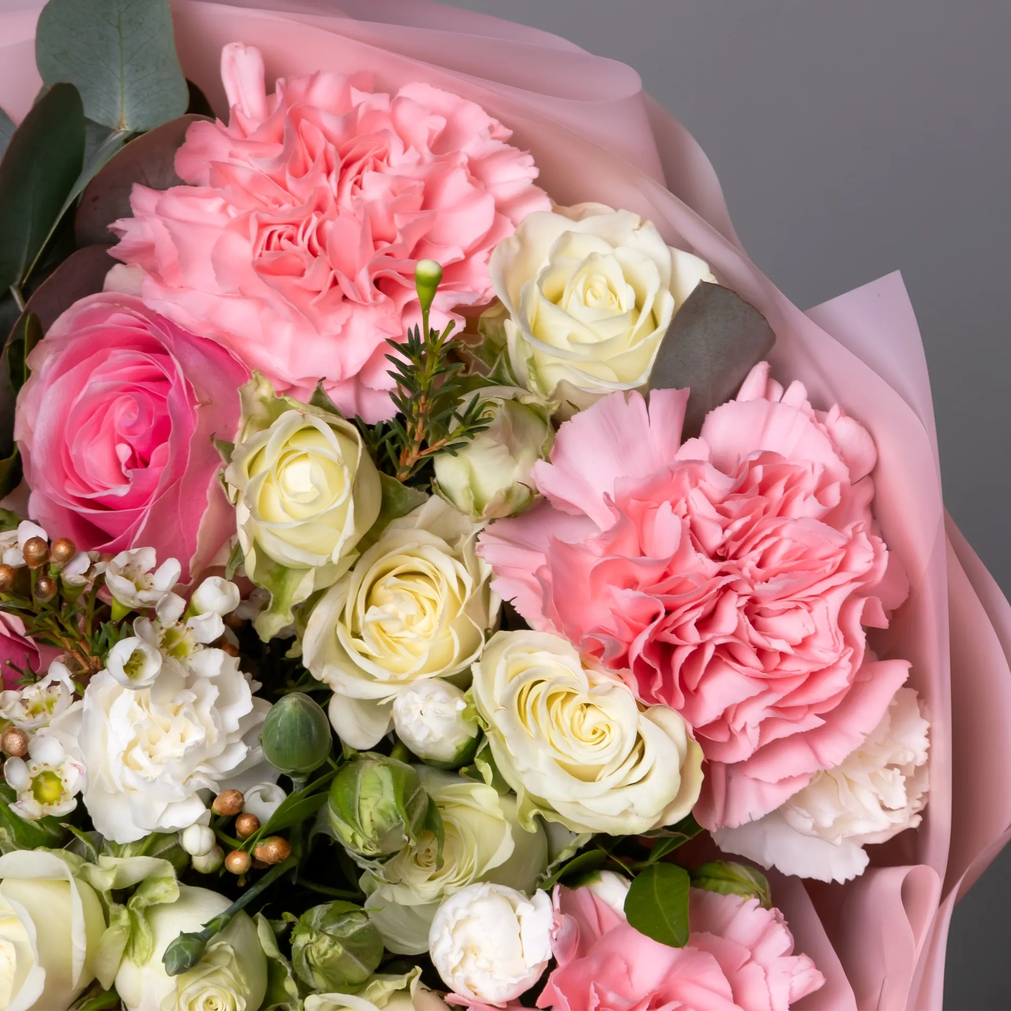 Гвоздика, Роза, Листья фисташки, Листья эвкалипта