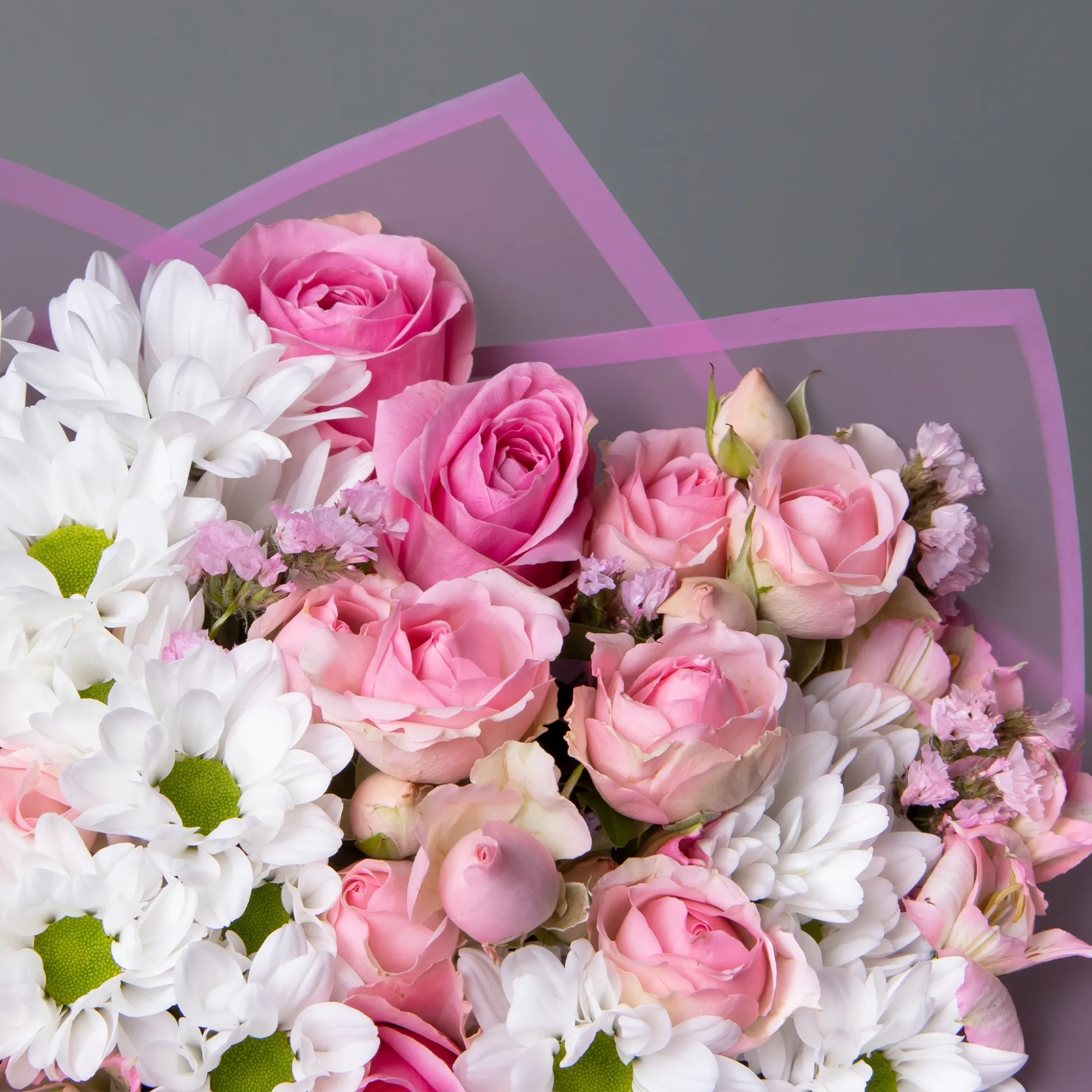 К сожалению, мы не можем гарантировать точную копию букета. Наши цветы могут отличаться от указанных на фотографии, ведь они приезжают к нам из разных уголков мира.