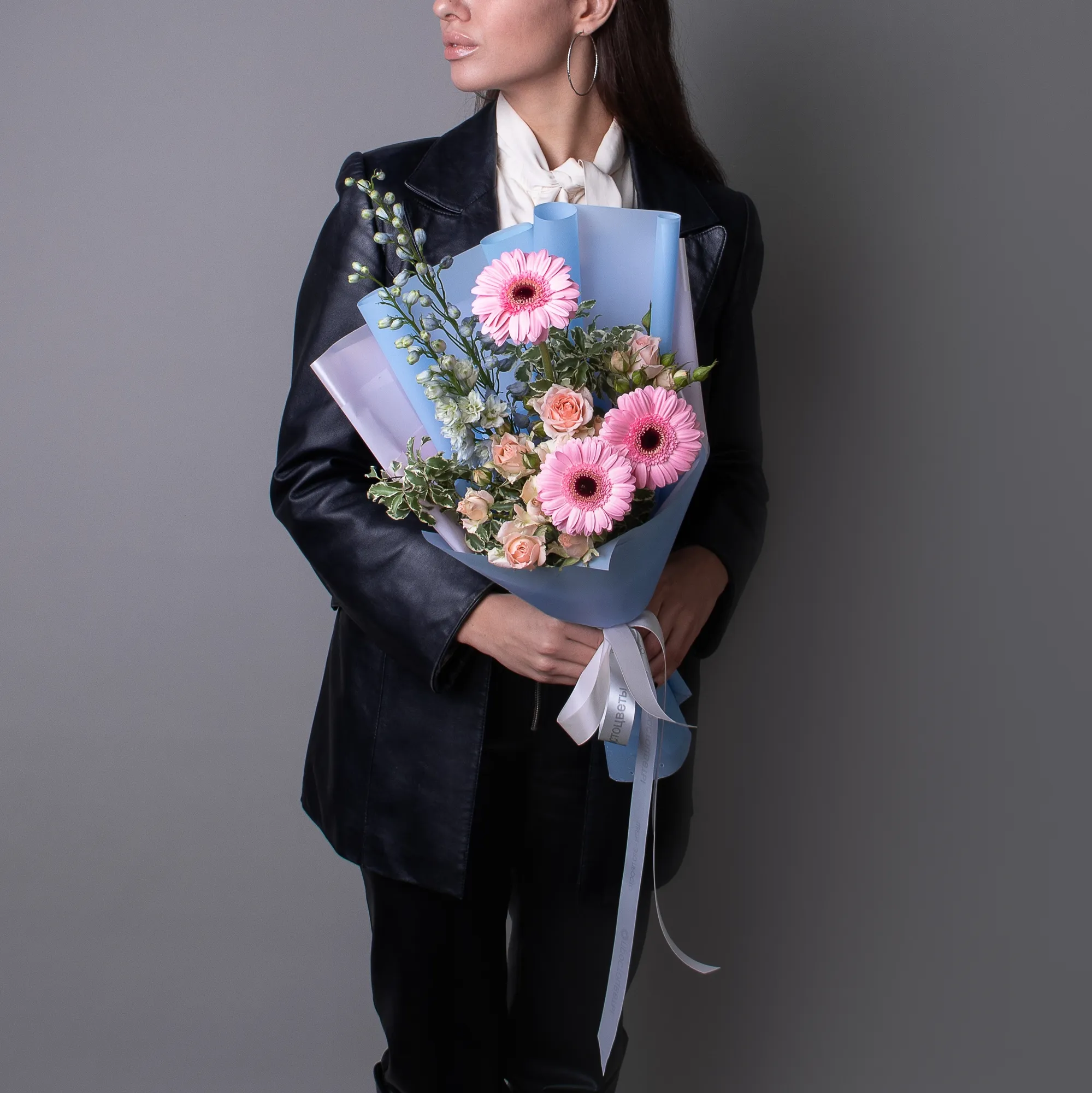 К сожалению, мы не можем гарантировать точную копию букета. Наши цветы могут отличаться от указанных на фотографии, ведь они приезжают к нам из разных уголков мира.
