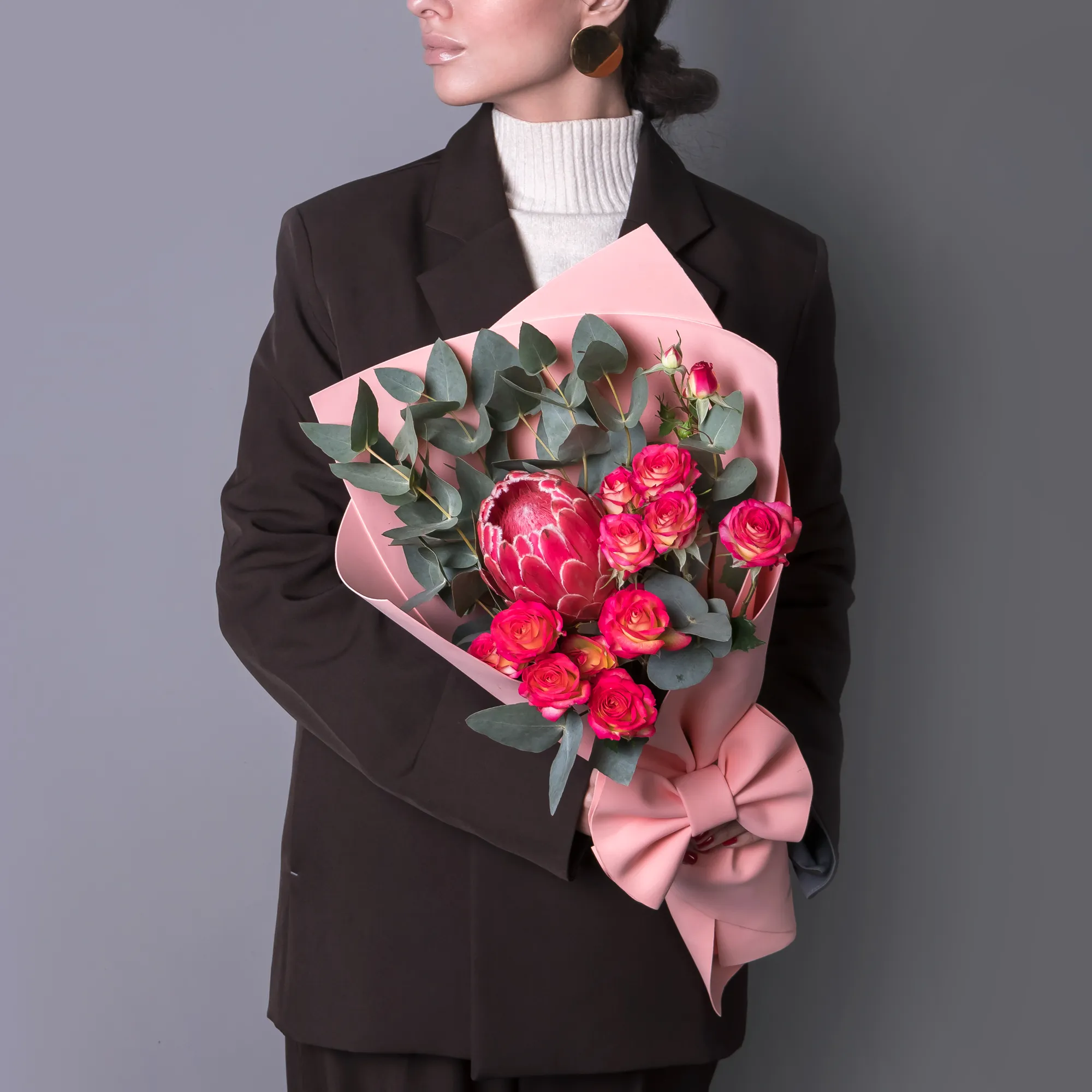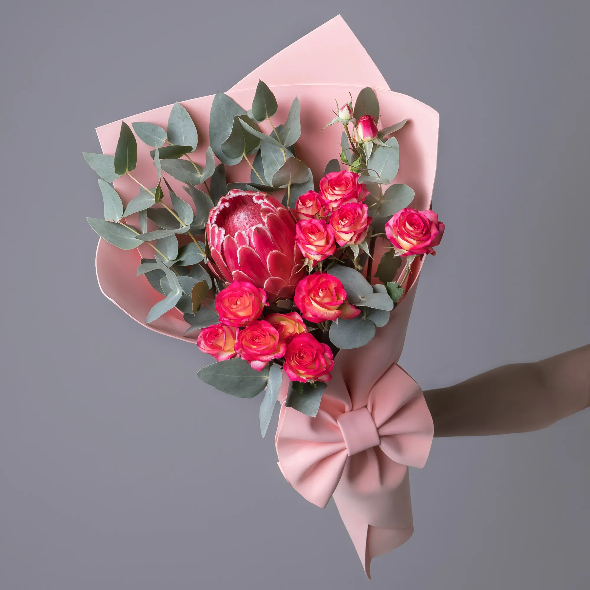 В свою очередь, мы гарантируем соблюдение стиля и основного состава букета, в этом можете быть уверенными.
