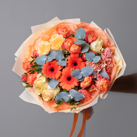 В свою очередь, мы гарантируем соблюдение стиля и основного состава букета, в этом можете быть уверенными.