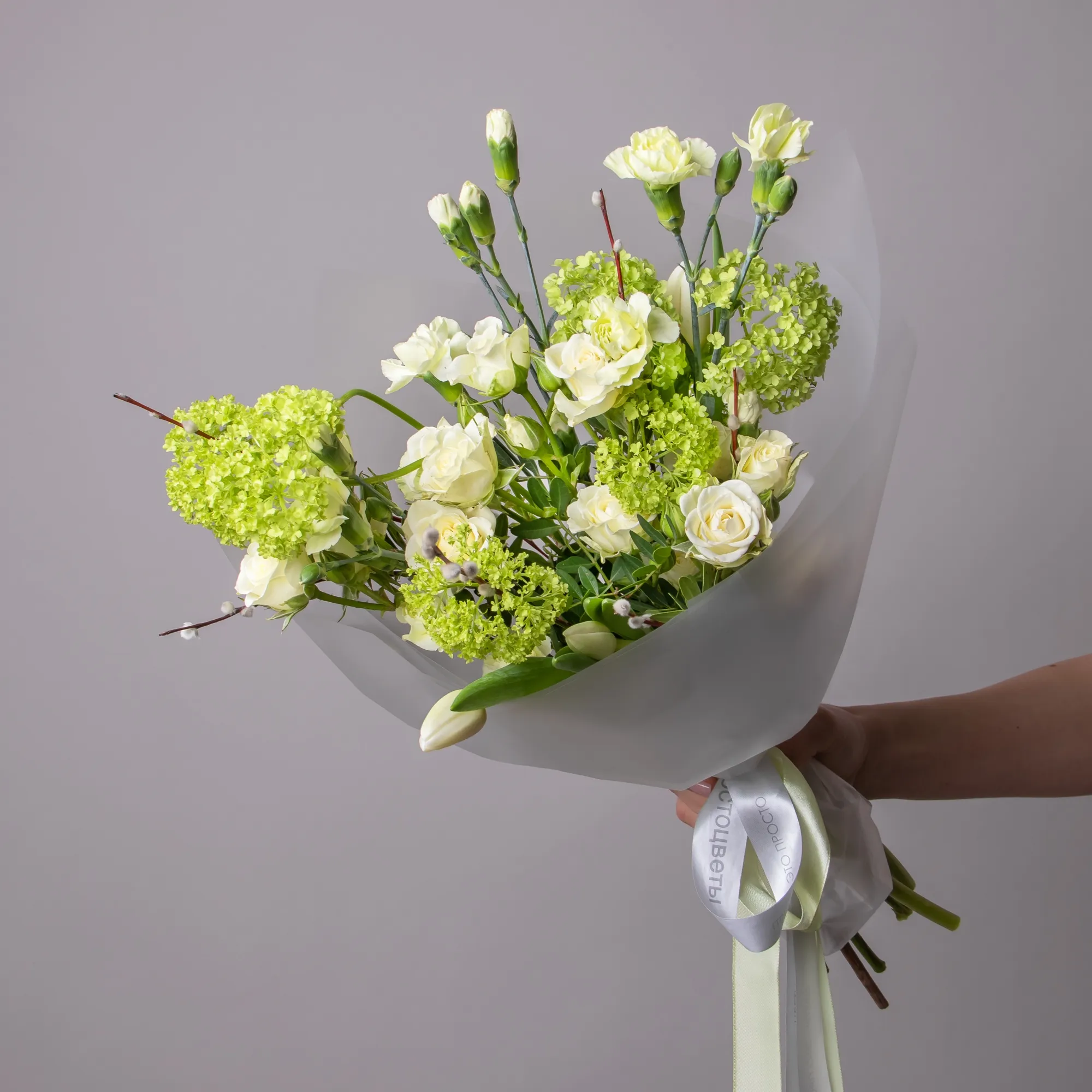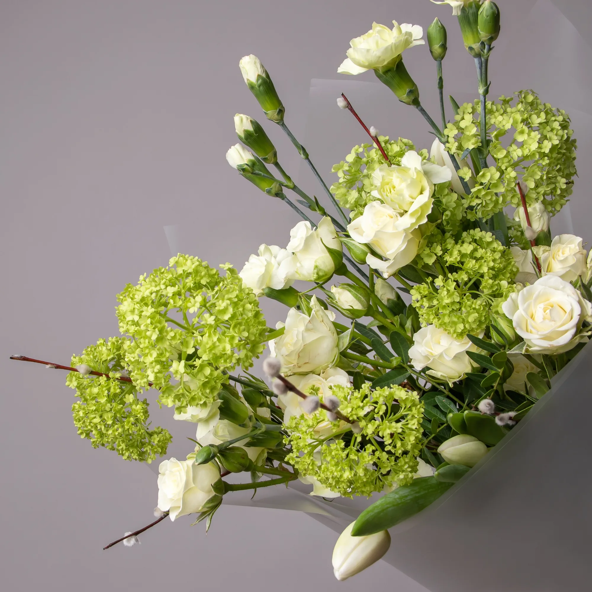 Верба-3, Тюльпан-3, Роза кустовая-3, Гвоздика кустовая-3, Листья эвкалипта-2
