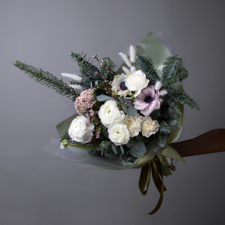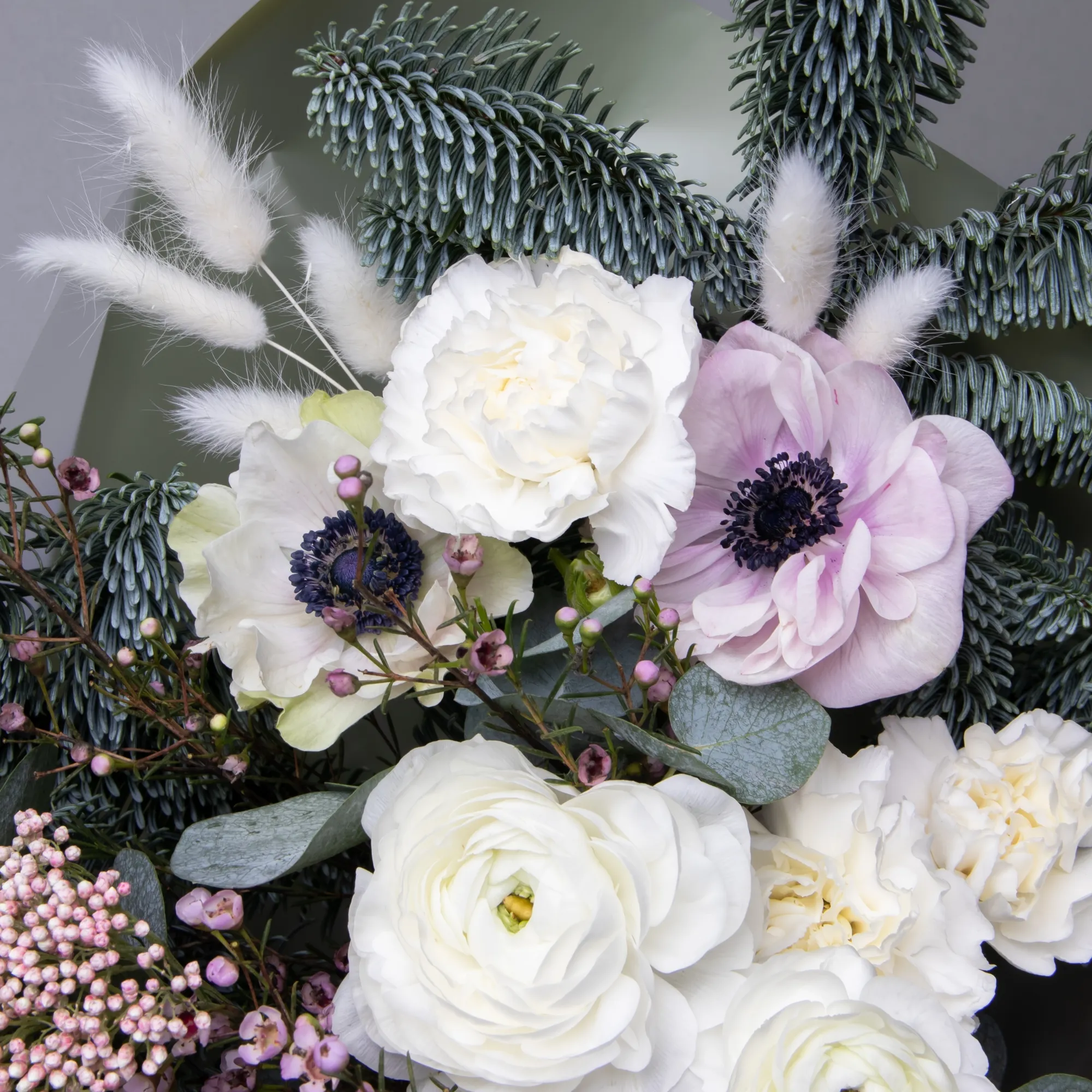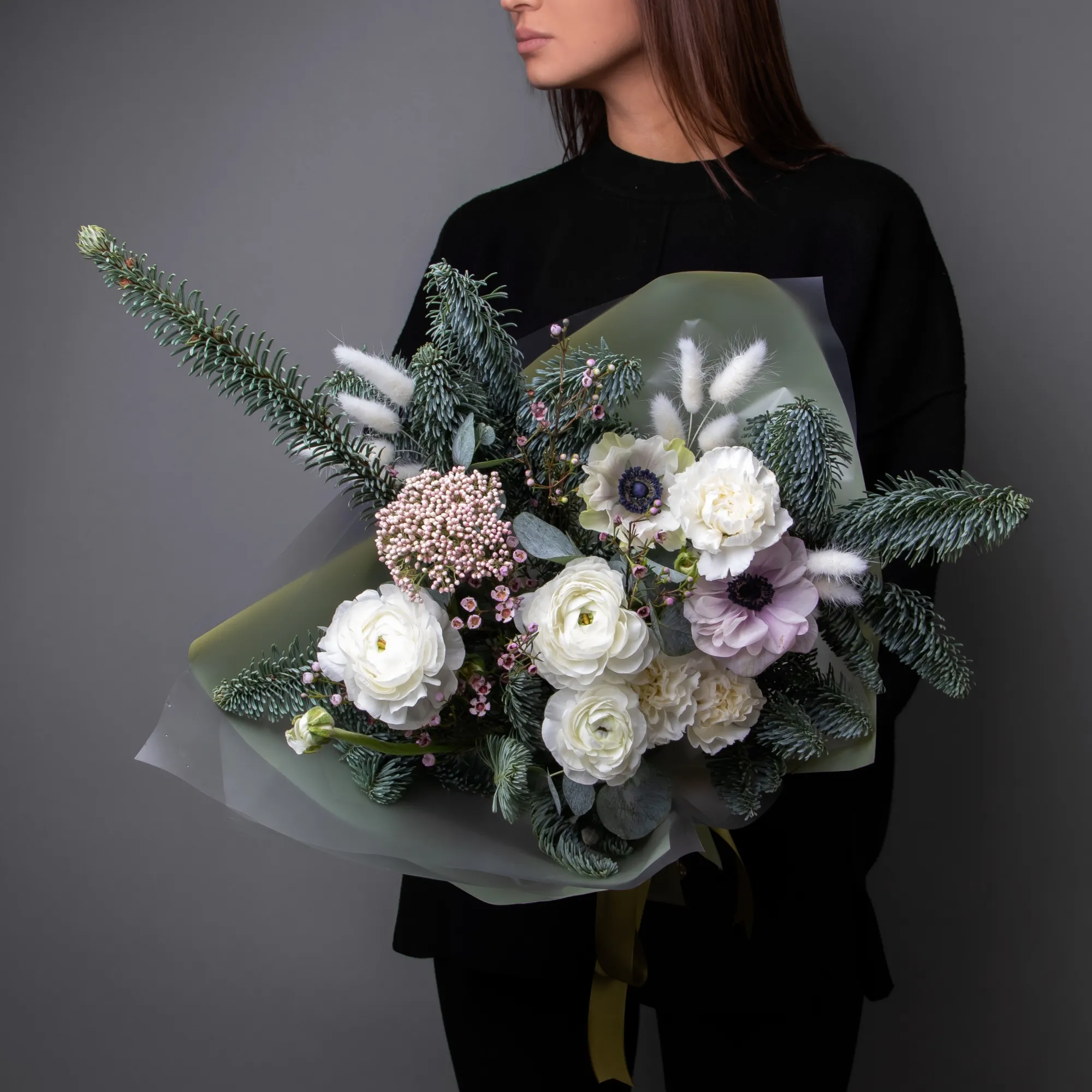 Гвоздика, Ранункулюс, Анемон, Листья эвкалипта, Нобилис