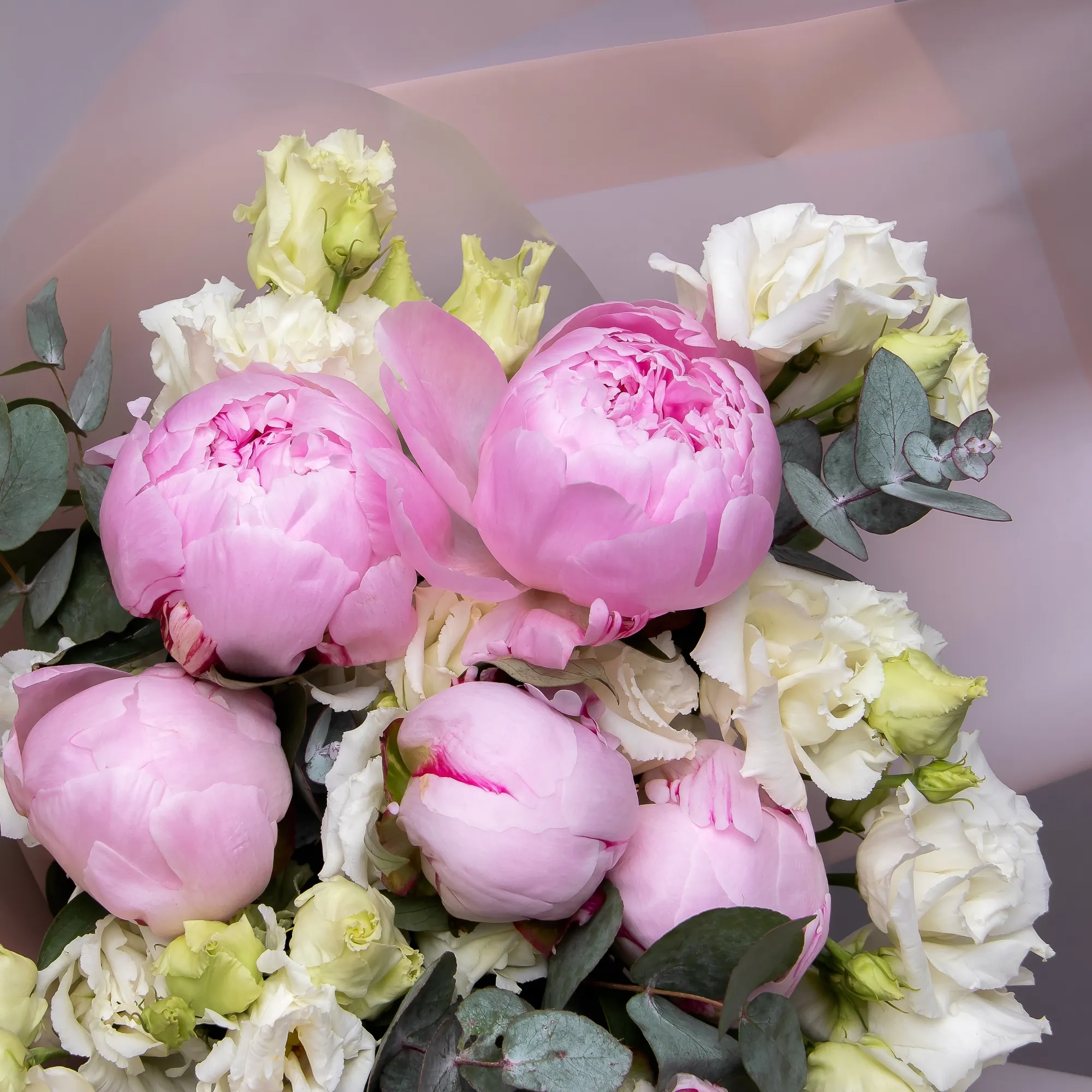 Пион-9, Эустома-7, Листья эвкалипта-7