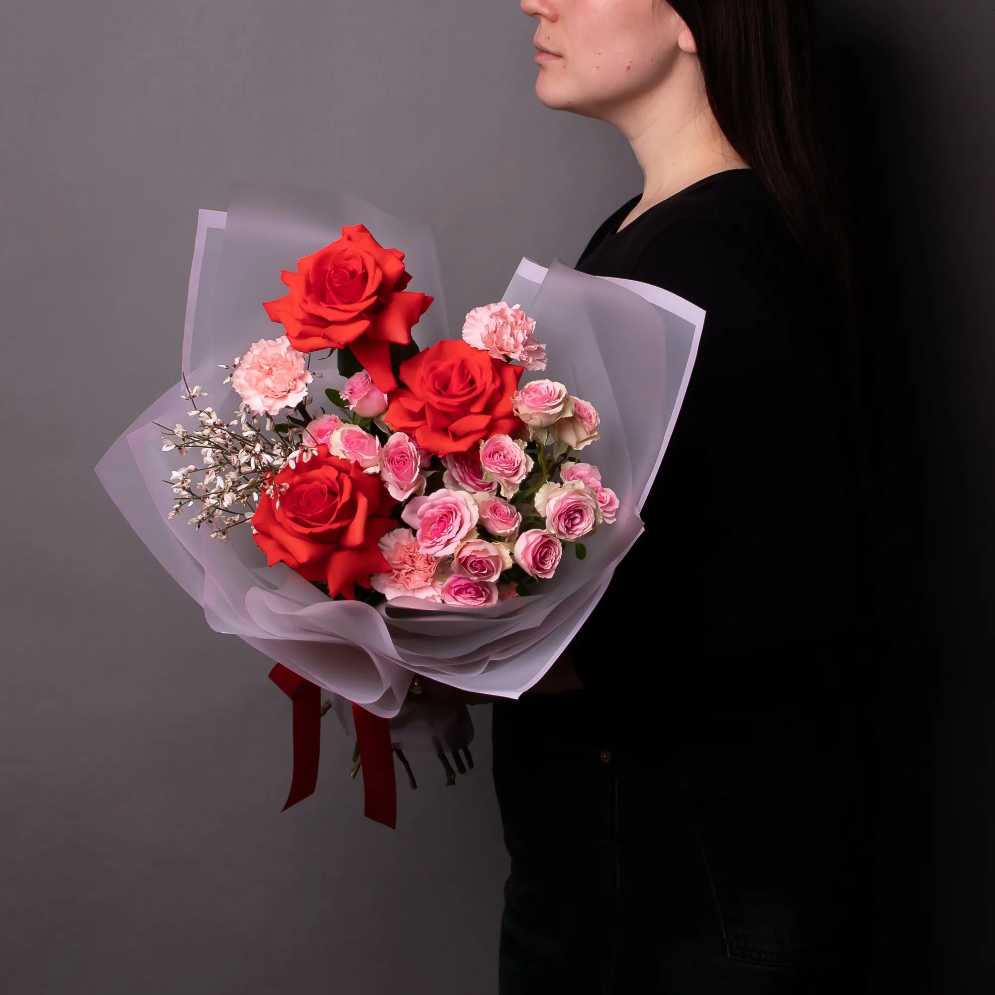 К сожалению, мы не можем гарантировать точную копию букета. Наши цветы могут отличаться от указанных на фотографии, ведь они приезжают к нам из разных уголков мира.