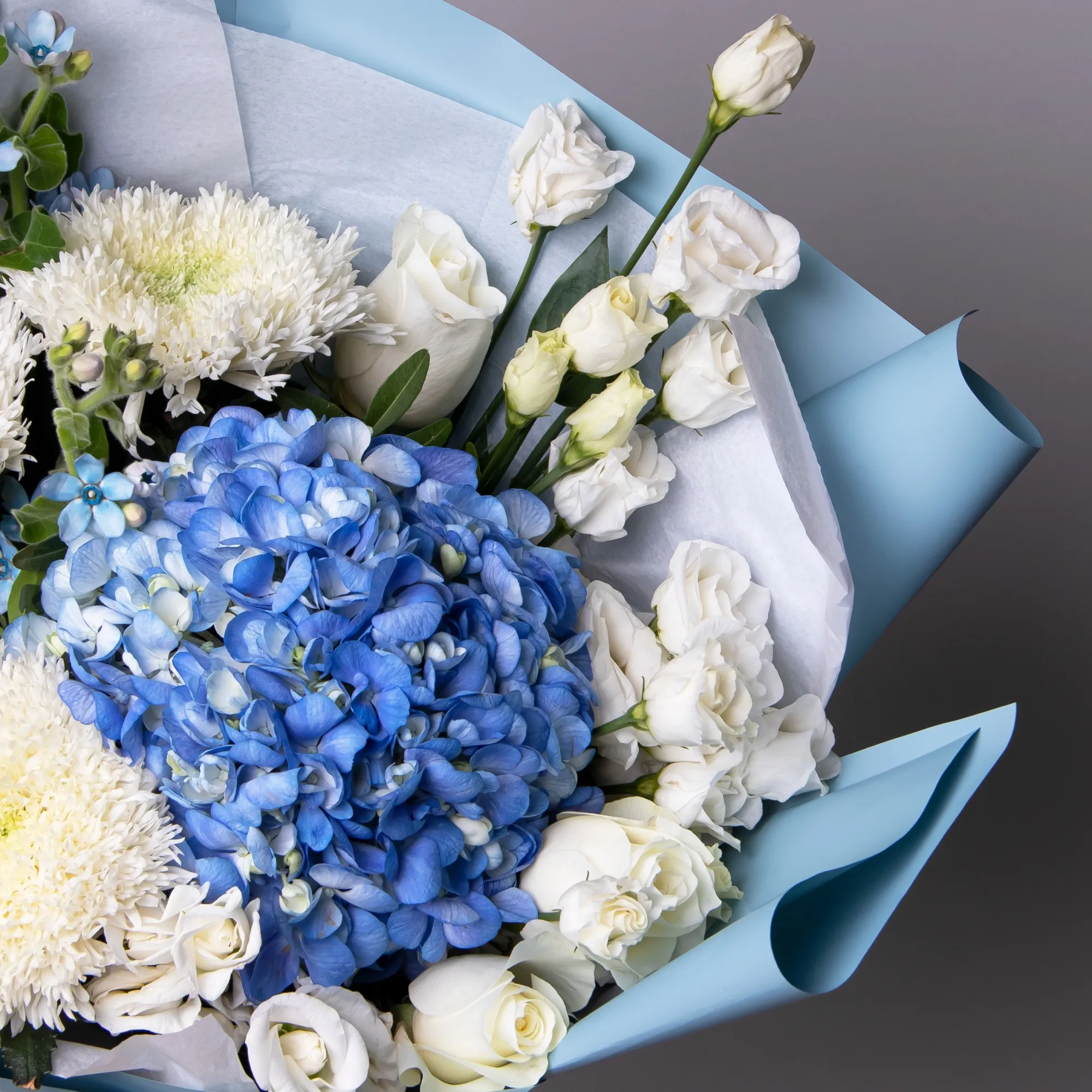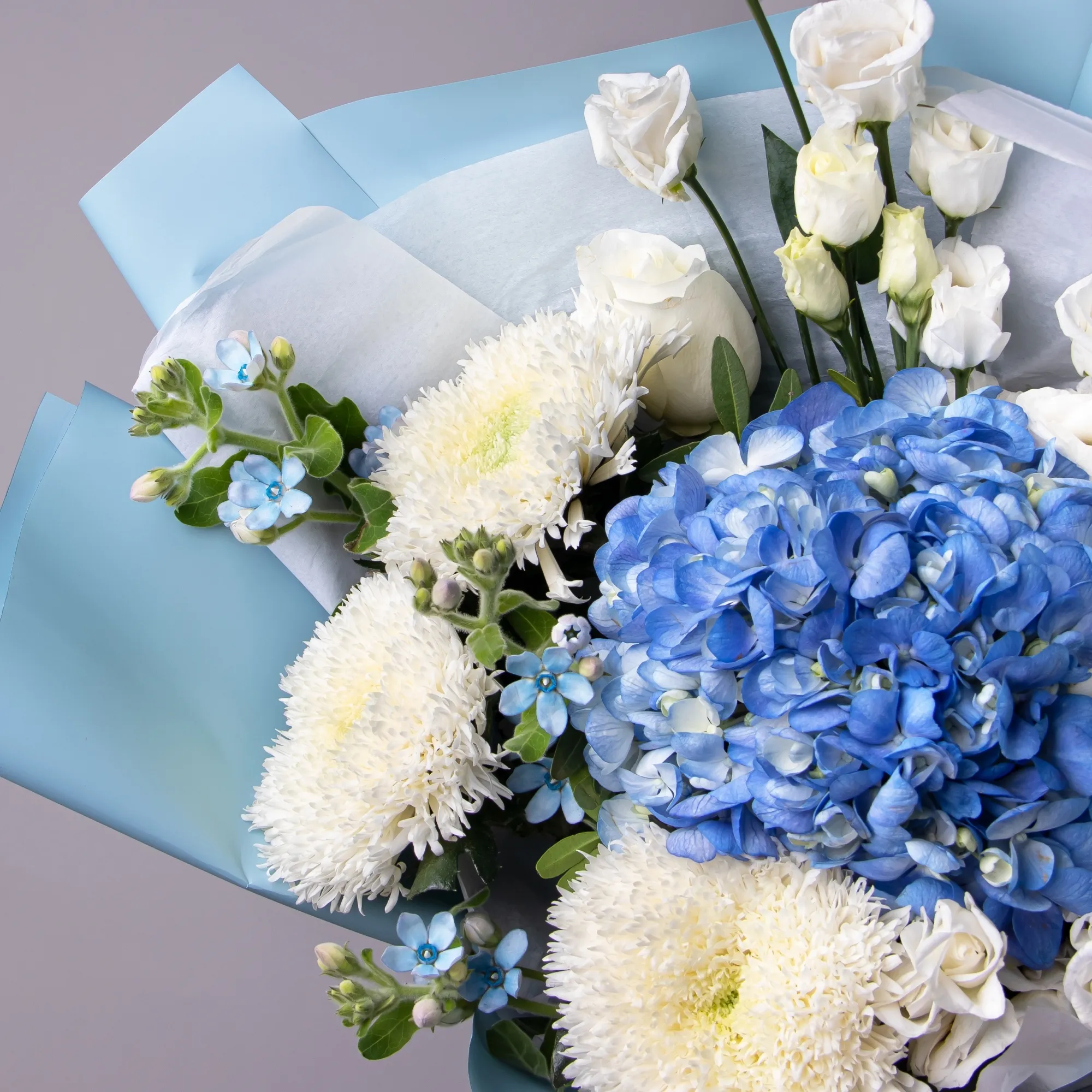 Гортензия-1, Роза-3, Хризантема-3, Эустома-2, Оксипеталум-3, Листья фисташки-4