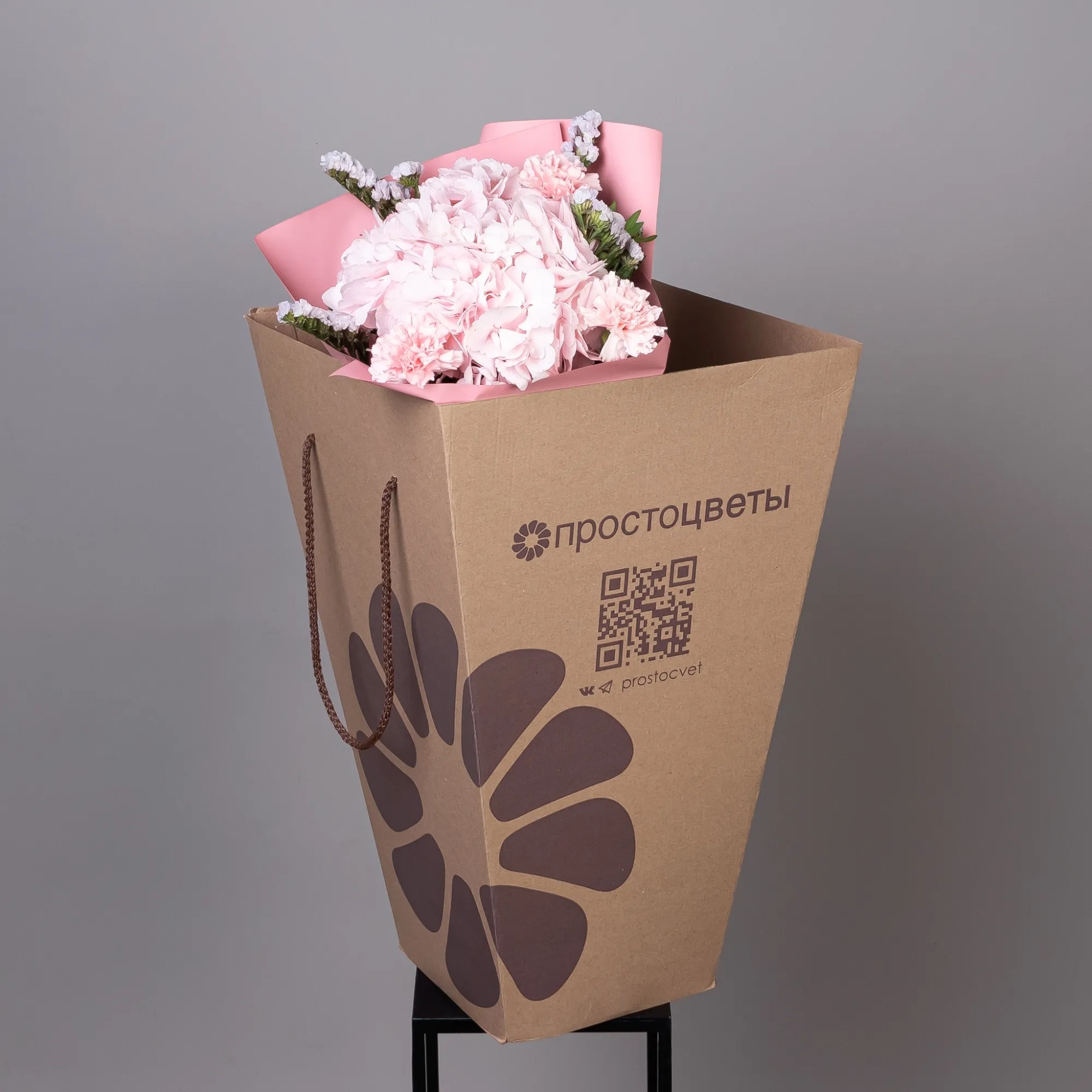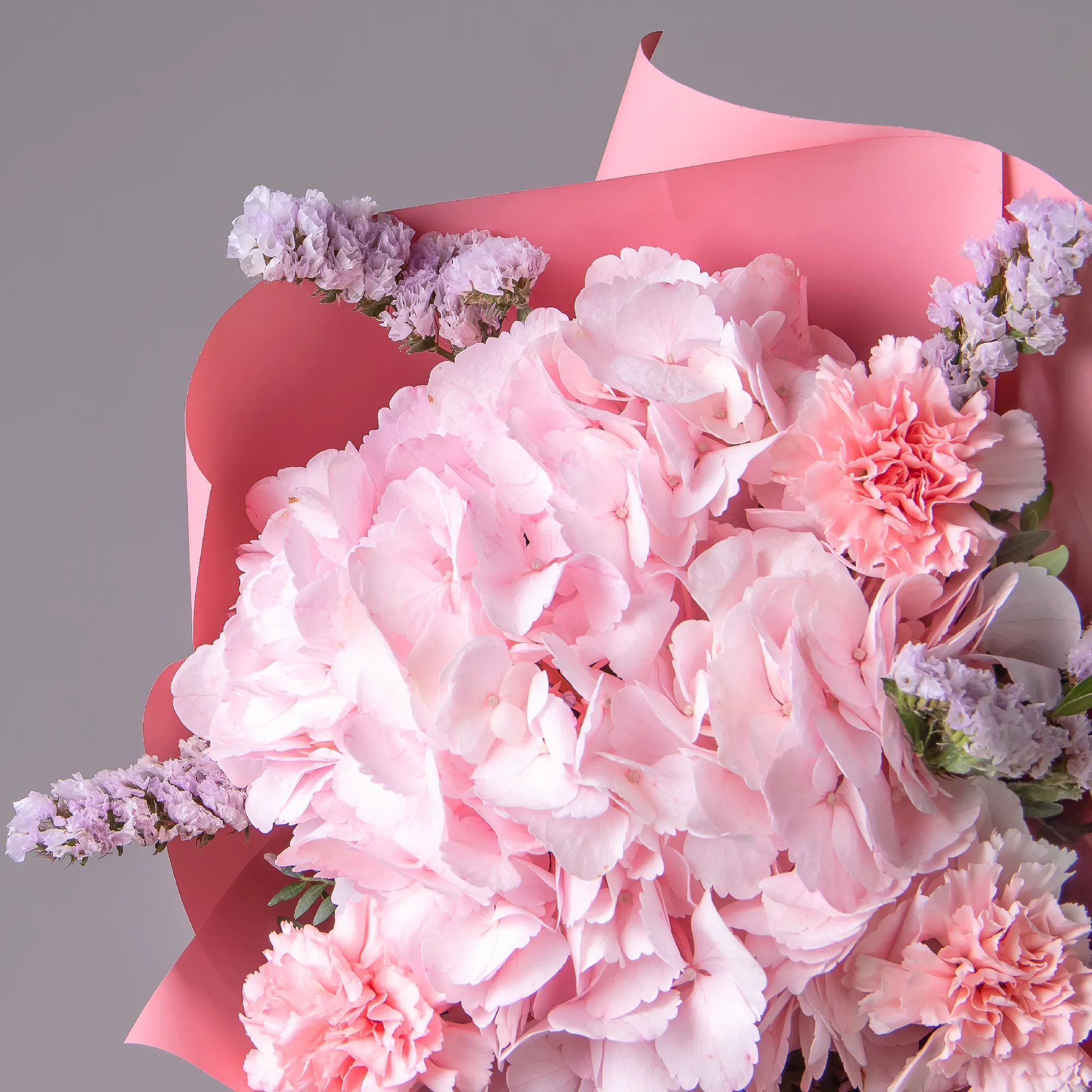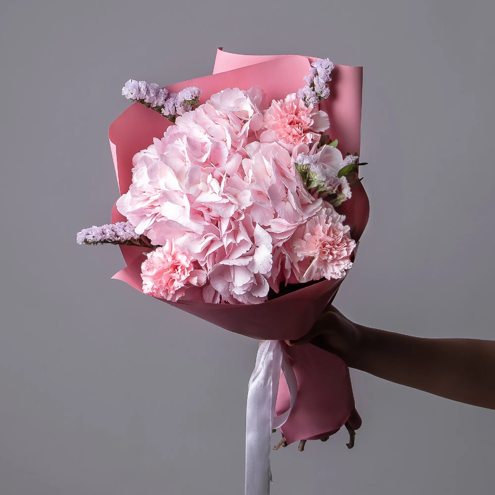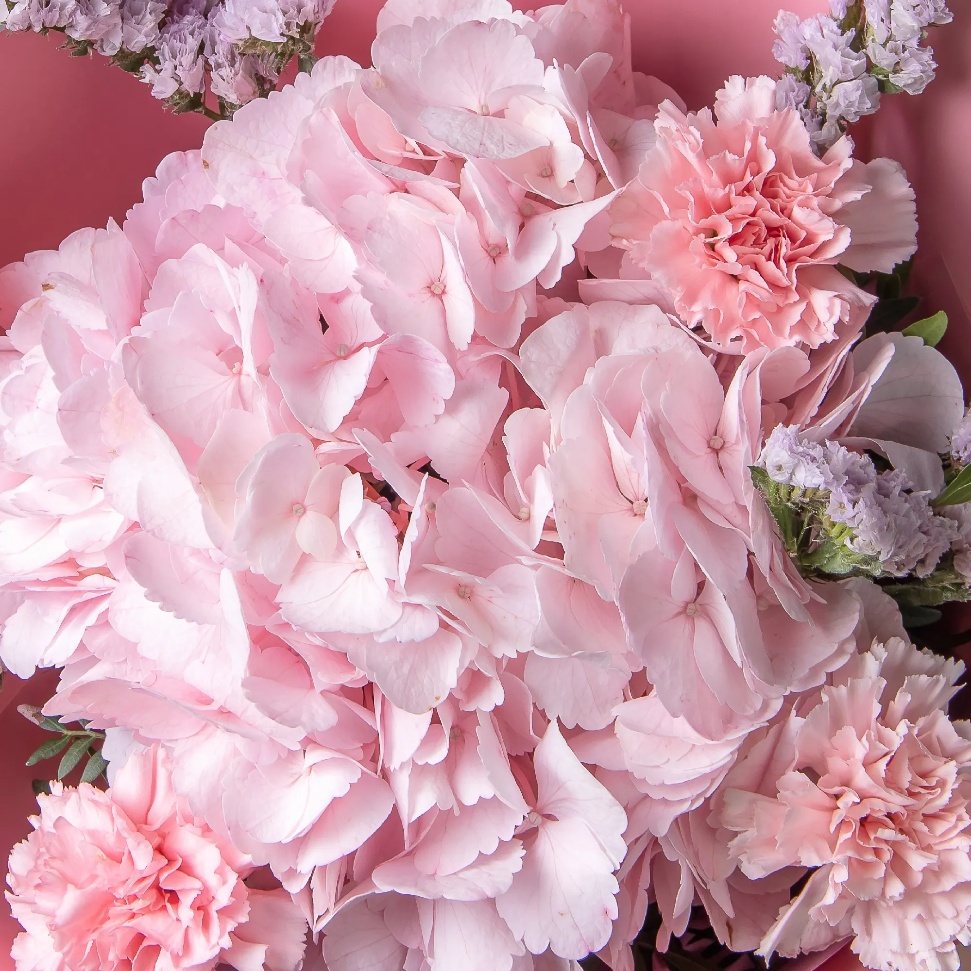 В составе букета "Розовая симфония S" розовая статица, розовая гидрангия, розовая гвоздика, дополнен листьями фисташки. *Выражения благодарности*— монохромная розовая гамма символизирует признательность и уважение, делая букет особенно уместным для выражения искренней благодарности. *Праздничного поздравления* — утончённая композиция станет прекрасным подарком на день рождения или другой особенный случай, подчеркивая особый характер торжества. Гармоничное сочетание нежных розовых оттенков, где статица, гидрангия и гвоздика создают изысканную композицию, а листья фисташки добавляют свежести образу. Закажите букет с доставкой или заберите самовывозом. И помните, что цветы - это просто.