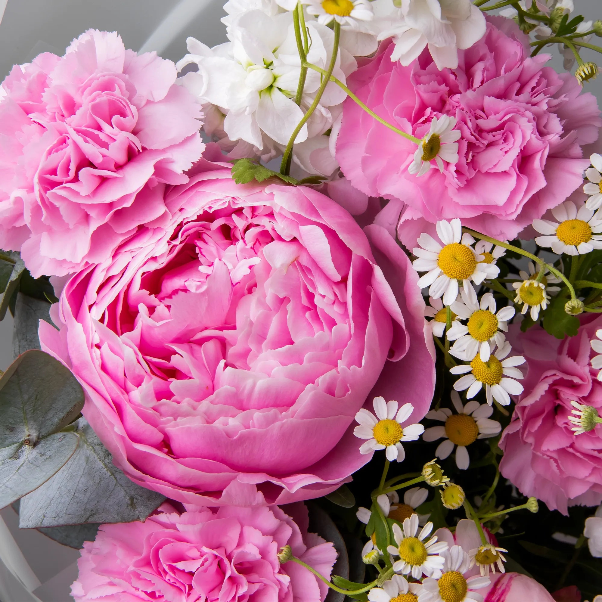Пион-3, Гвоздика-5, Ромашка-3, Маттиола-3, Листья фисташки-5, Листья эвкалипта-3