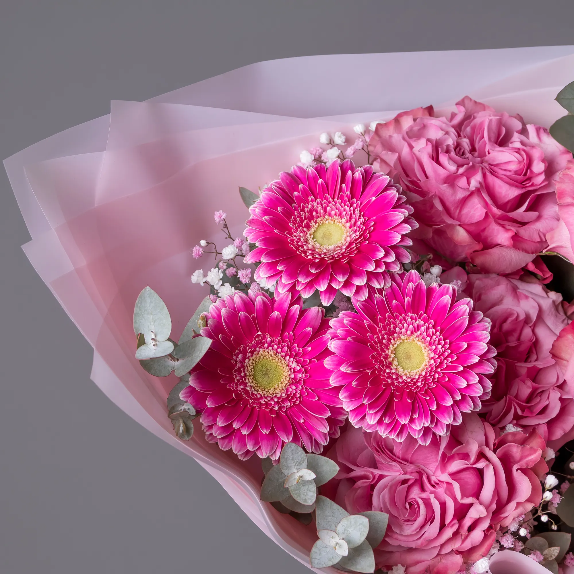 В свою очередь, мы гарантируем соблюдение стиля и основного состава букета, в этом можете быть уверенными.