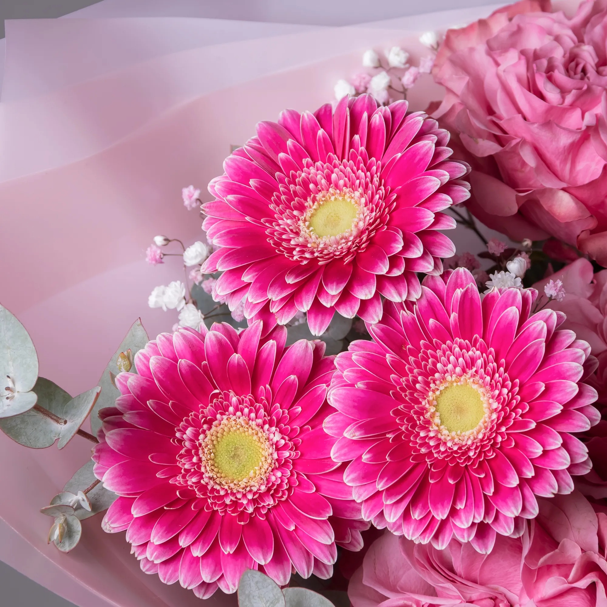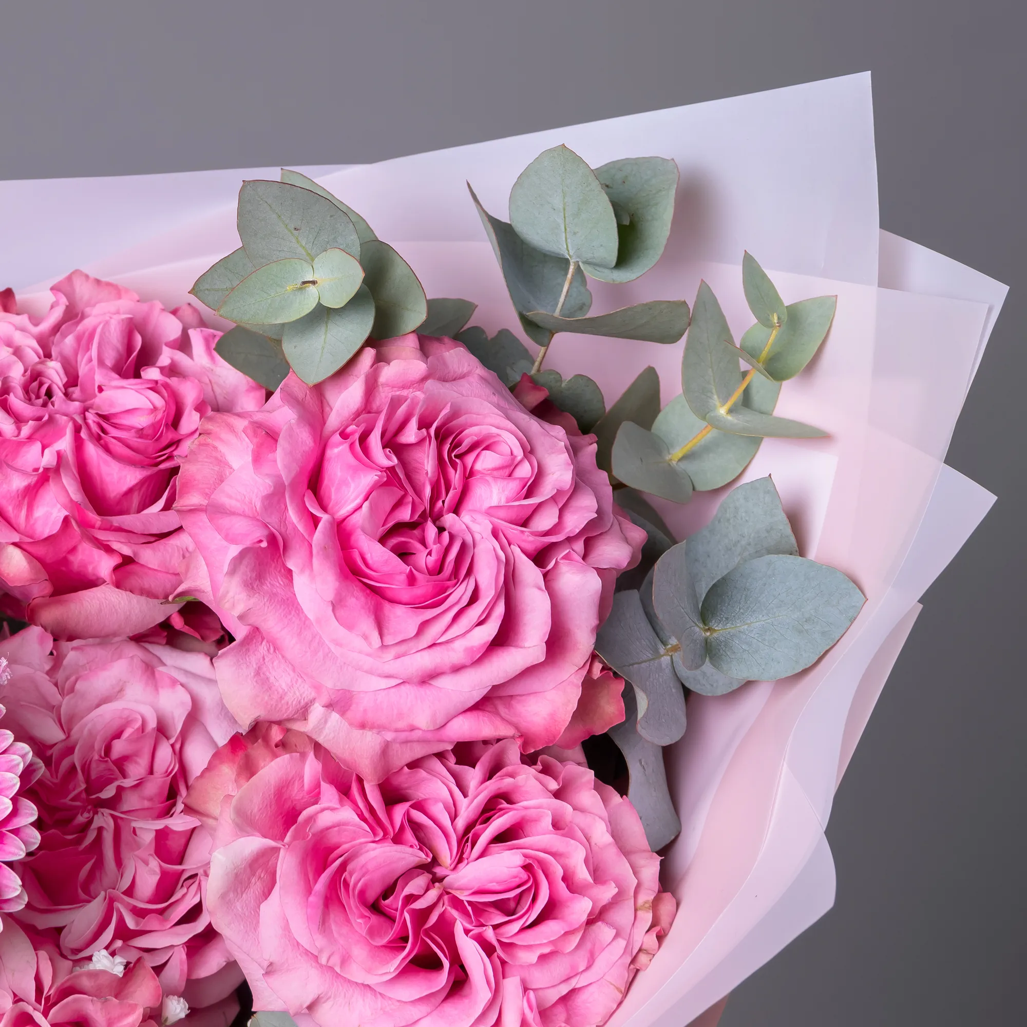 Роза, Гипсофила, Листья фисташки, Листья эвкалипта