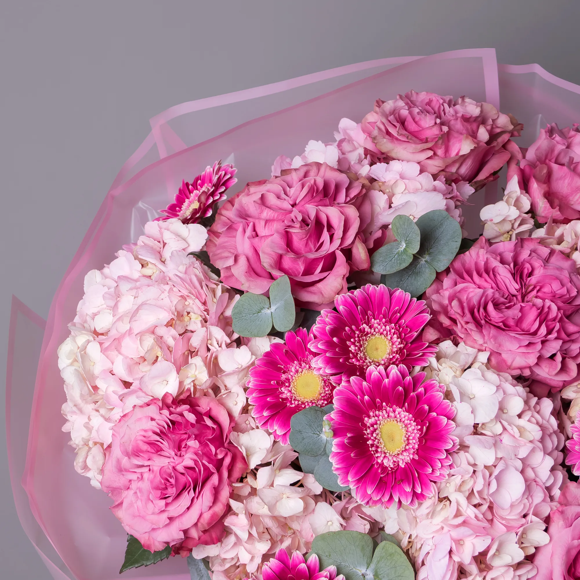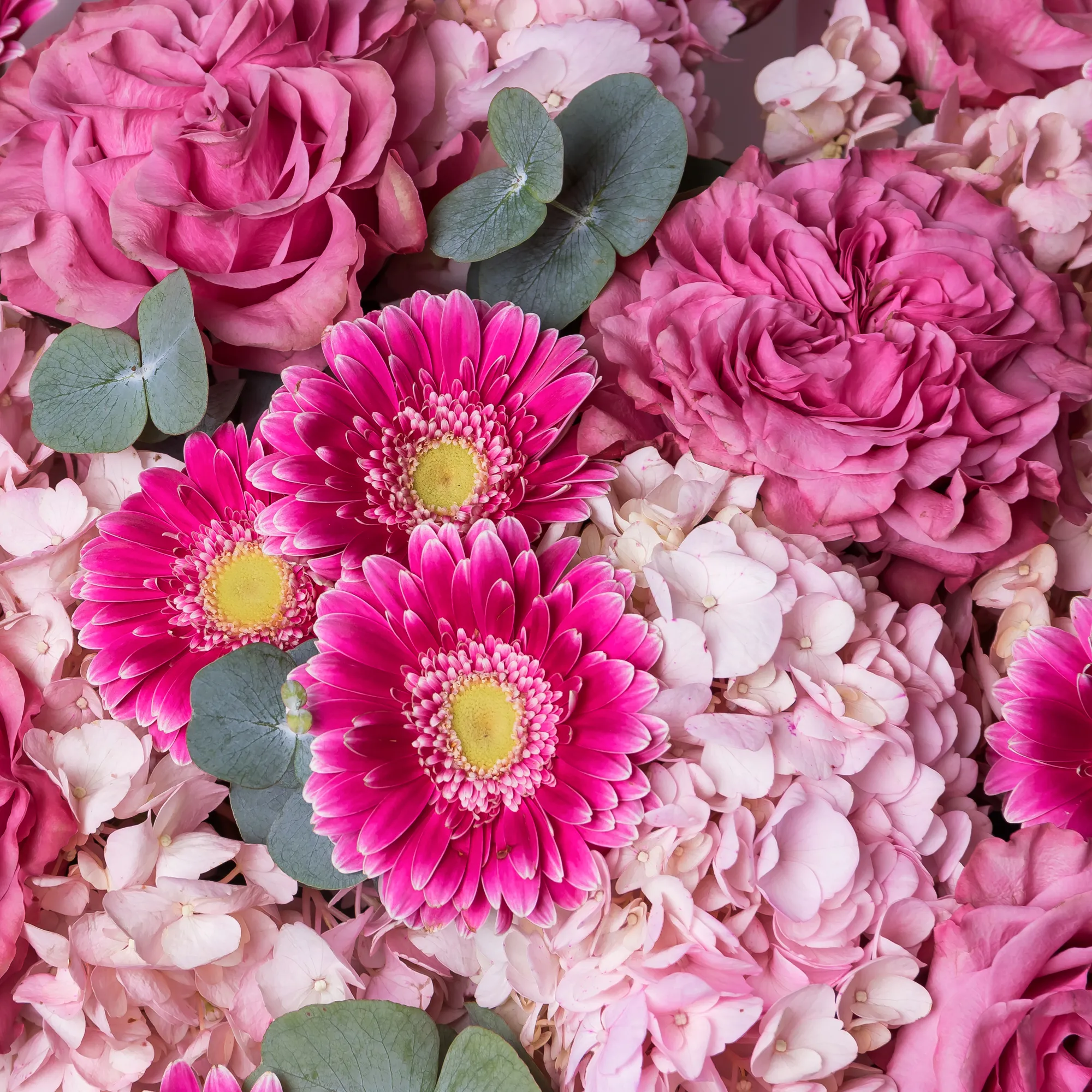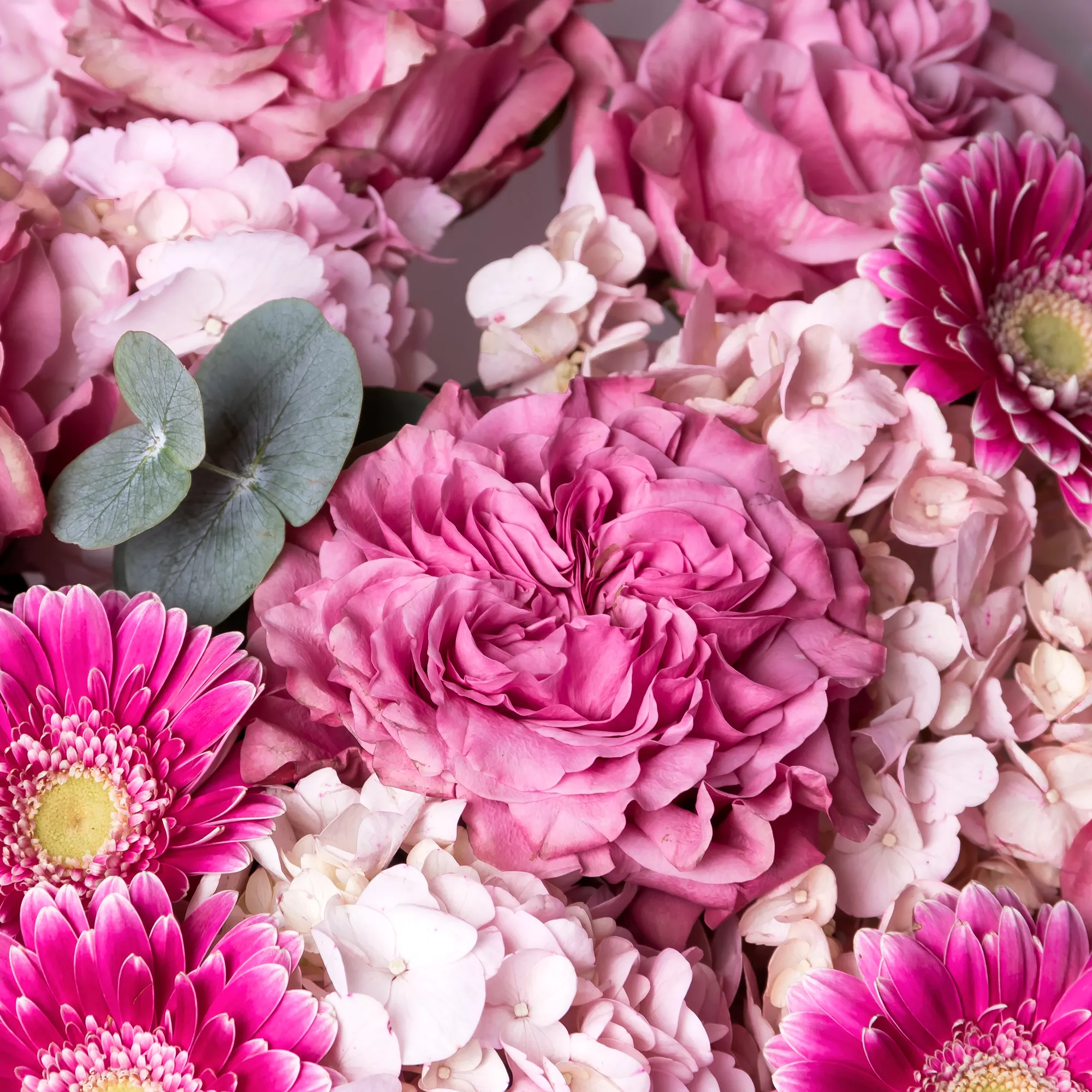 Гортензия, Роза, Листья фисташки, Листья эвкалипта