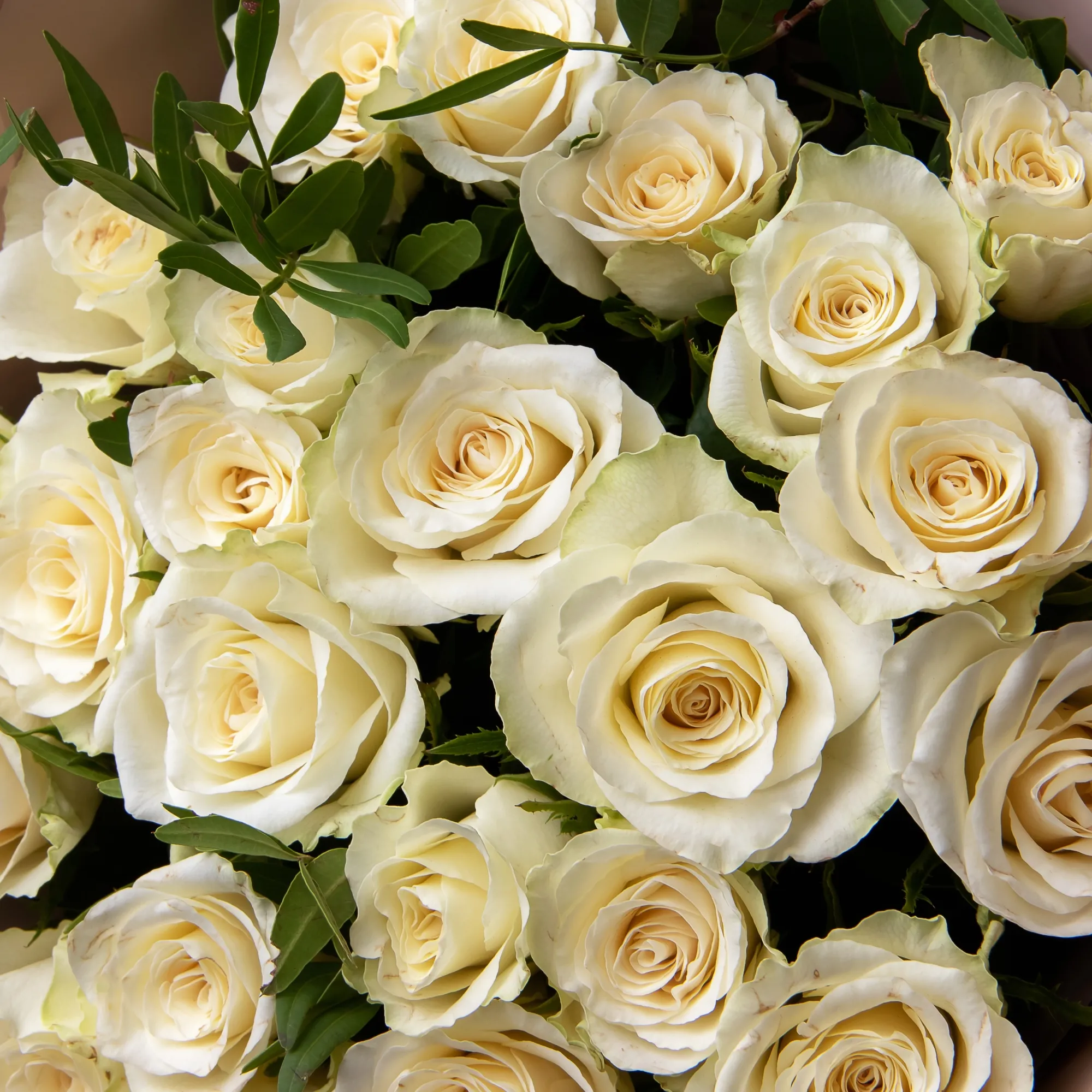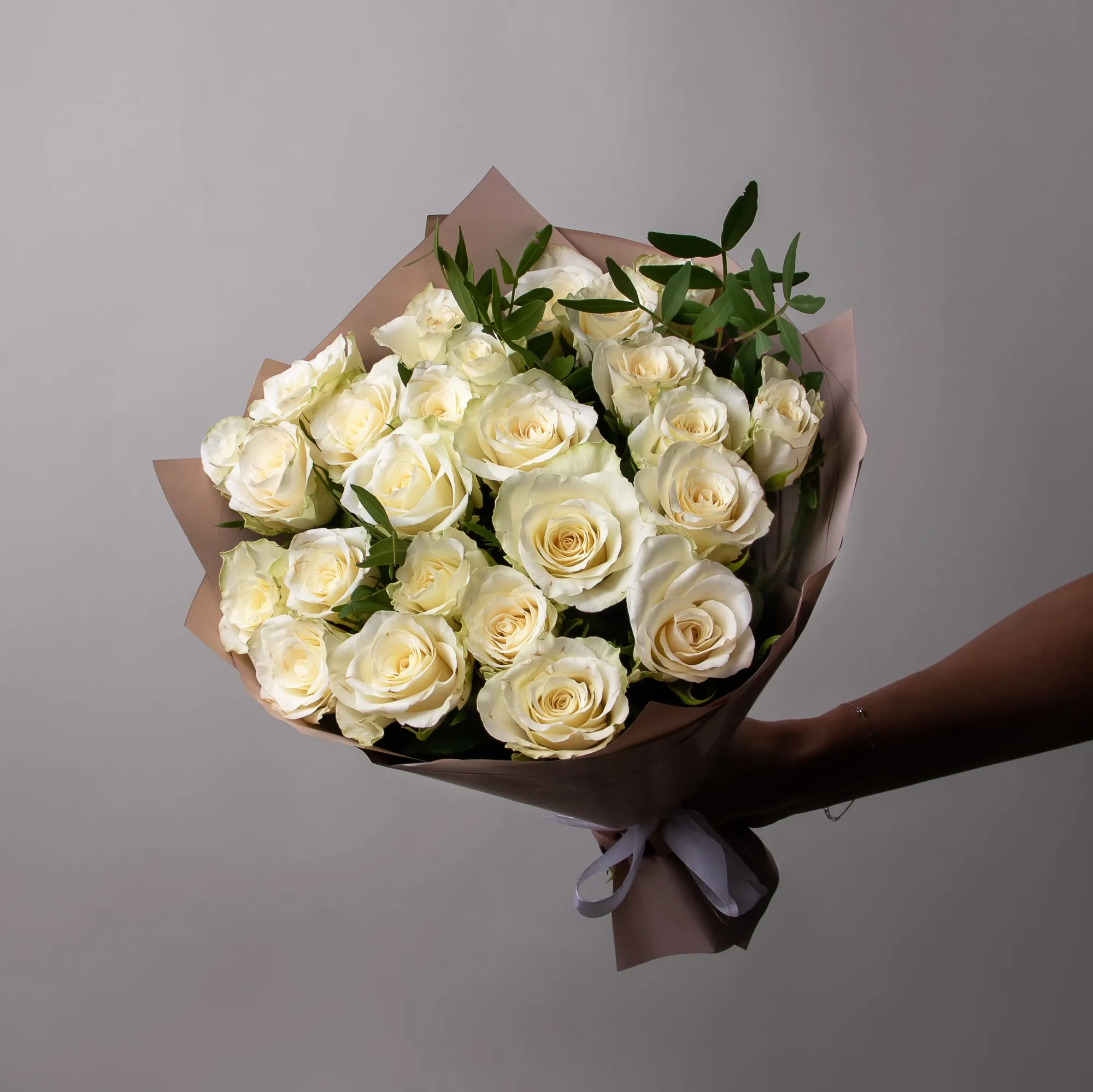 Букет Розы ПРОМО с фисташкой, белые, 25 стеблей