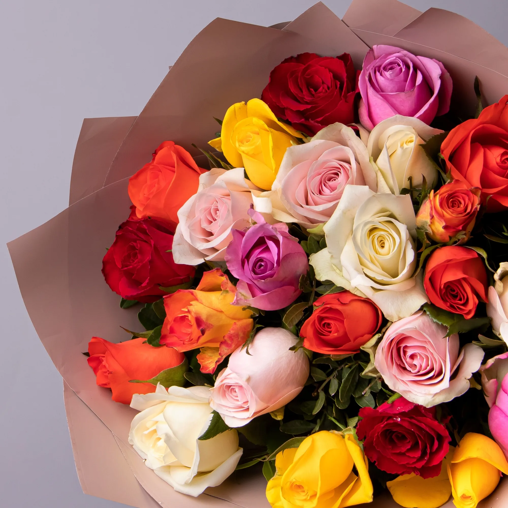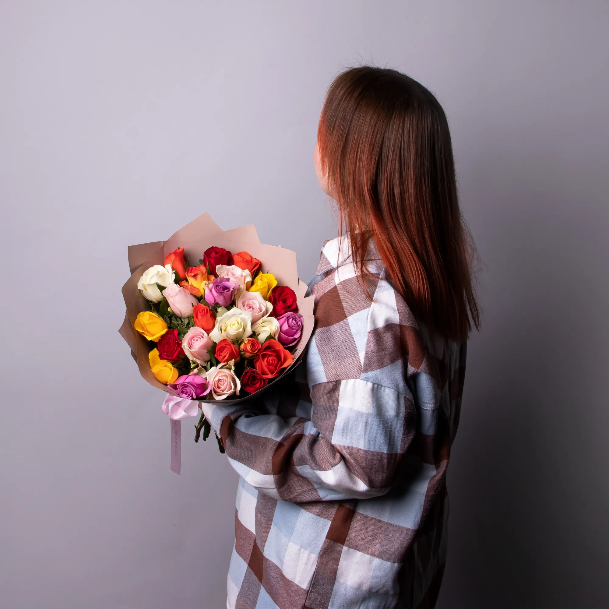 Букет Розы с фисташкой, разноцветные, 25 стеблей