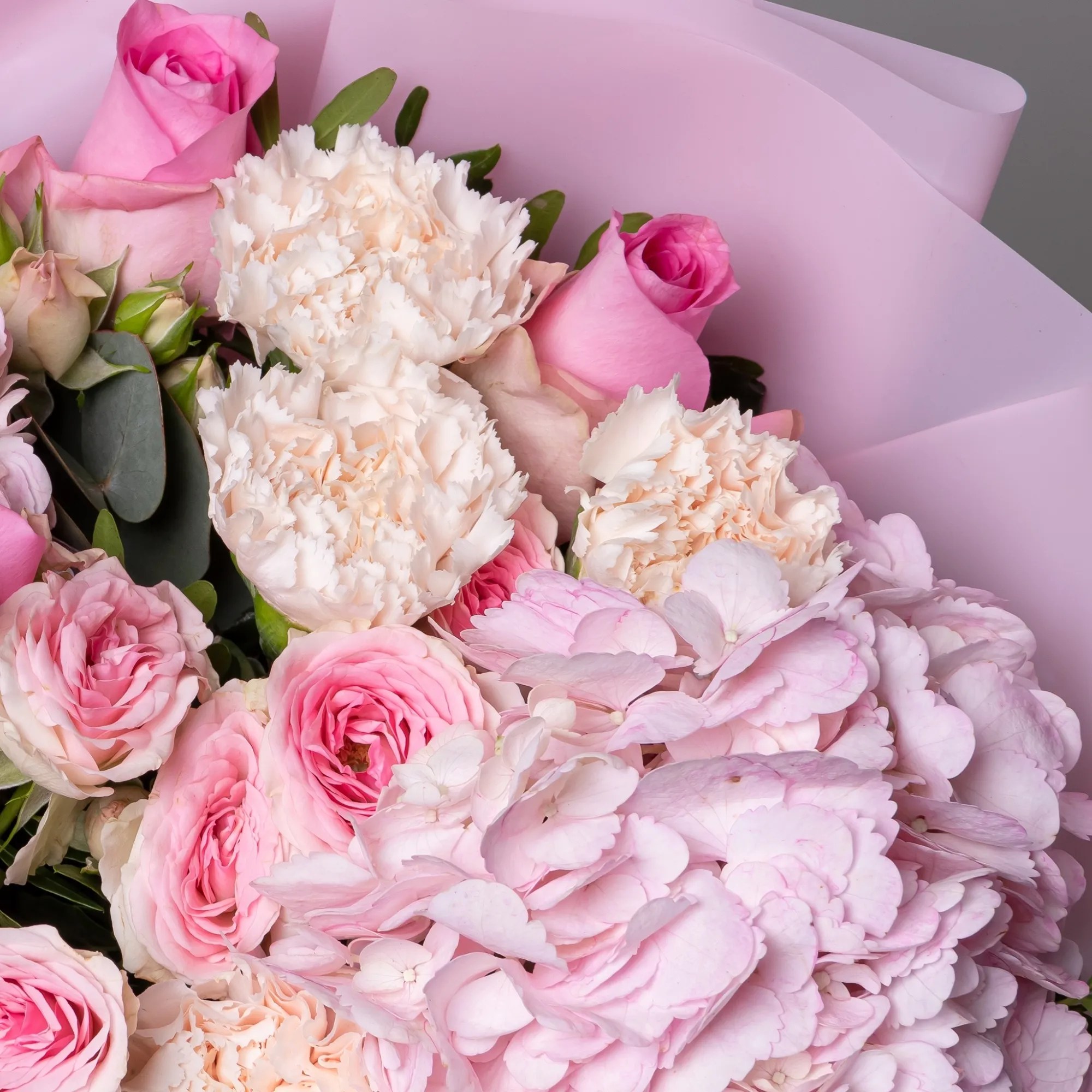 Гвоздика, Гортензия, Роза, Листья фисташки, Листья эвкалипта