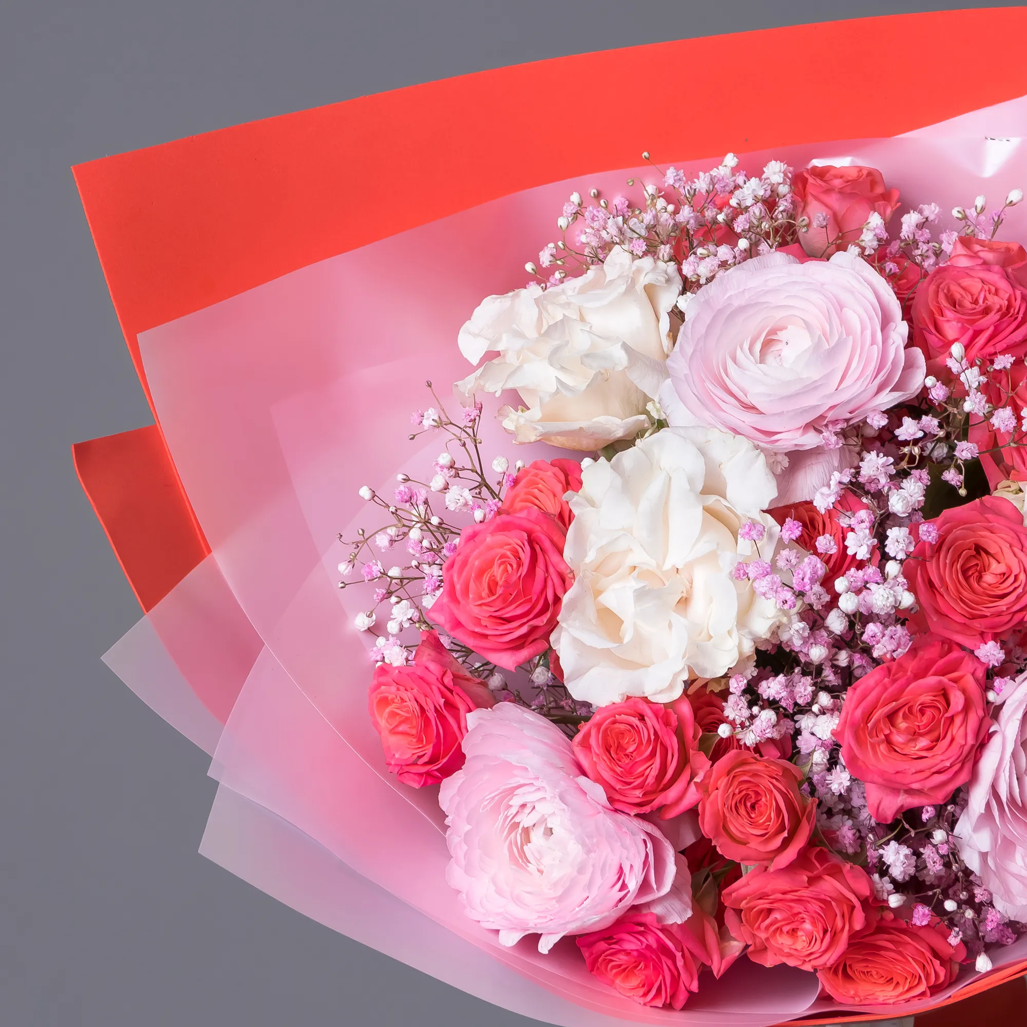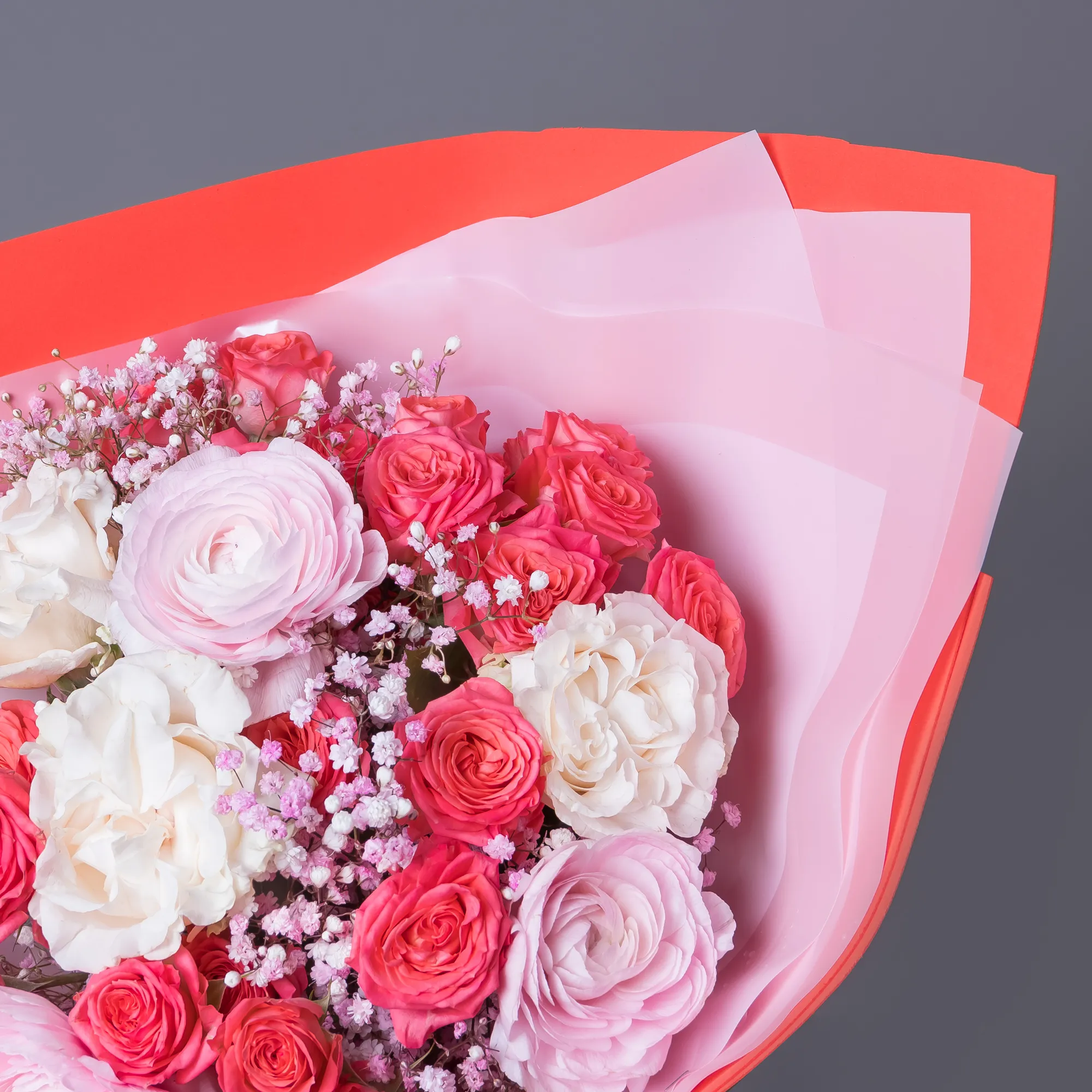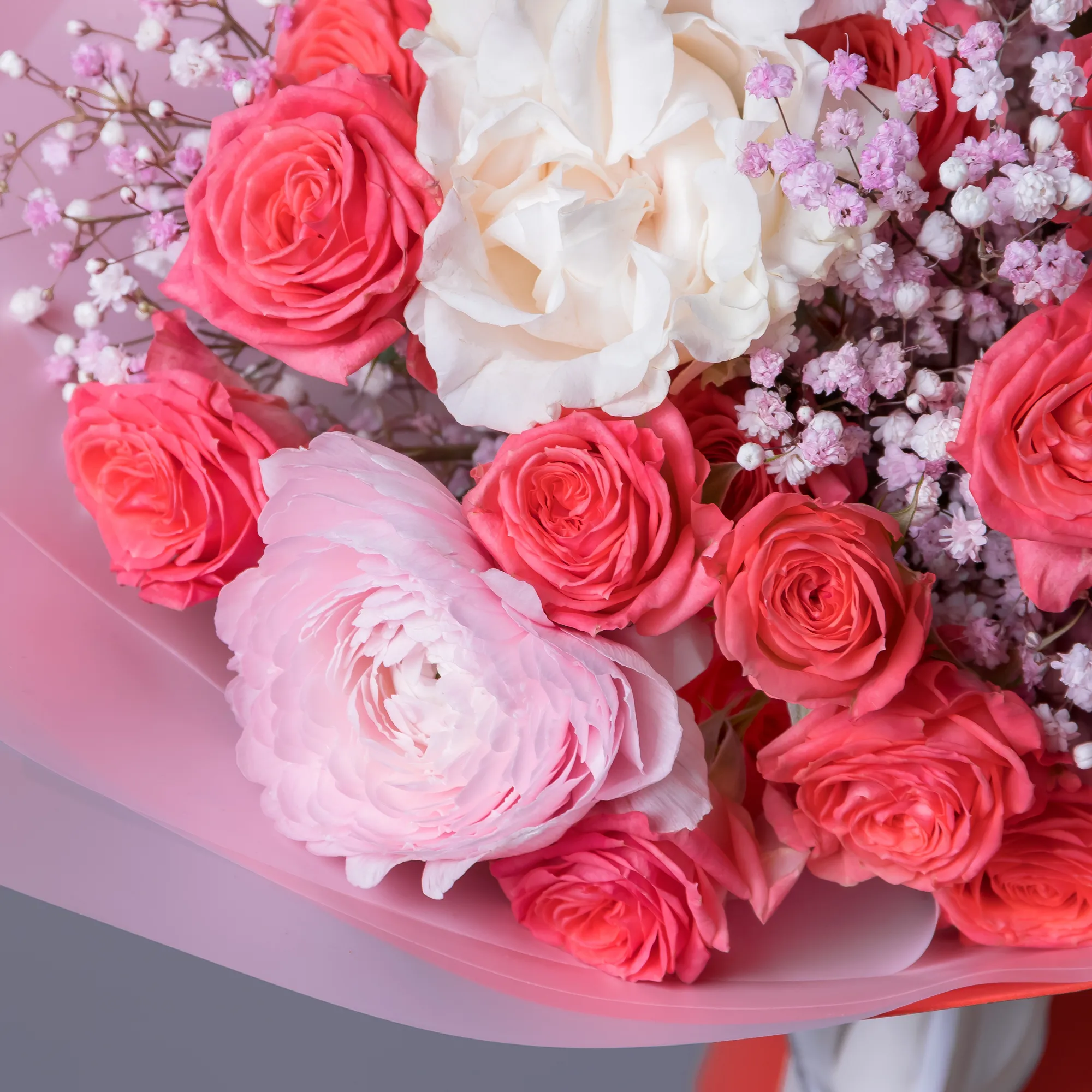 Роза, Ранункулюс, Гипсофила