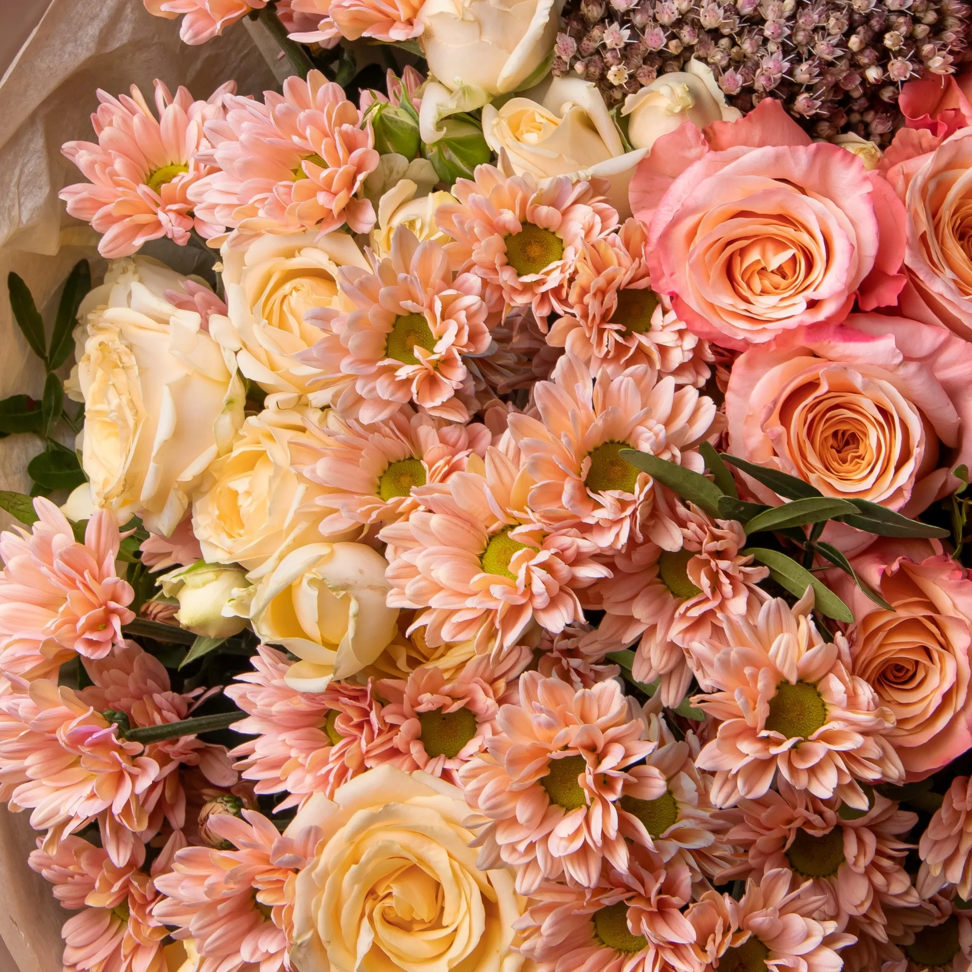 Роза, Хризантема, Листья фисташки