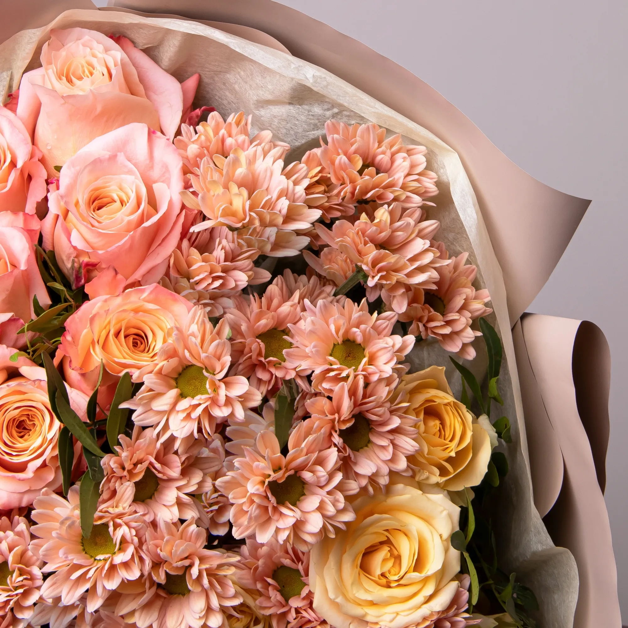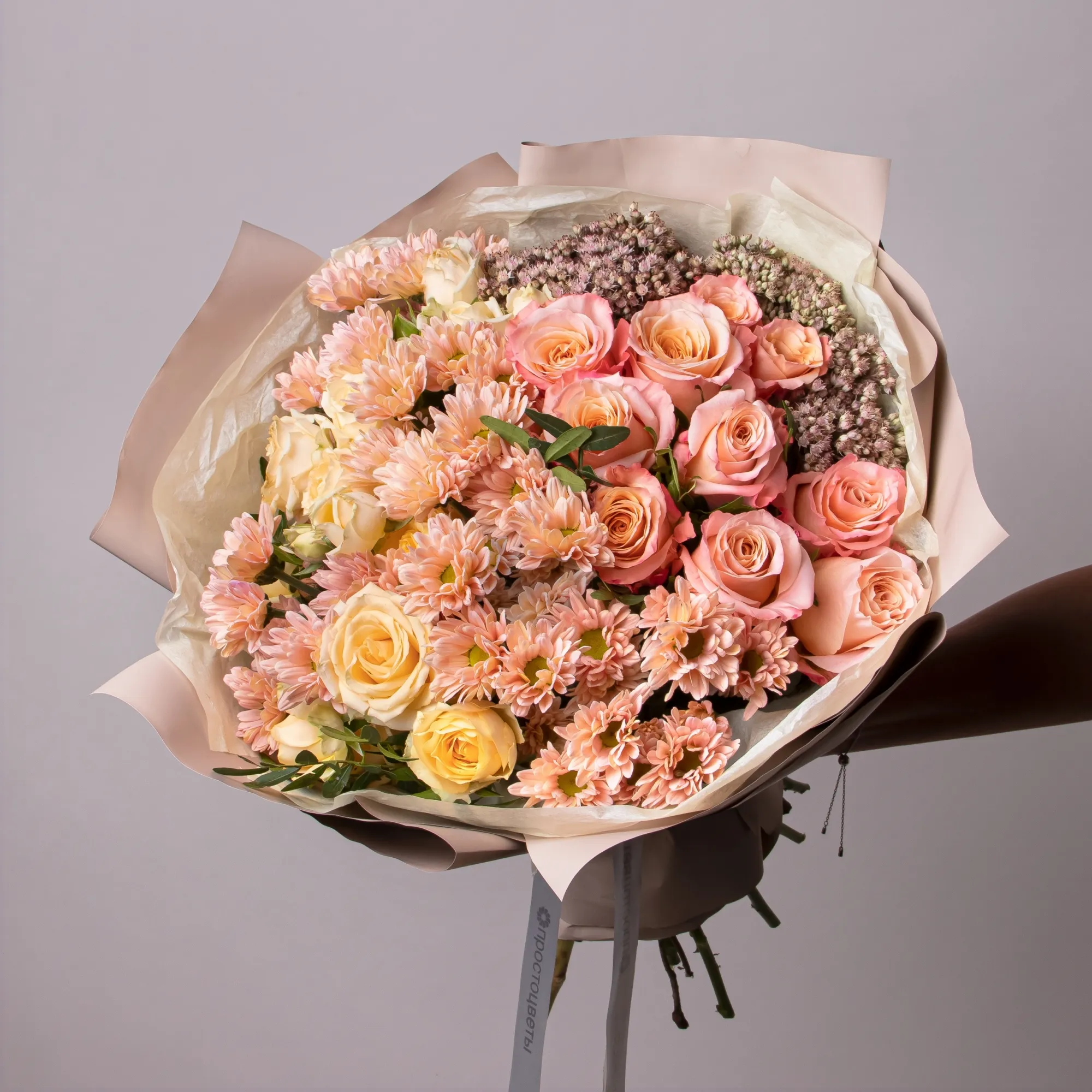 К сожалению, мы не можем гарантировать точную копию букета. Наши цветы могут отличаться от указанных на фотографии, ведь они приезжают к нам из разных уголков мира.