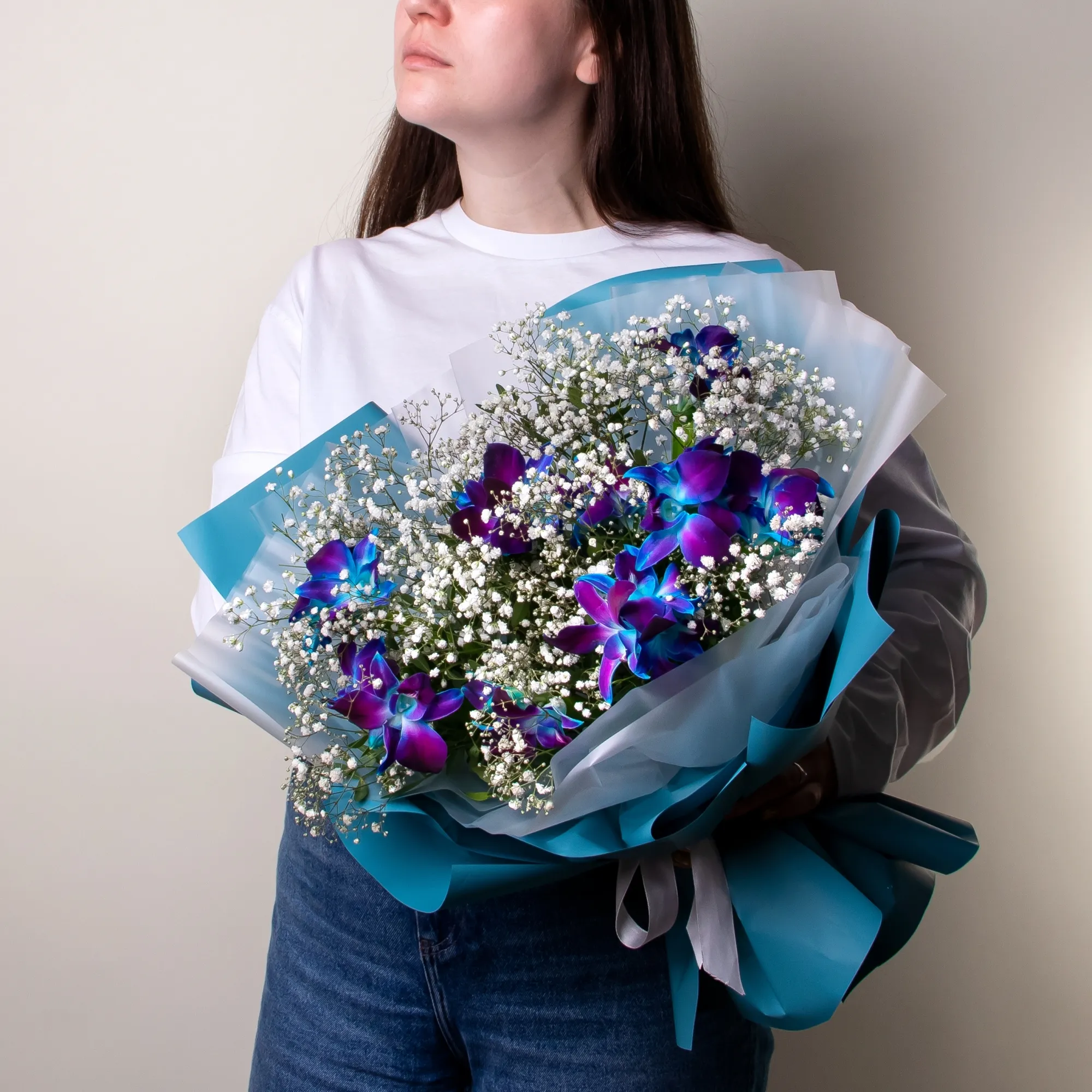 К сожалению, мы не можем гарантировать точную копию букета. Наши цветы могут отличаться от указанных на фотографии, ведь они приезжают к нам из разных уголков мира.