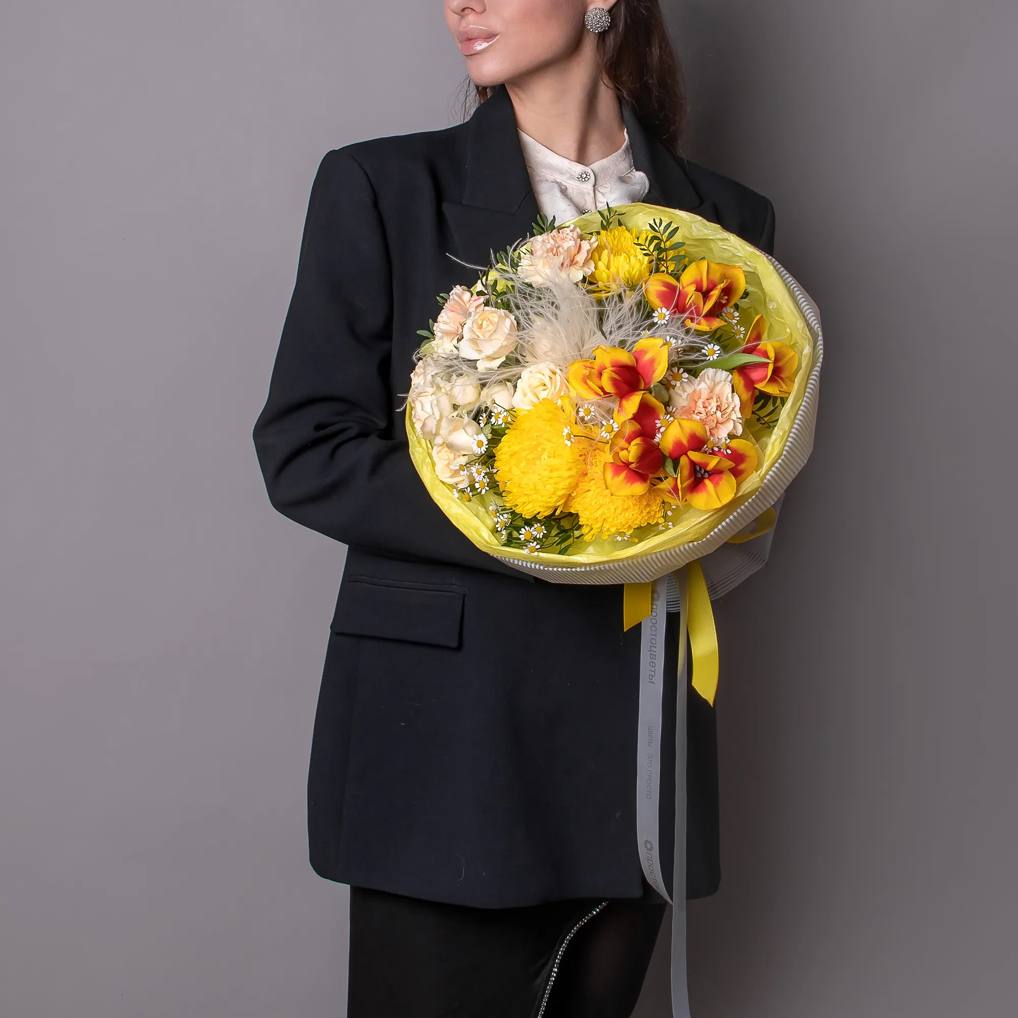 В свою очередь, мы гарантируем соблюдение стиля и основного состава букета, в этом можете быть уверенными.