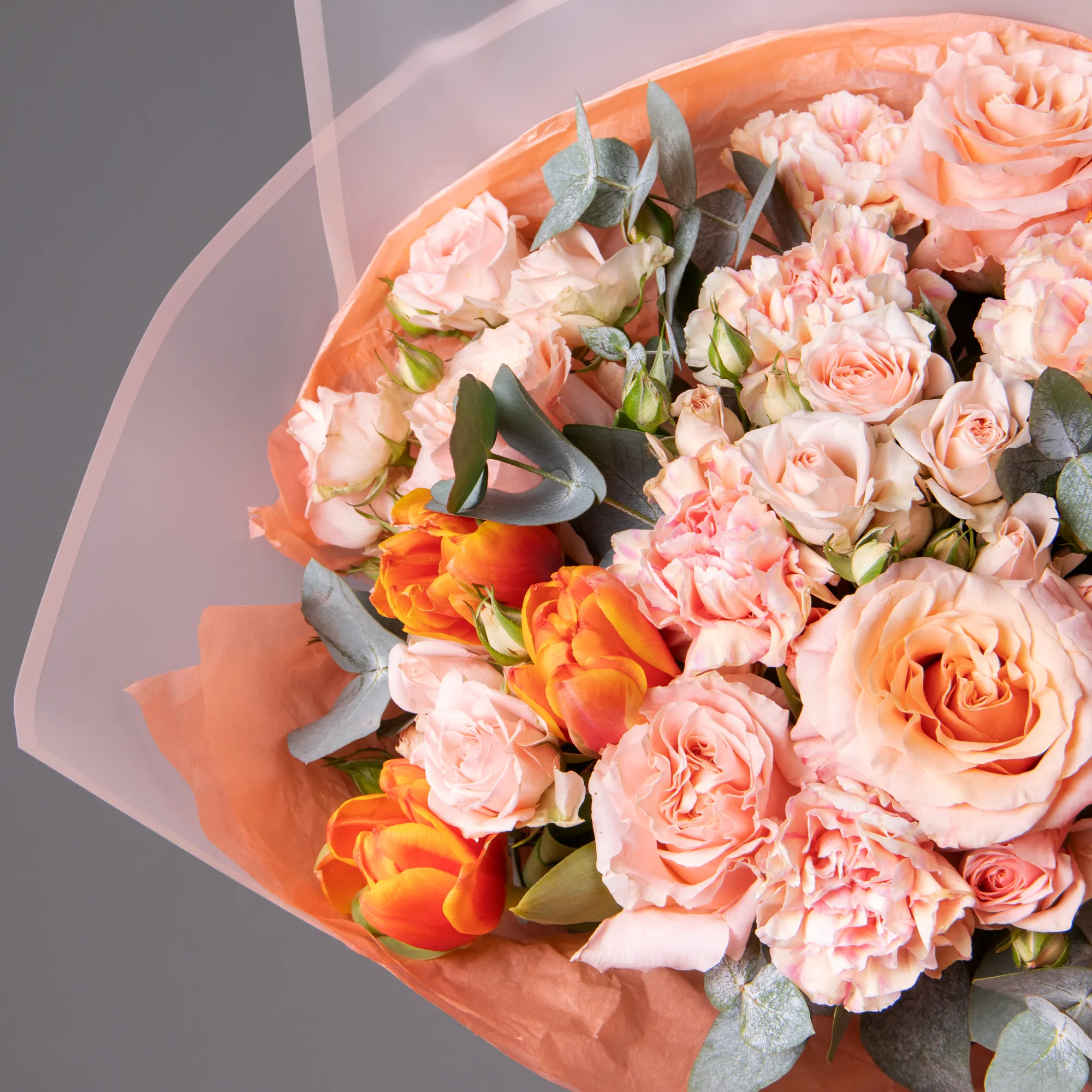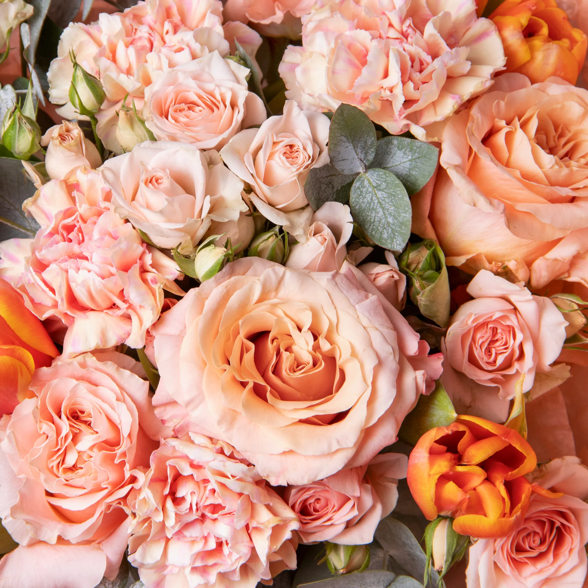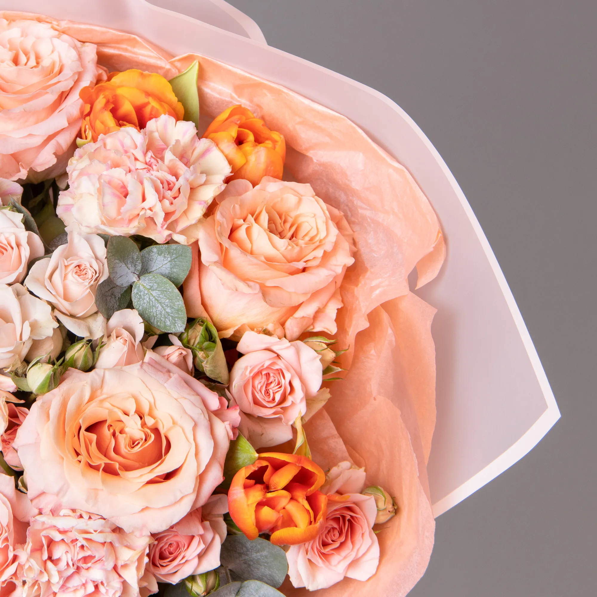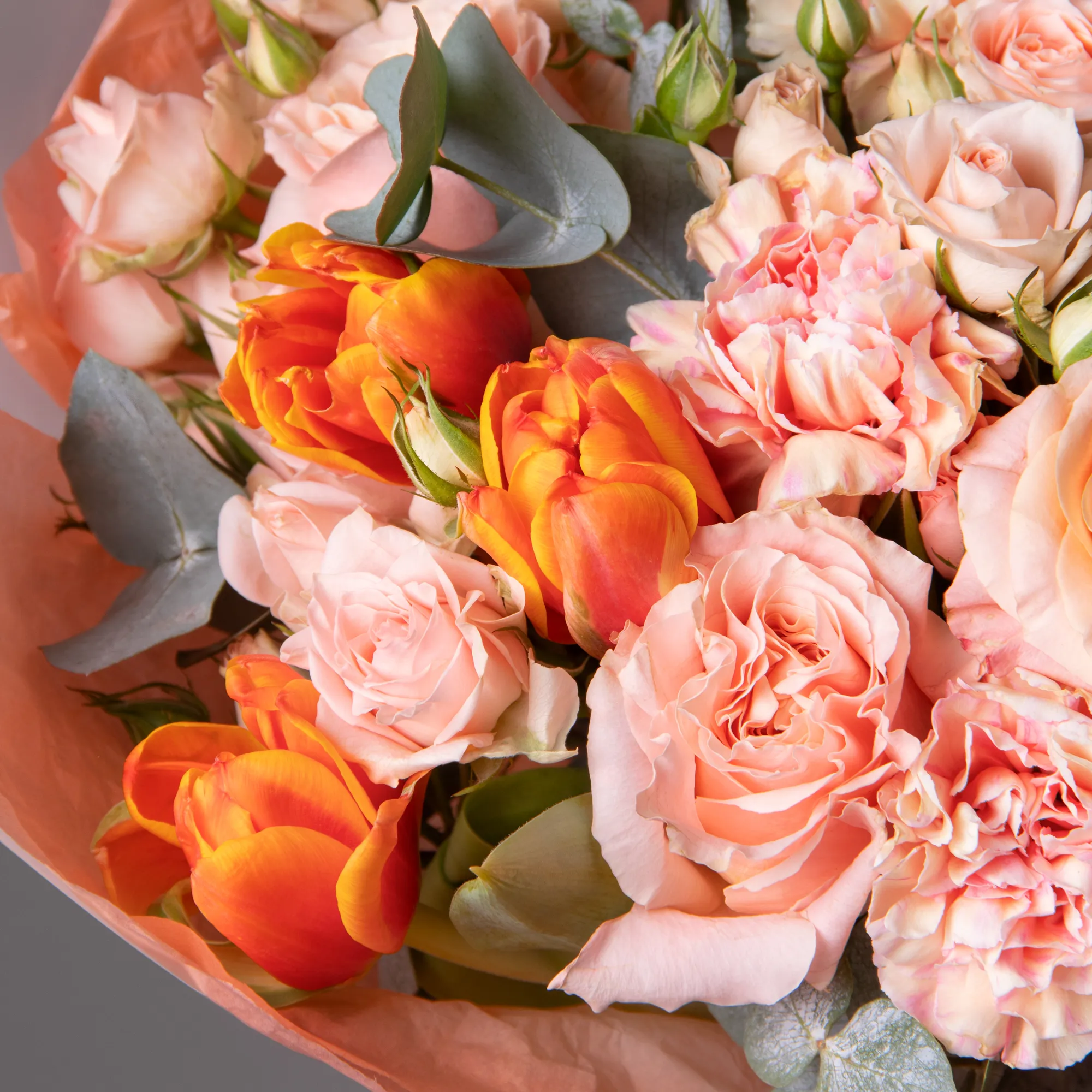 Гвоздика, Роза, Листья эвкалипта