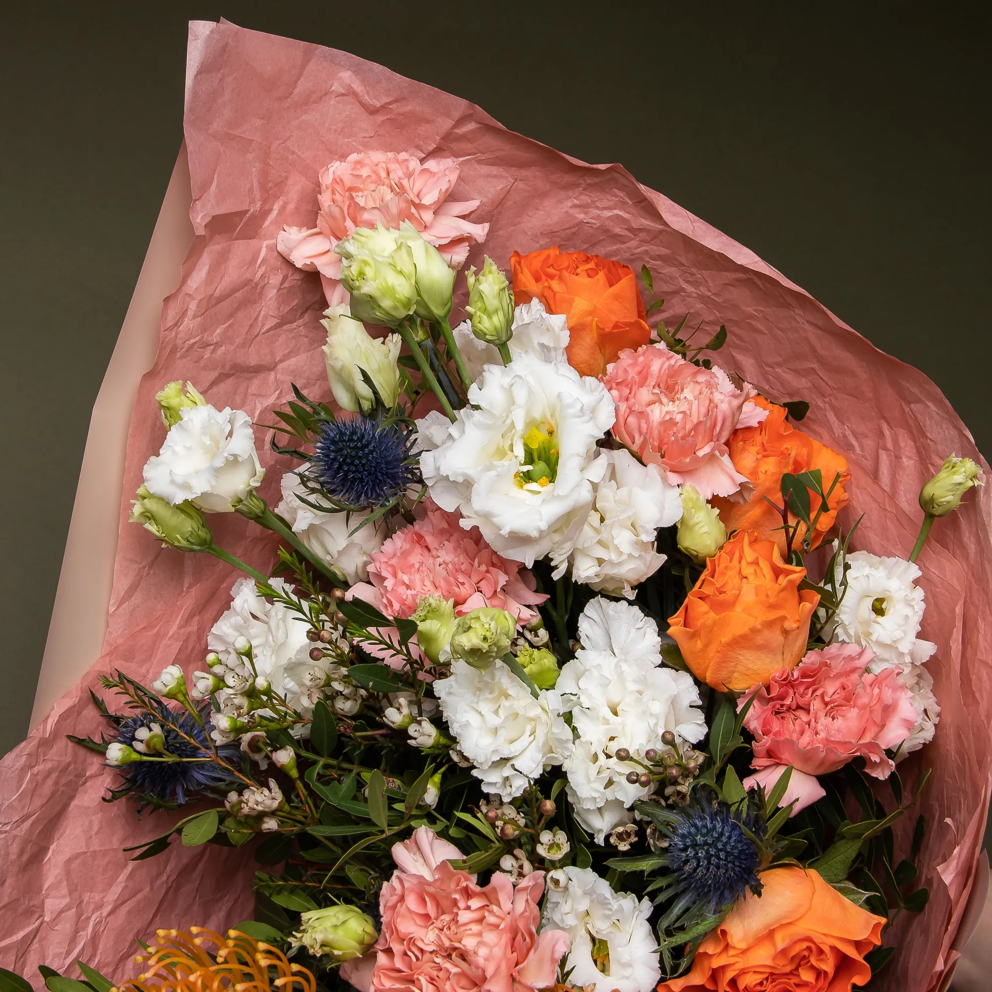 К сожалению, мы не можем гарантировать точную копию букета. Наши цветы могут отличаться от указанных на фотографии, ведь они приезжают к нам из разных уголков мира.