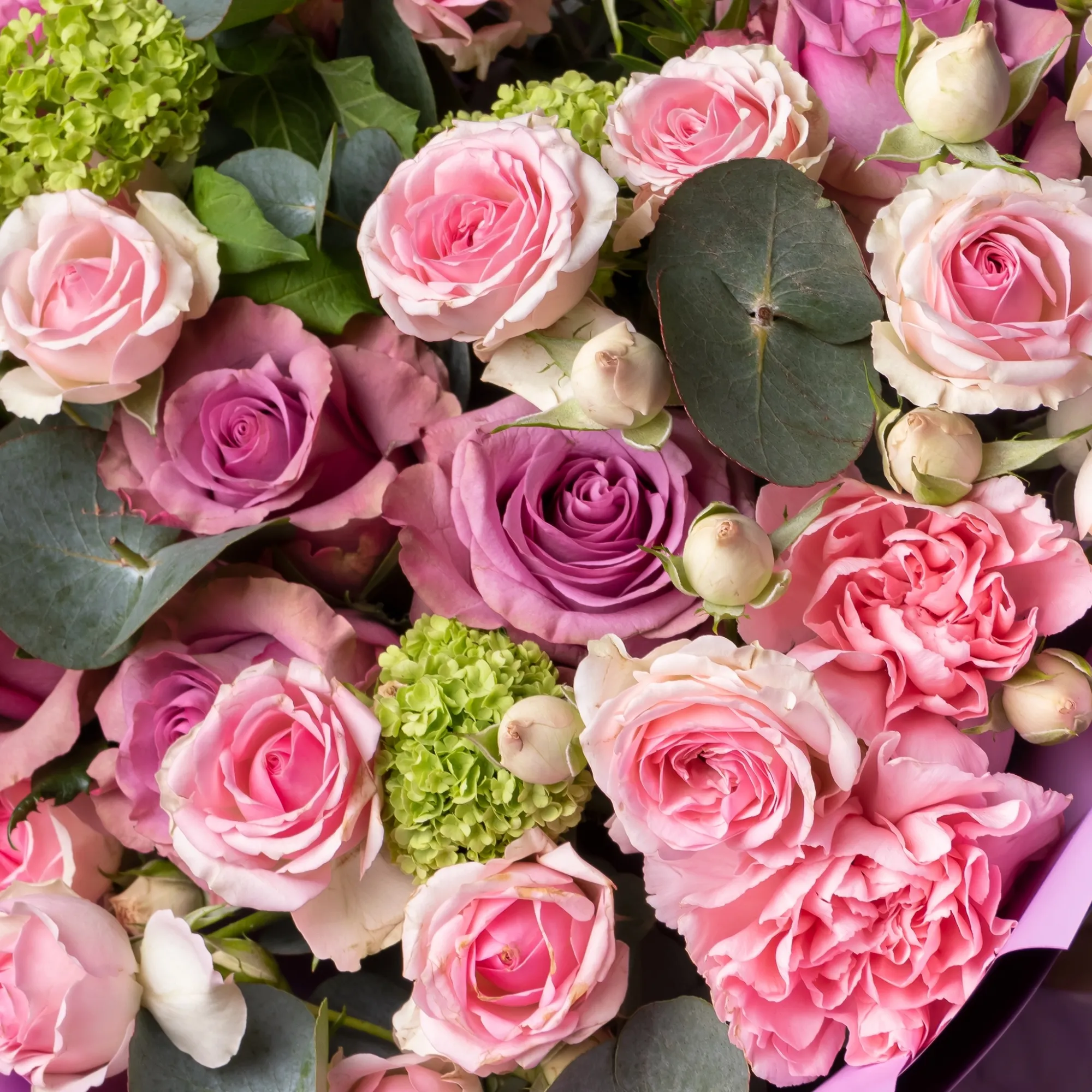 Гвоздика, Роза, Листья фисташки, Листья эвкалипта