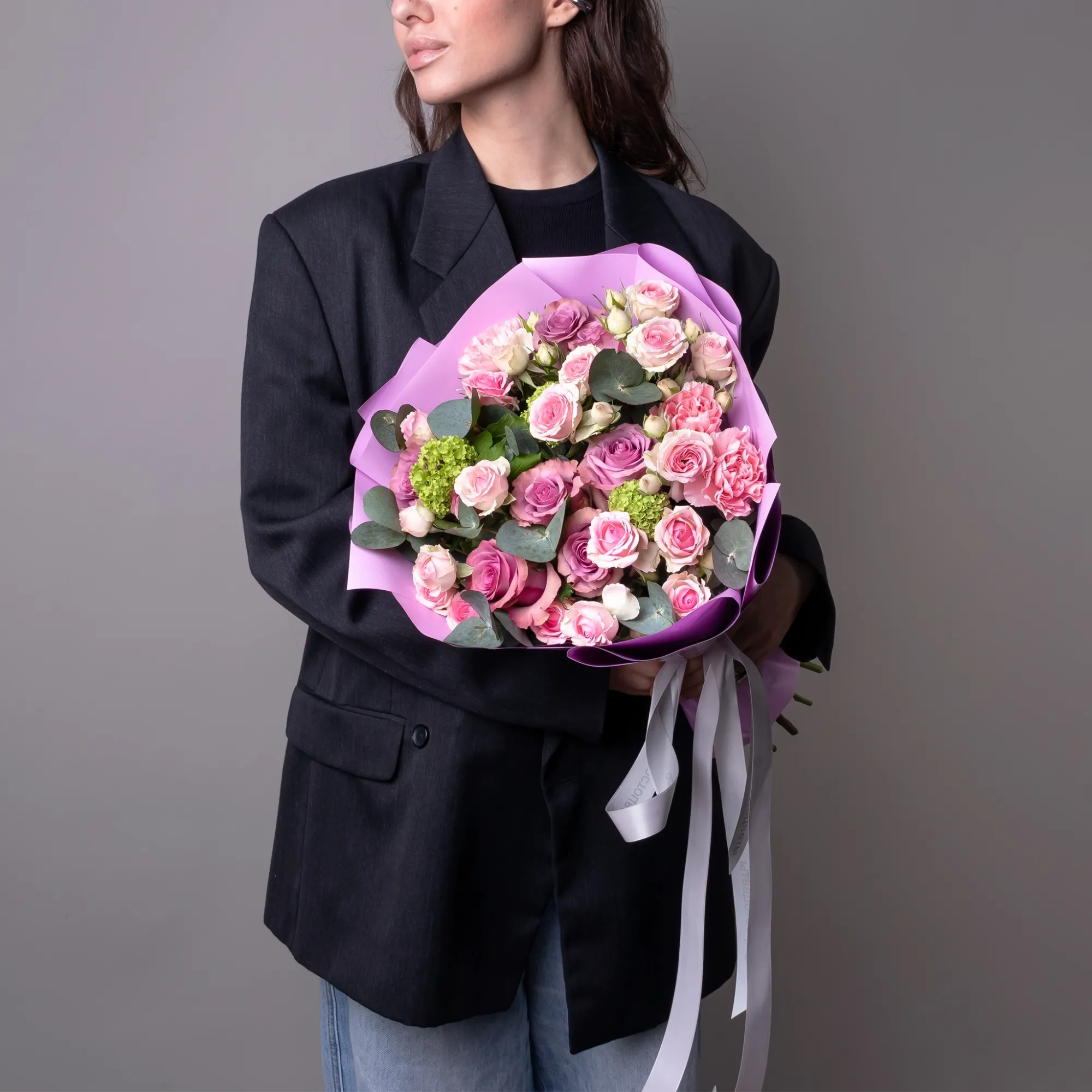 К сожалению, мы не можем гарантировать точную копию букета. Наши цветы могут отличаться от указанных на фотографии, ведь они приезжают к нам из разных уголков мира.
