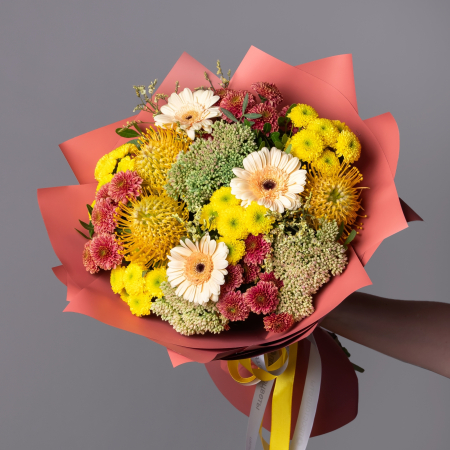 В свою очередь, мы гарантируем соблюдение стиля и основного состава букета, в этом можете быть уверенными.