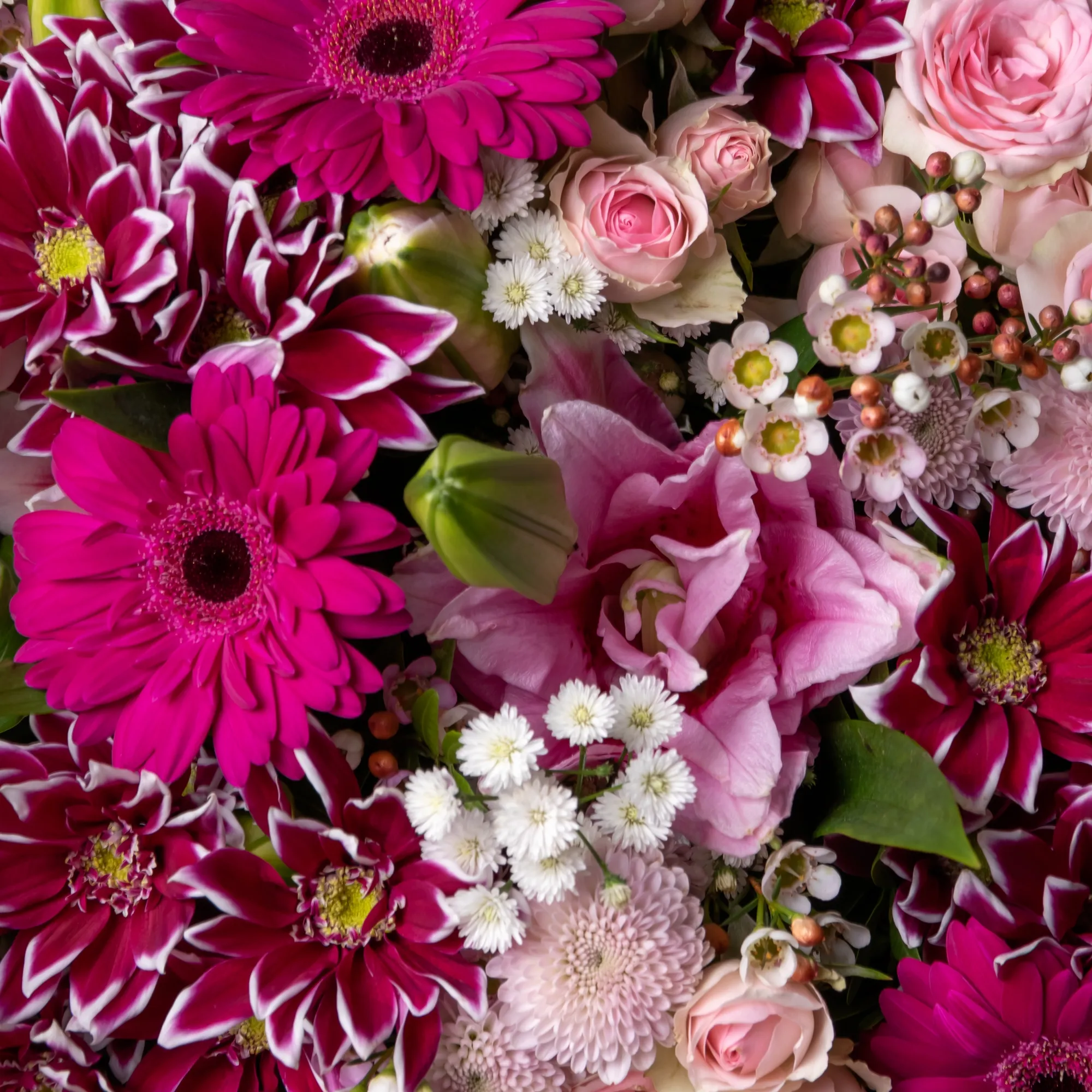 К сожалению, мы не можем гарантировать точную копию букета. Наши цветы могут отличаться от указанных на фотографии, ведь они приезжают к нам из разных уголков мира.
