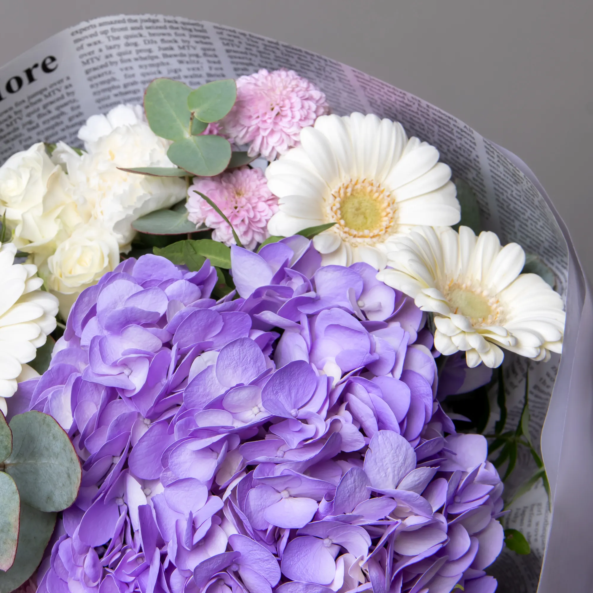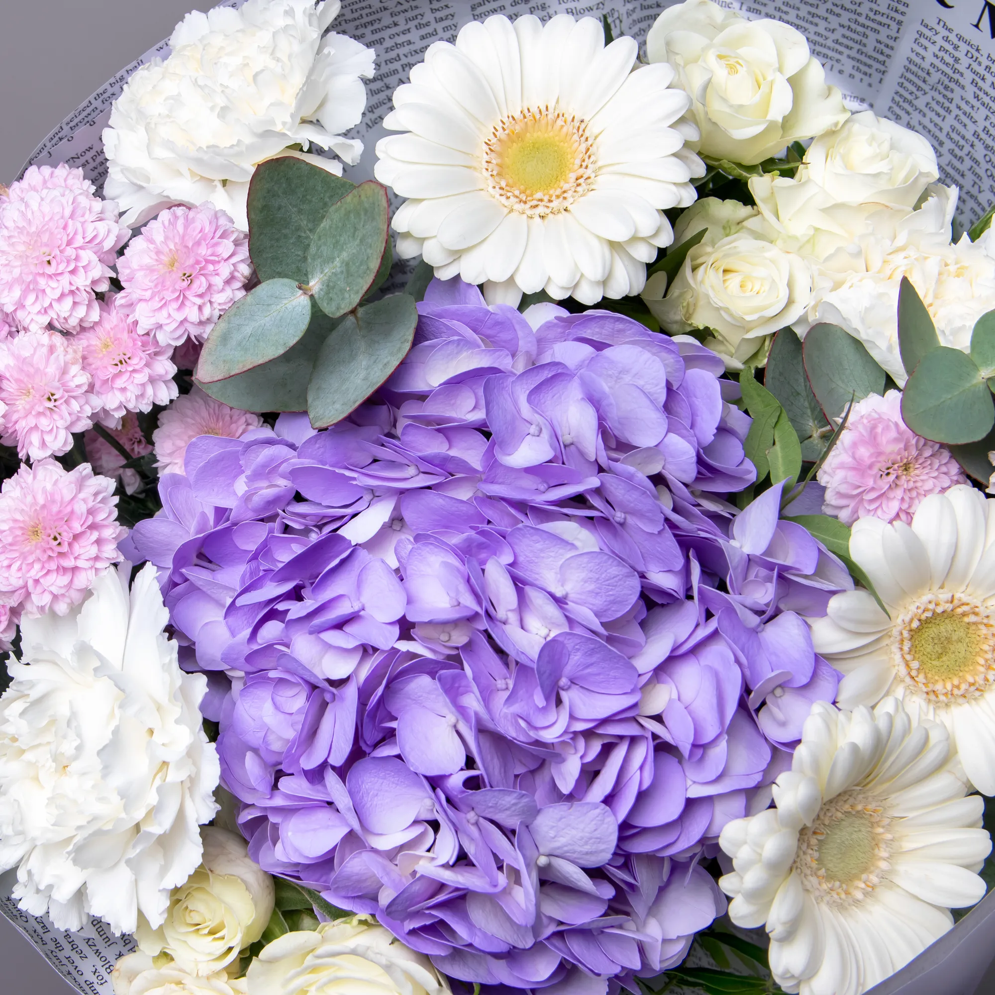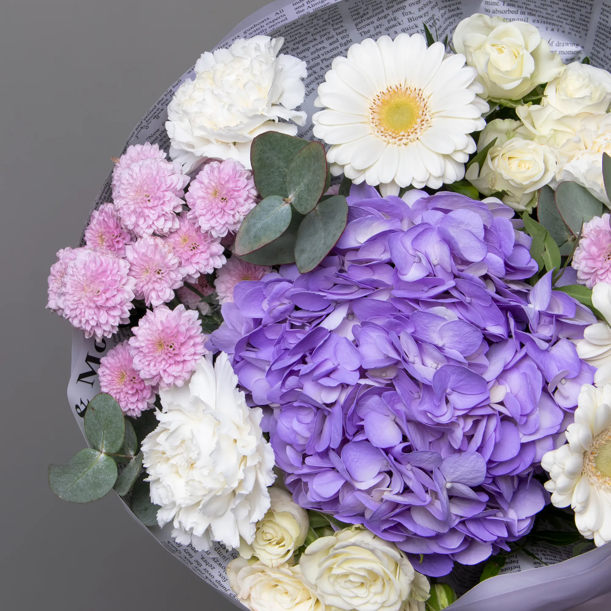 Гвоздика, Гортензия, Роза, Листья фисташки, Листья эвкалипта