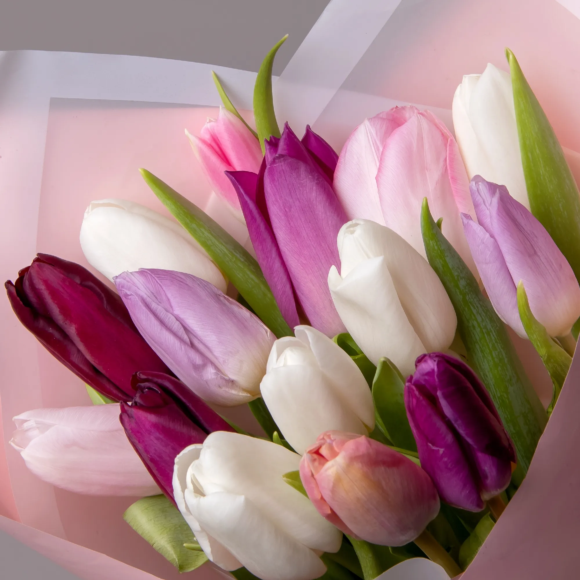 Букет Тюльпан, 15 шт, Пастель Микс