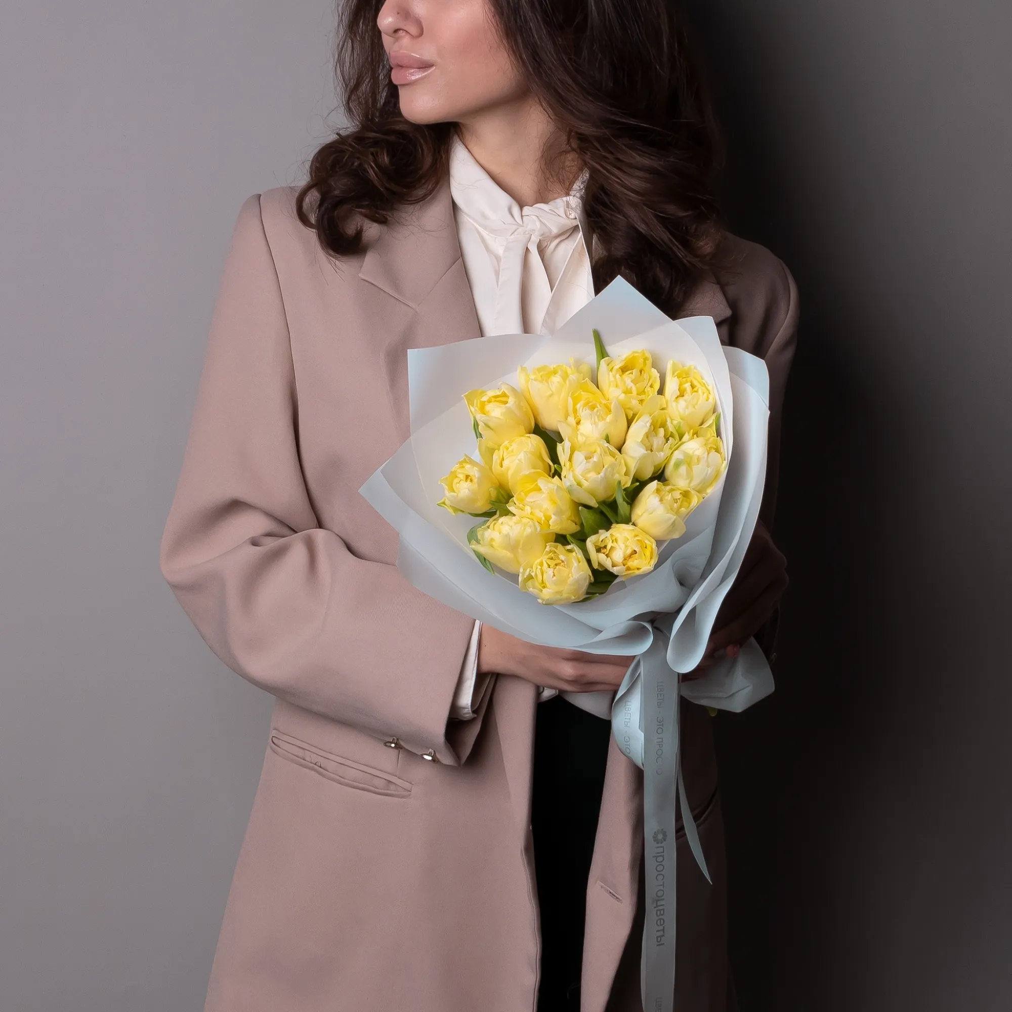 Монобукет из 15 хрустящих пионовидных тюльпанов.