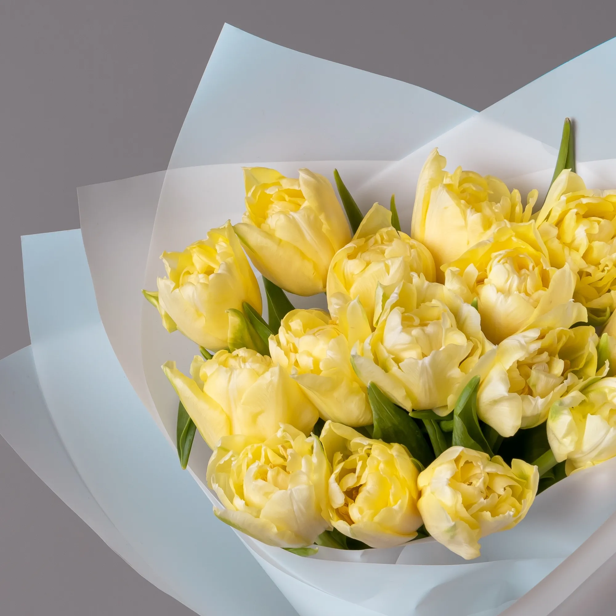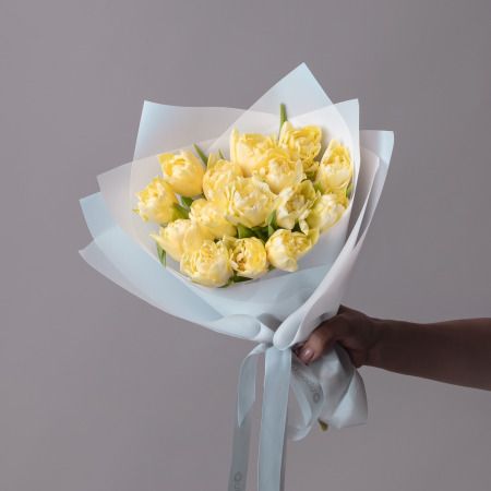 Букет Тюльпан пионовидный, 15 шт, Лимонный