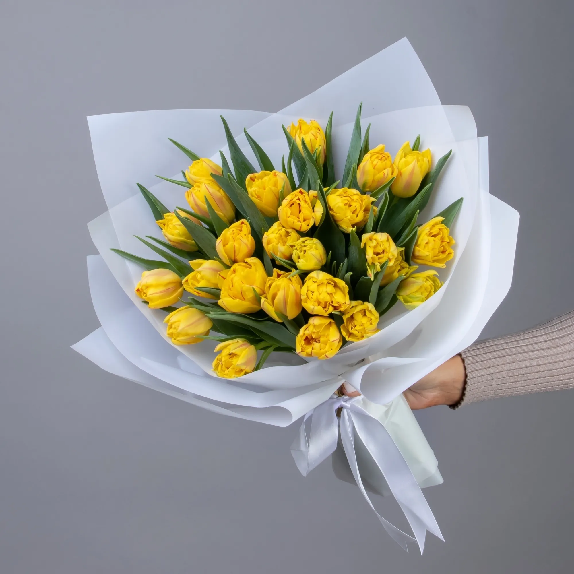 Букет Тюльпан пионовидный, 25 шт, Желтый