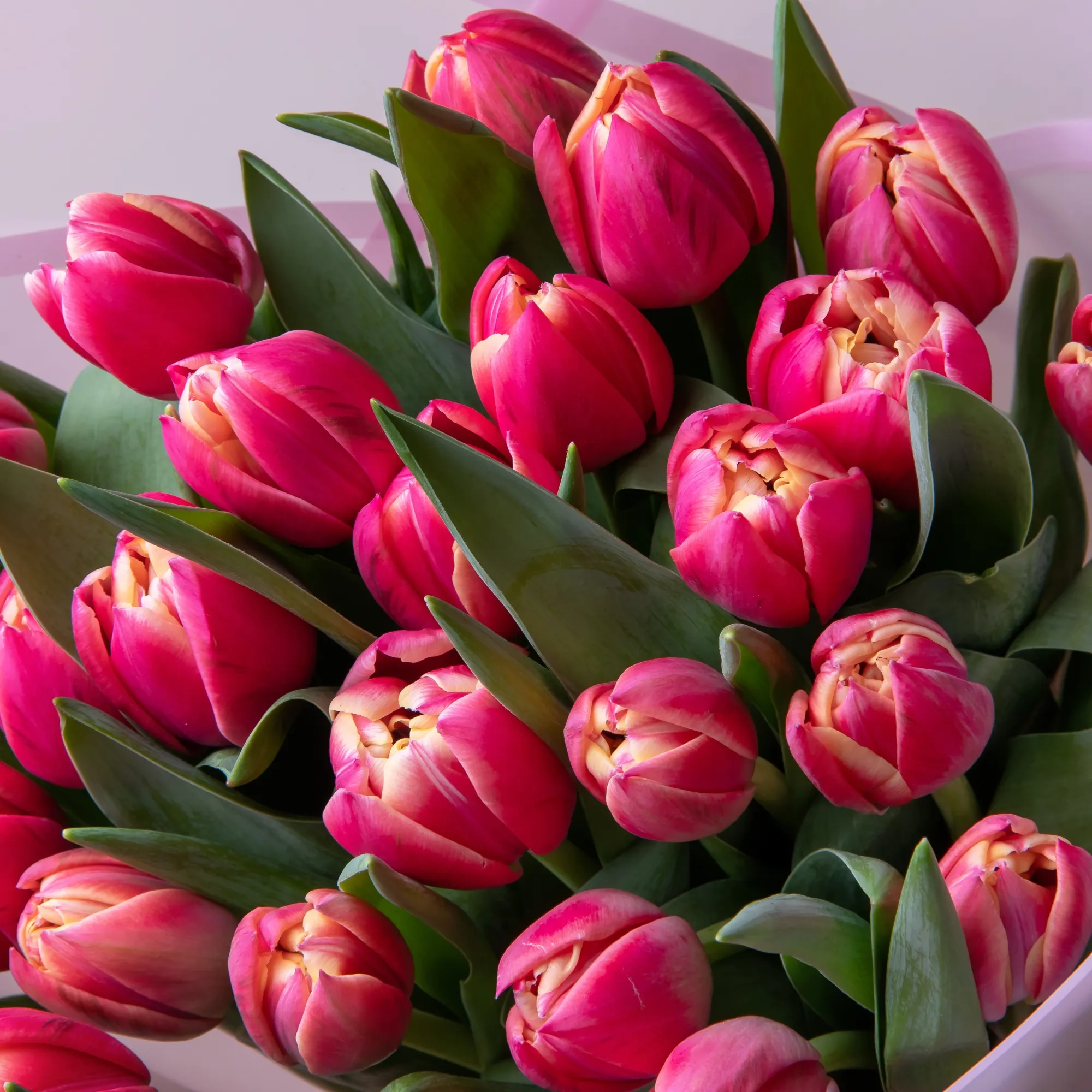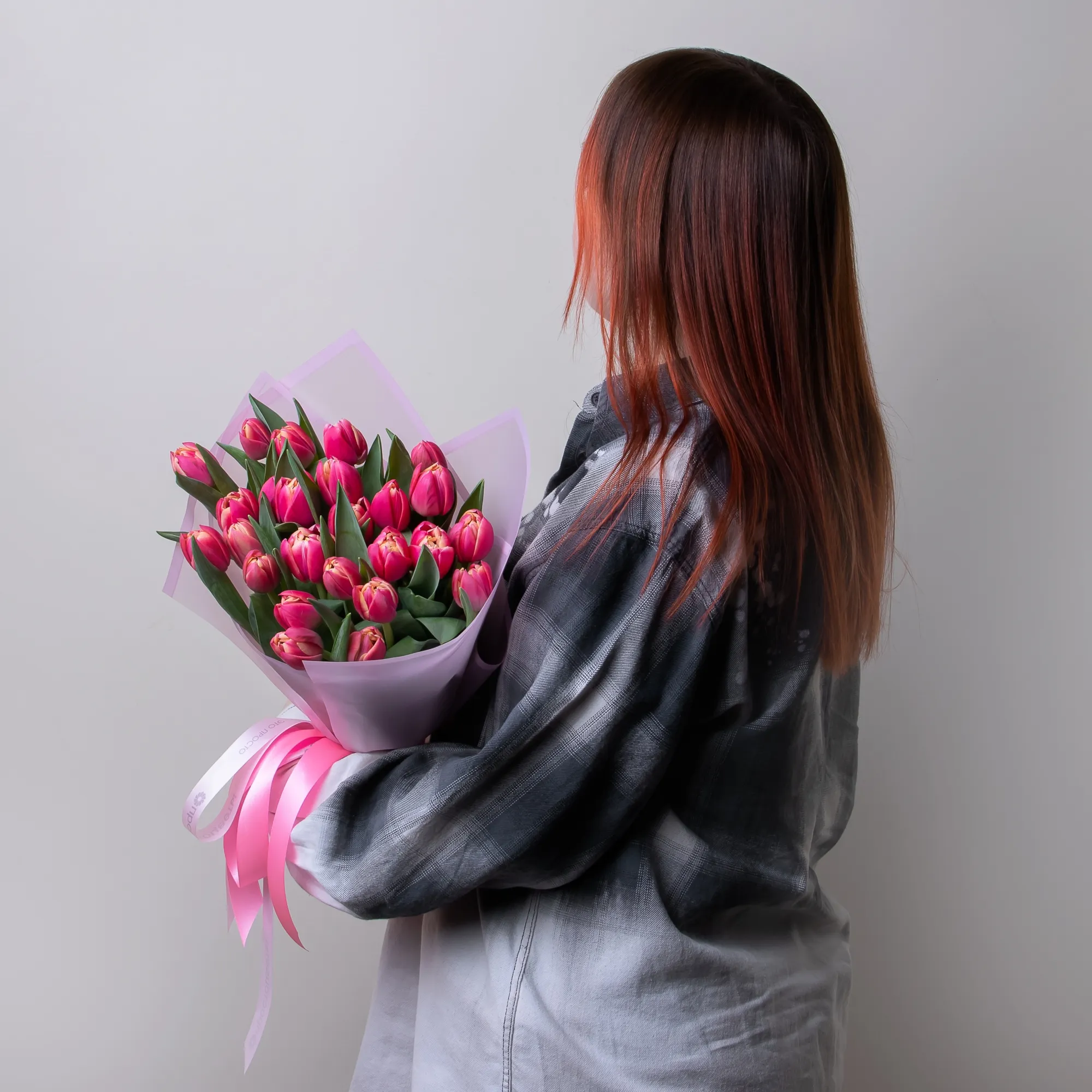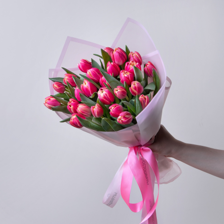 Букет Тюльпан пионовидный, 25 шт, Темно-Розовый