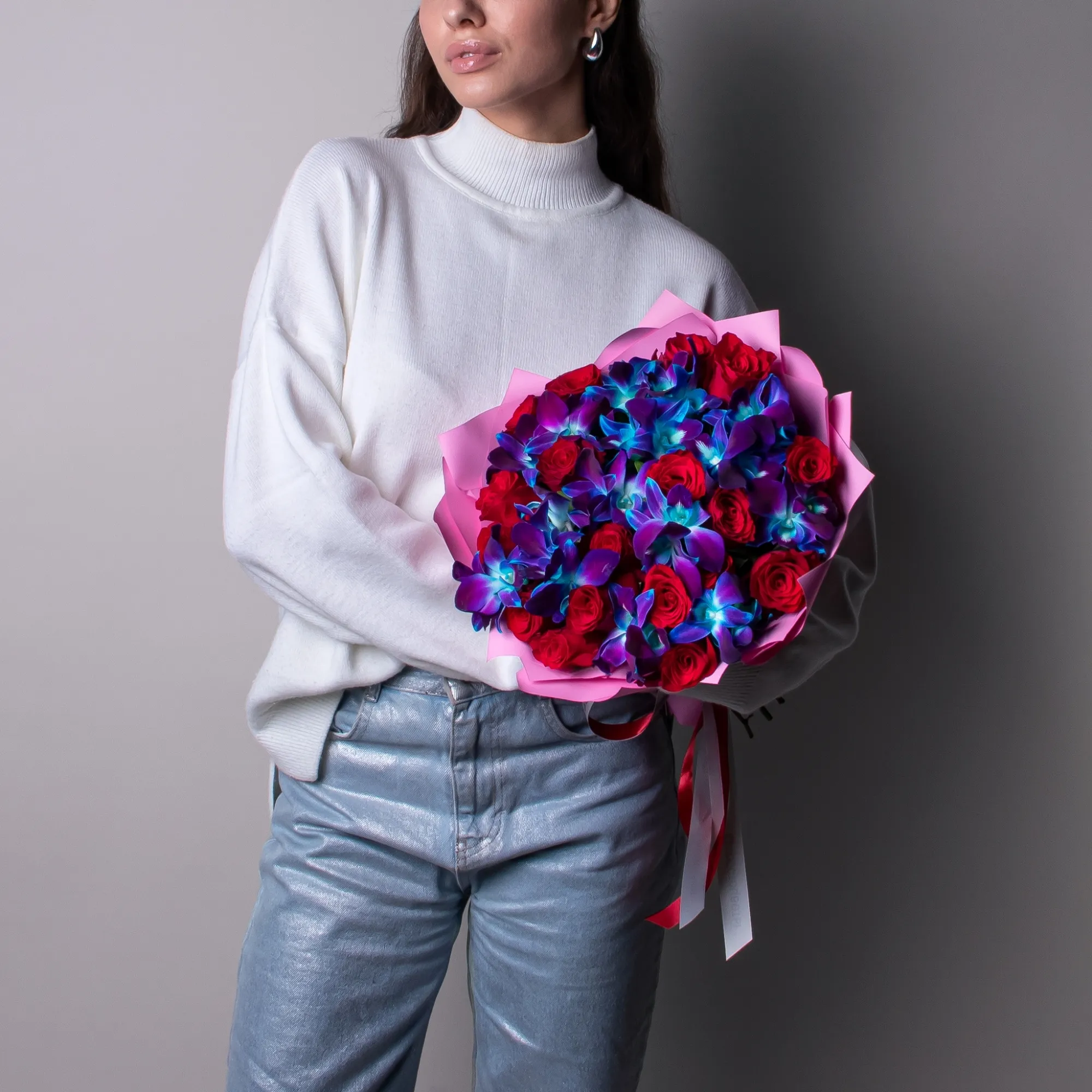 К сожалению, мы не можем гарантировать точную копию букета. Наши цветы могут отличаться от указанных на фотографии, ведь они приезжают к нам из разных уголков мира.