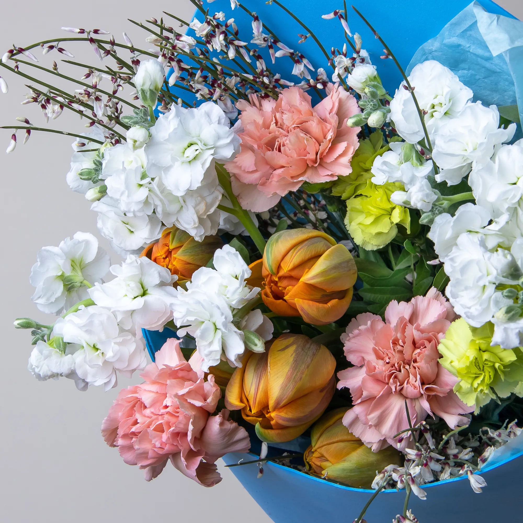 Гвоздика-3, Тюльпан-5, Маттиола-2, Гвоздика кустовая-2, Гениста-1, Листья фисташки-4