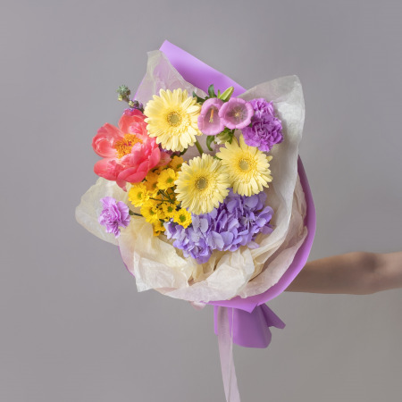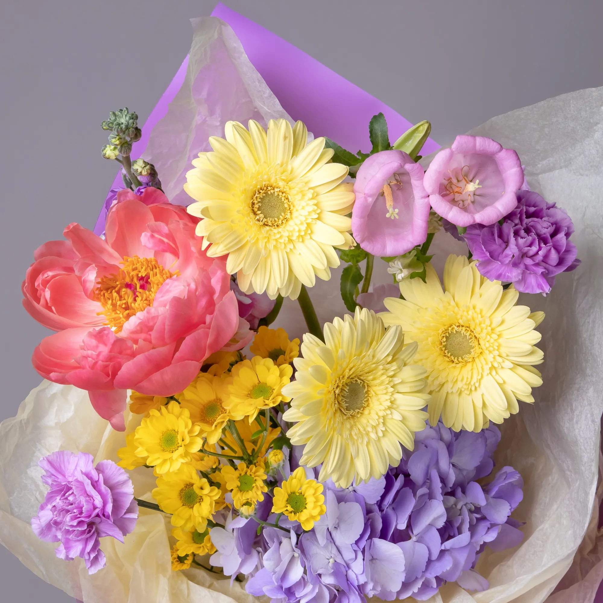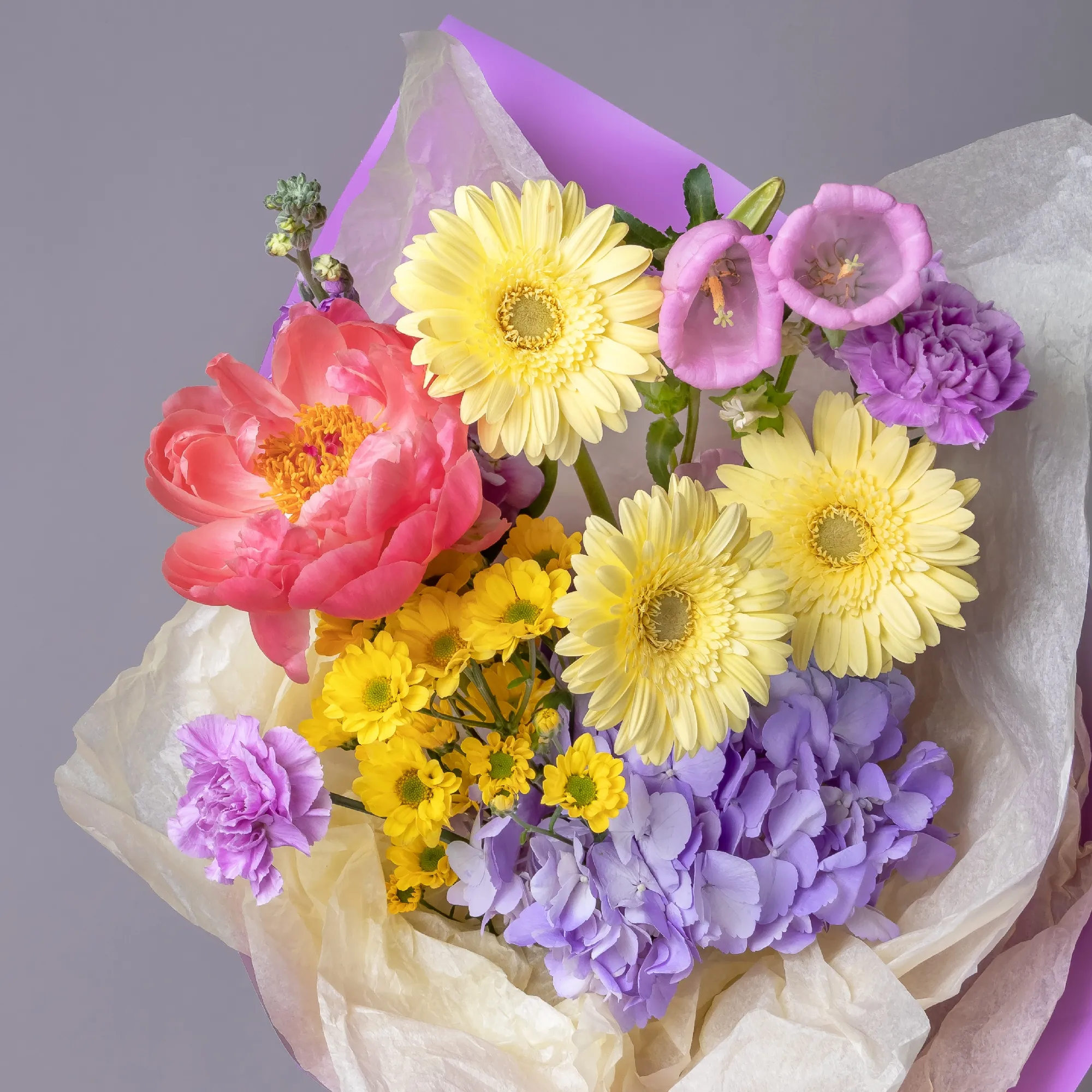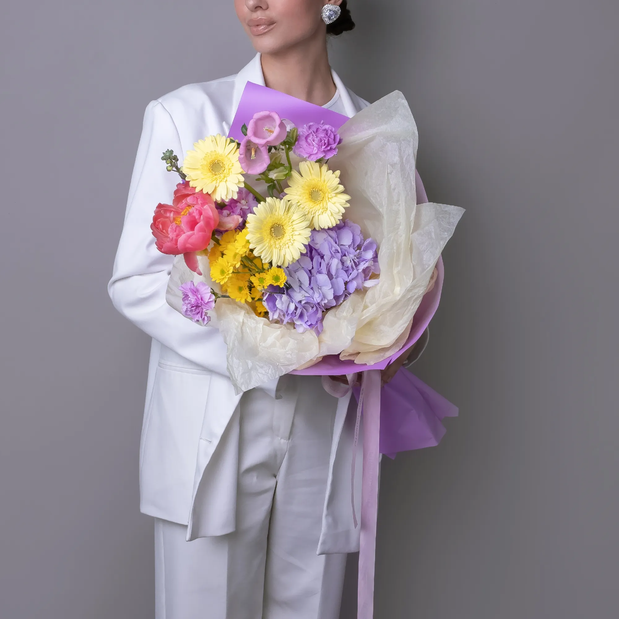 Этот букет с разнообразной цветовой палитрой (от кораллового до лавандового) прекрасно подойдет для следующих случаев: