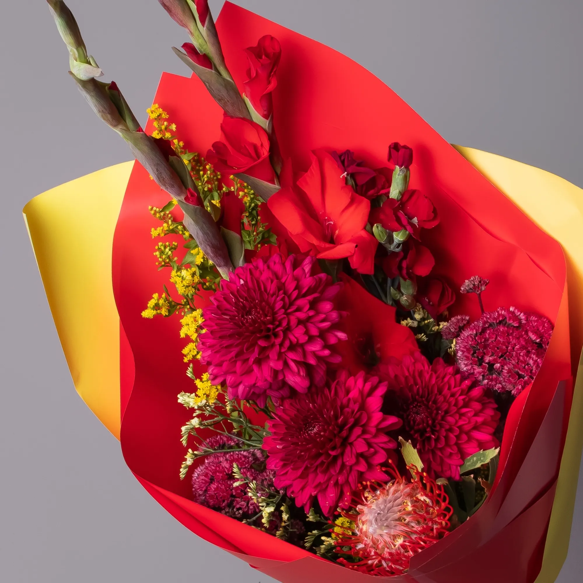 Гладиолус, Гвоздика, Хризантема, Листья фисташки