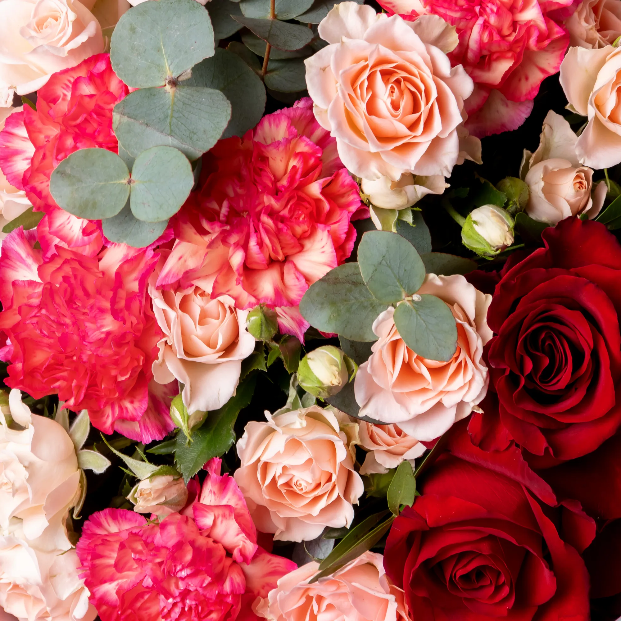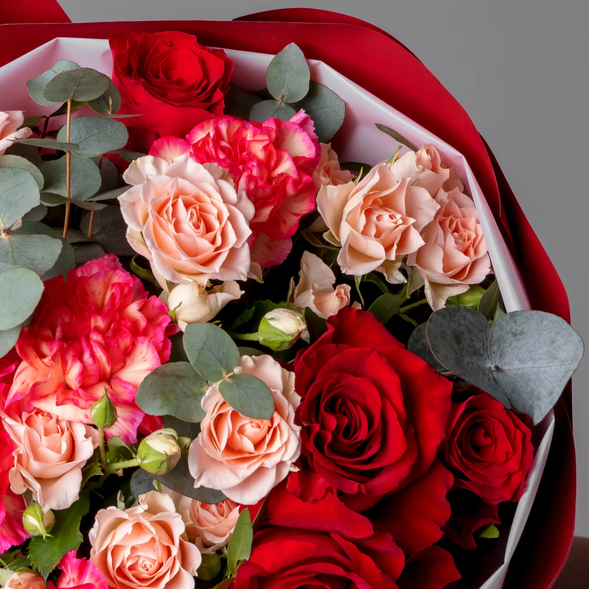 Гвоздика, Роза, Листья фисташки, Листья эвкалипта