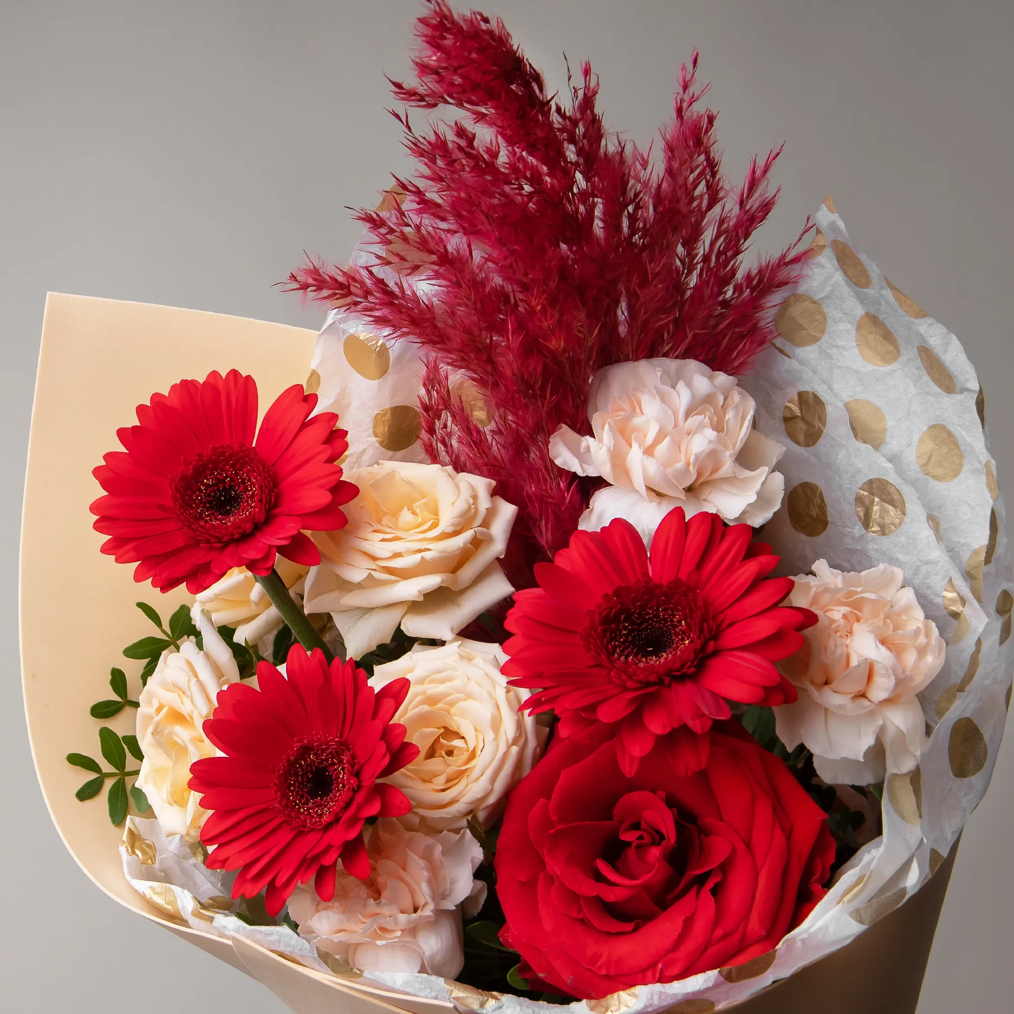 Гвоздика-3, Роза-1, Гермини-3, Роза кустовая-1, Листья фисташки-3