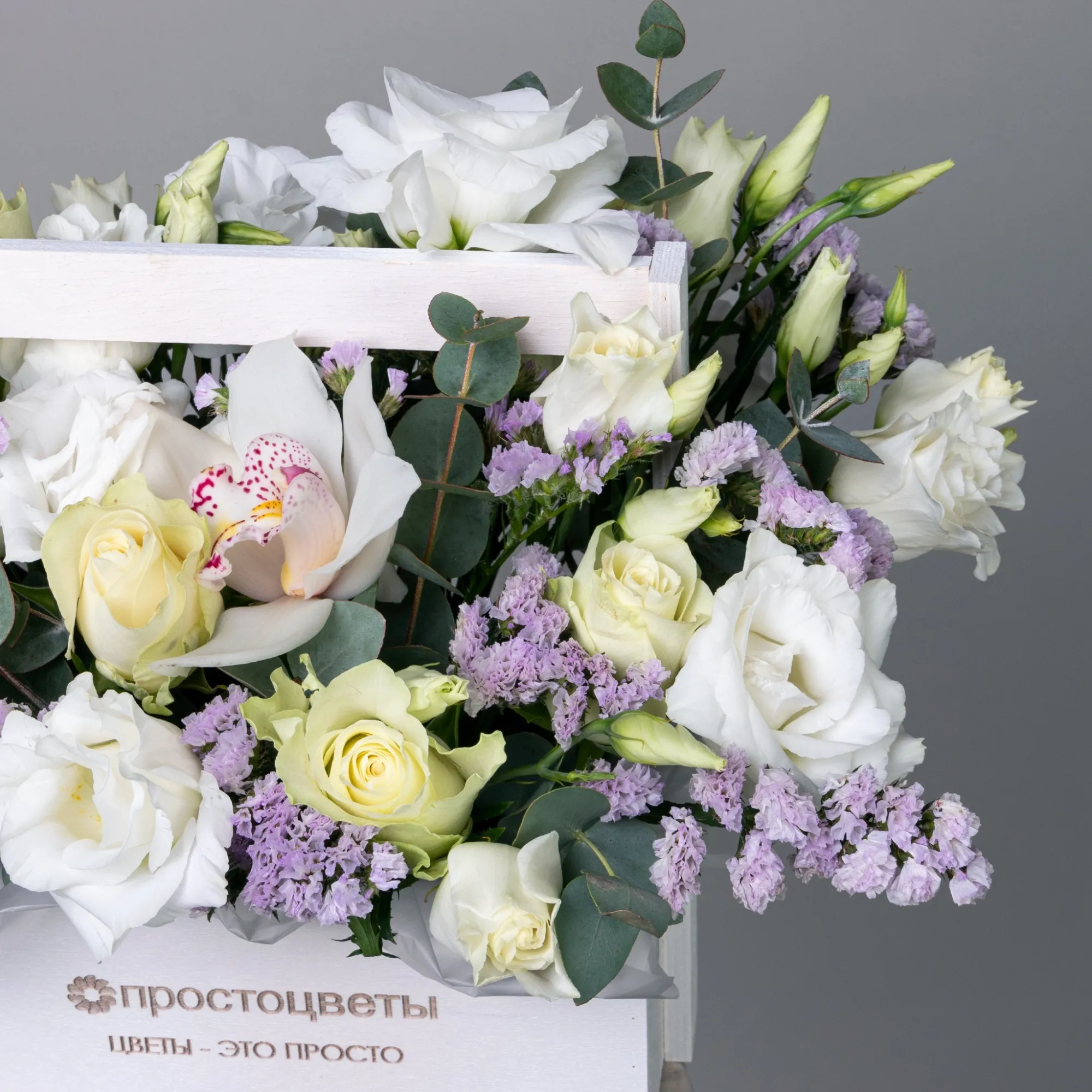Орхидея-3, Роза-5, Эустома-4, Листья эвкалипта-5