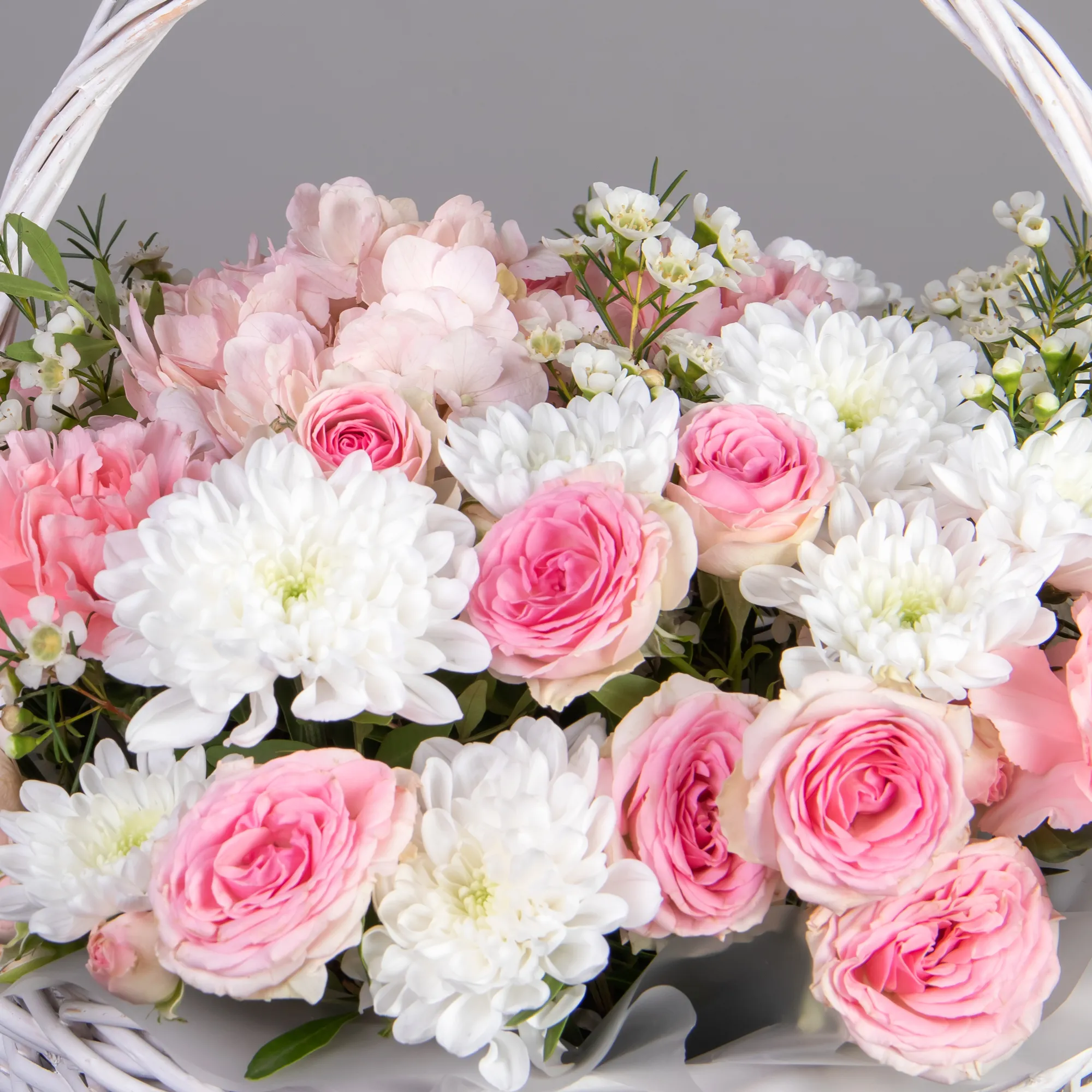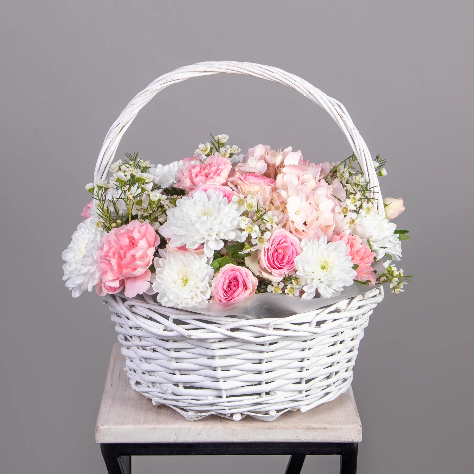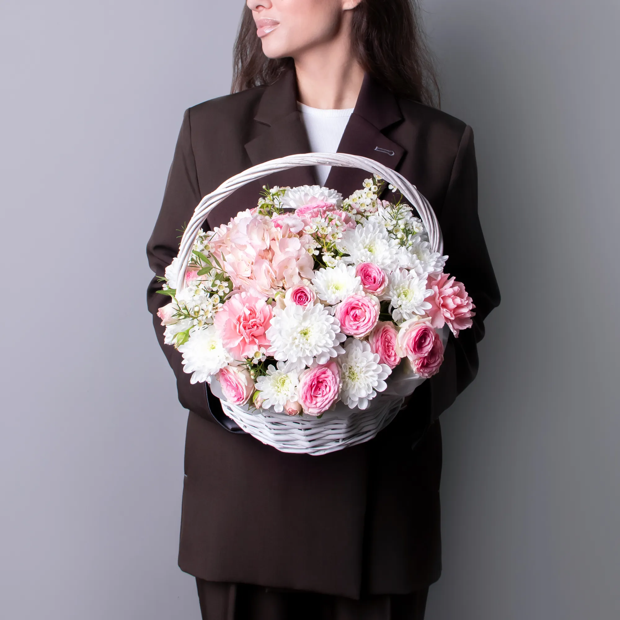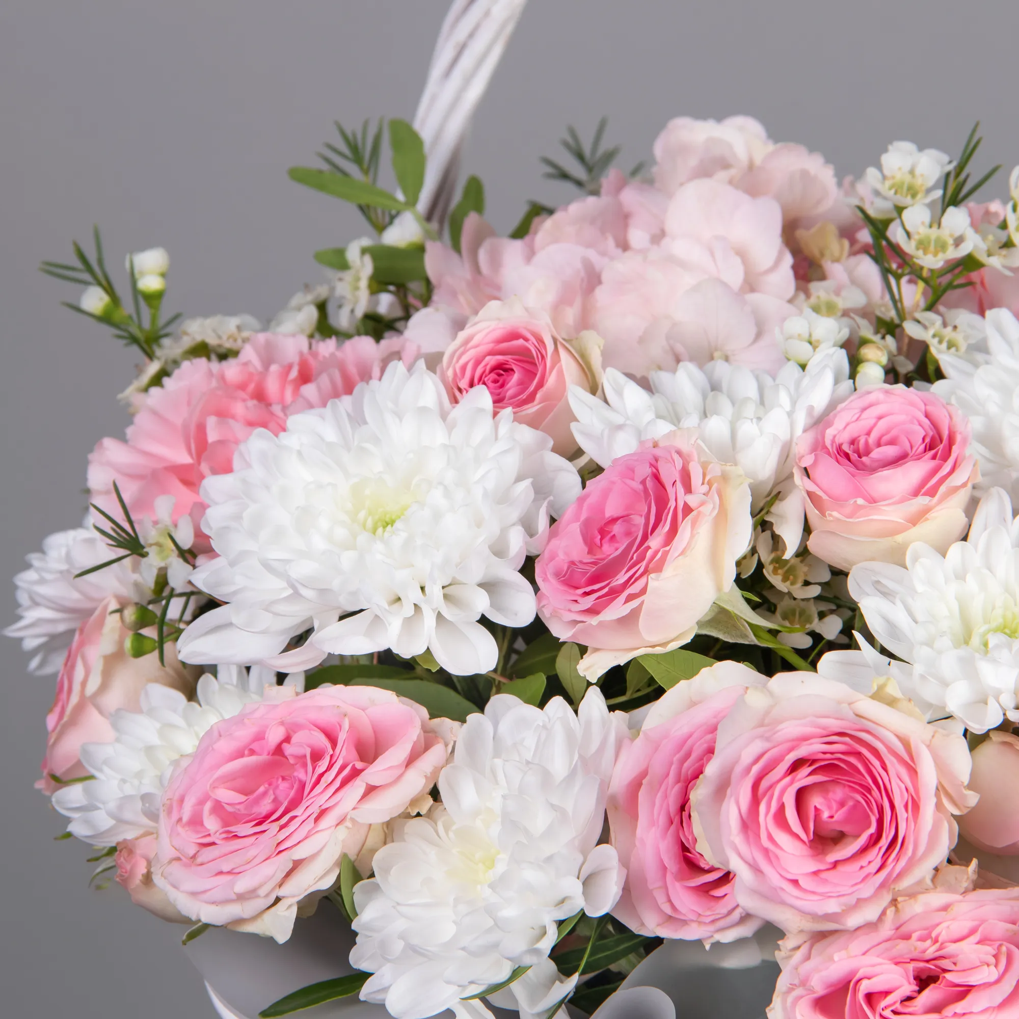 Цветы в составе данной композиции могу меняться, в зависимости от сезонности и задумки флориста-дизайнера.