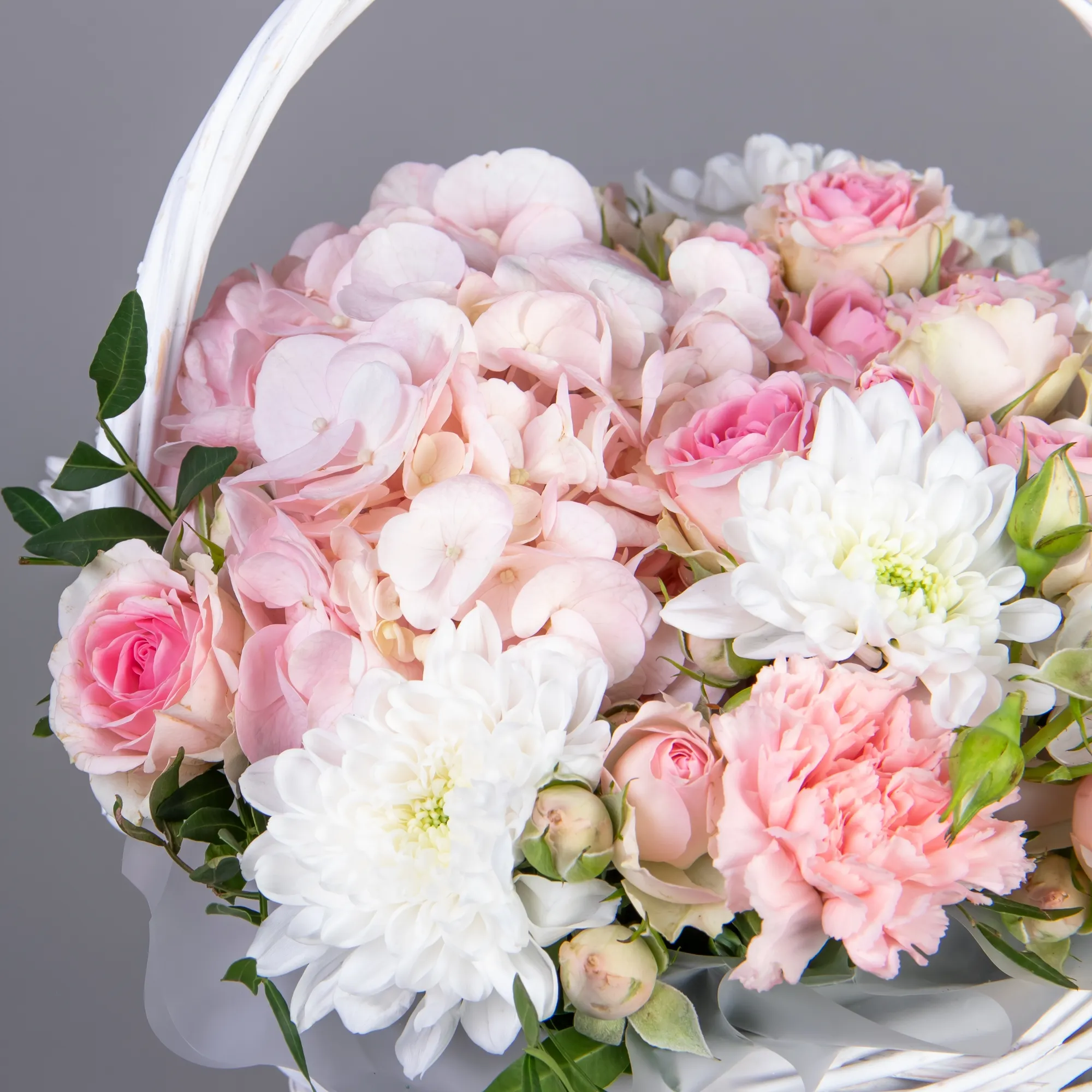 Гвоздика-3, Гортензия-1, Роза кустовая-2, Хризантема кустовая-1, Листья фисташки-2