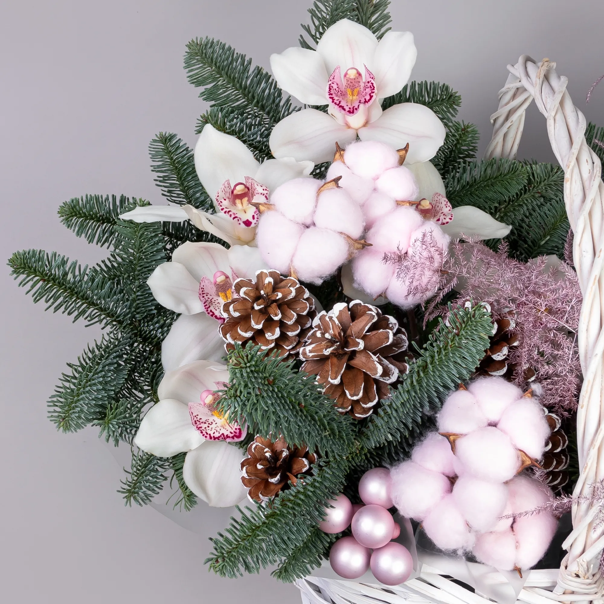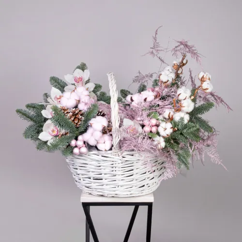 Цветы в составе данной композиции могу меняться, в зависимости от сезонности и задумки флориста-дизайнера.