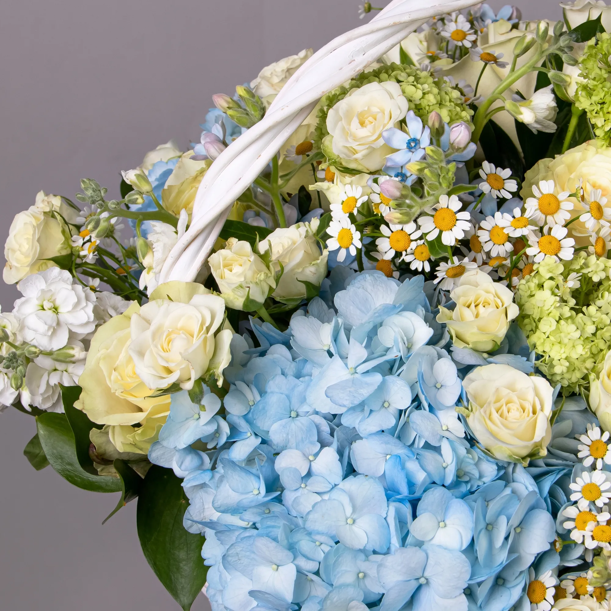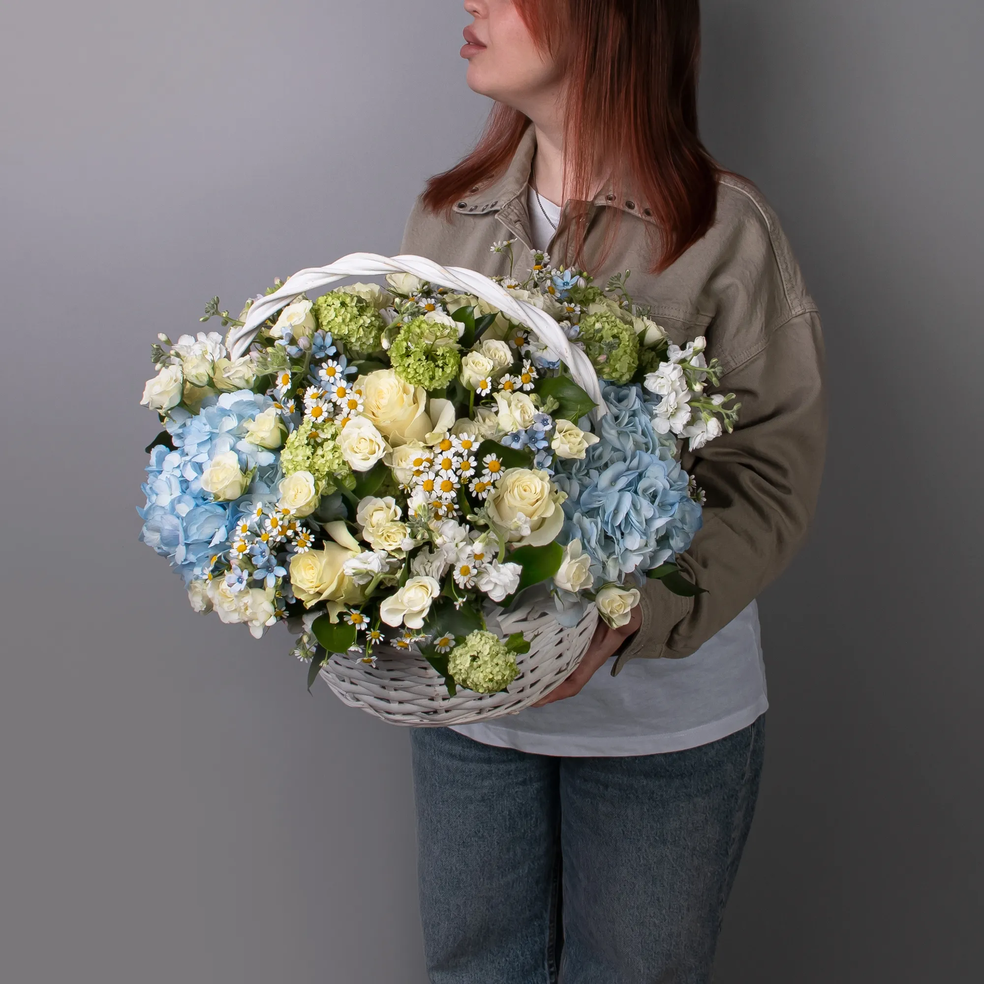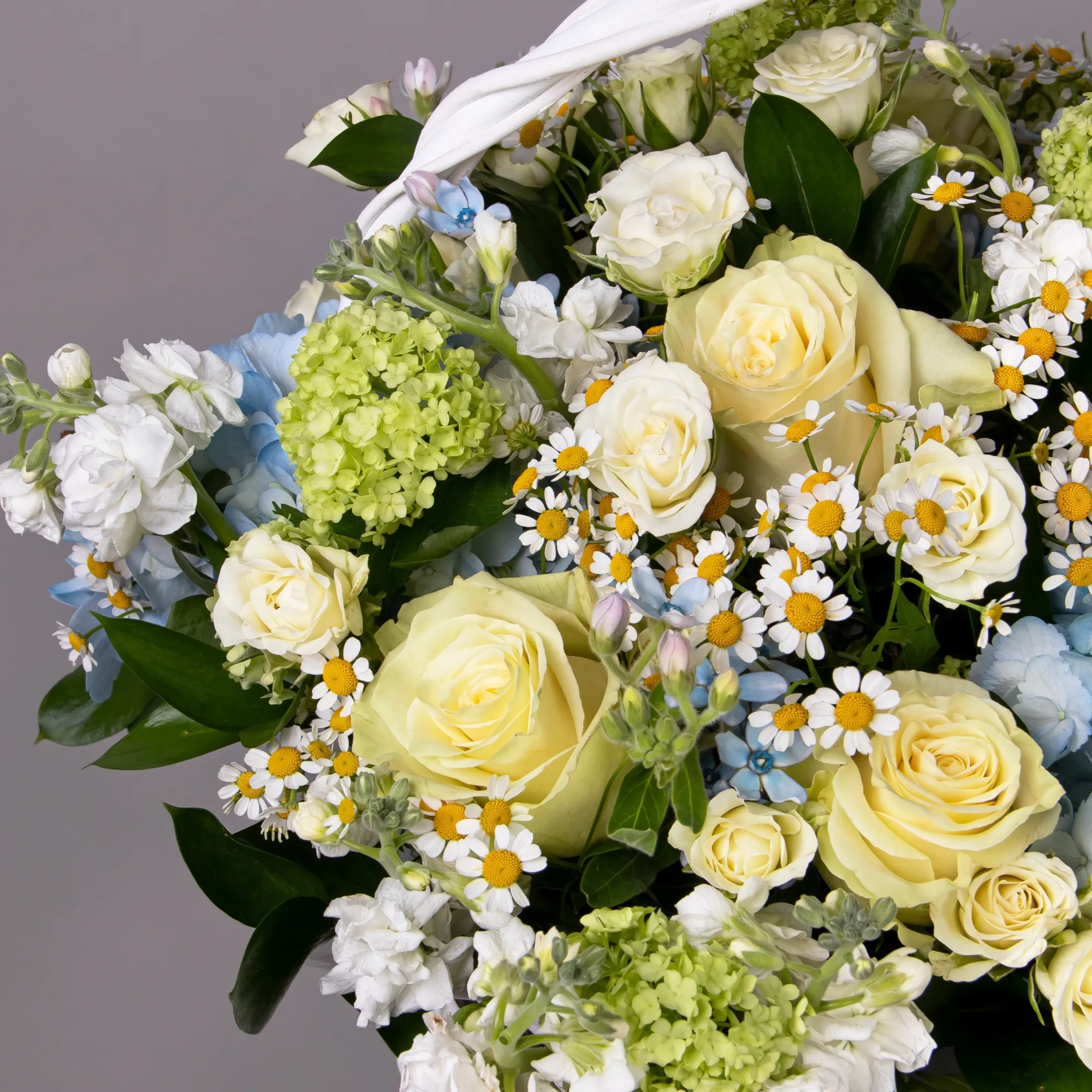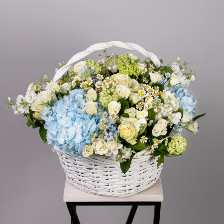 Цветы в составе данной композиции могу меняться, в зависимости от сезонности и задумки флориста-дизайнера.