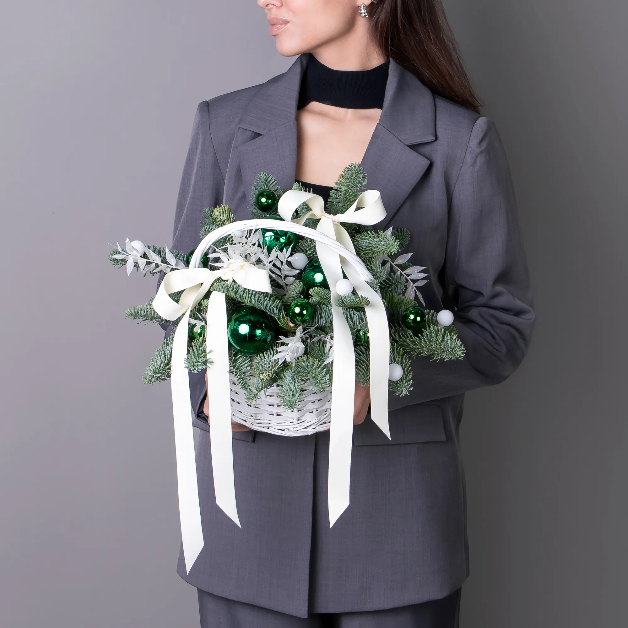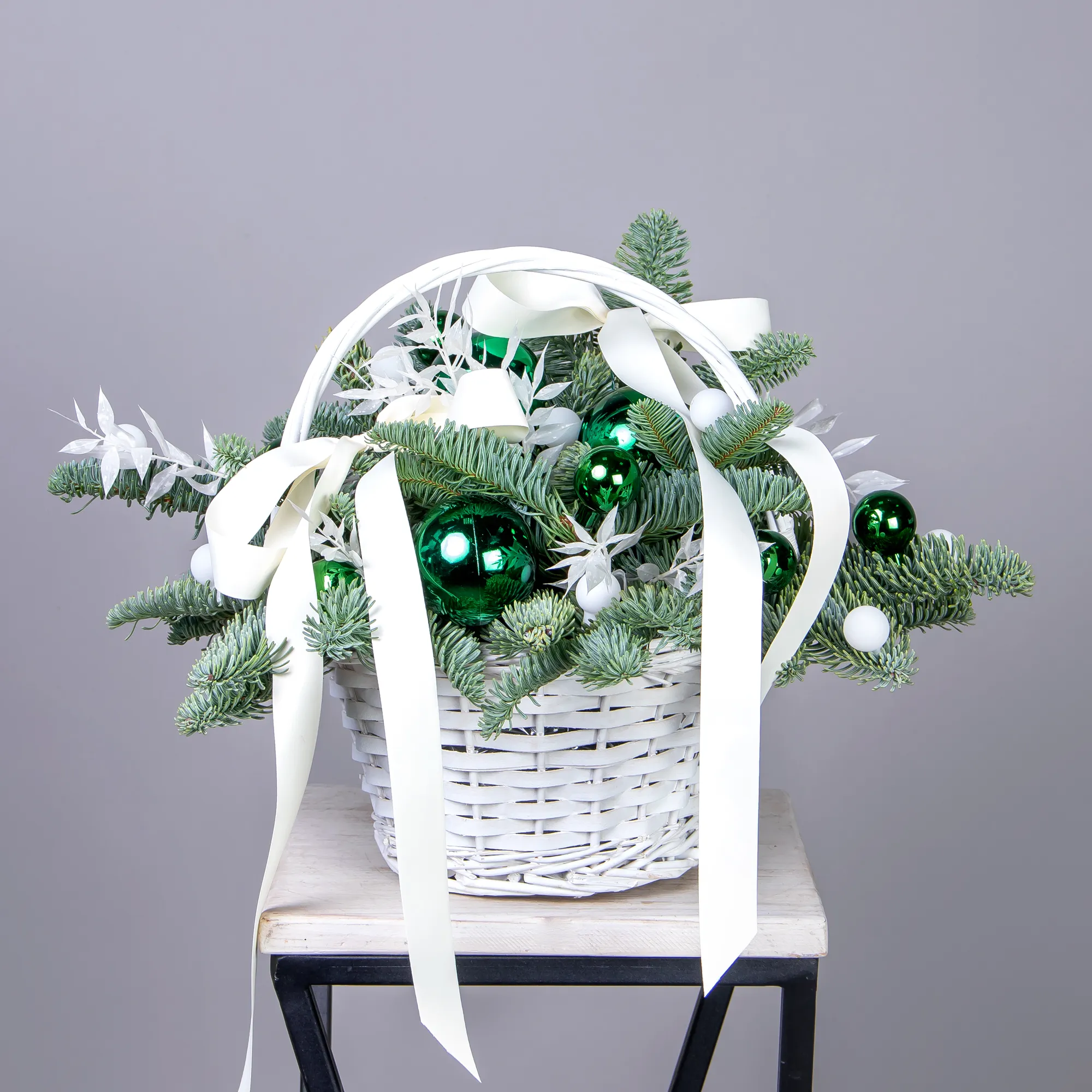 Композиция "Новогодняя с зелеными шарами и рускусом"